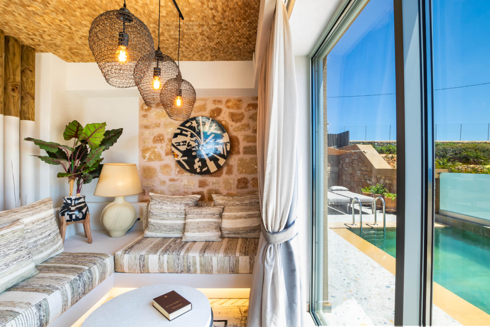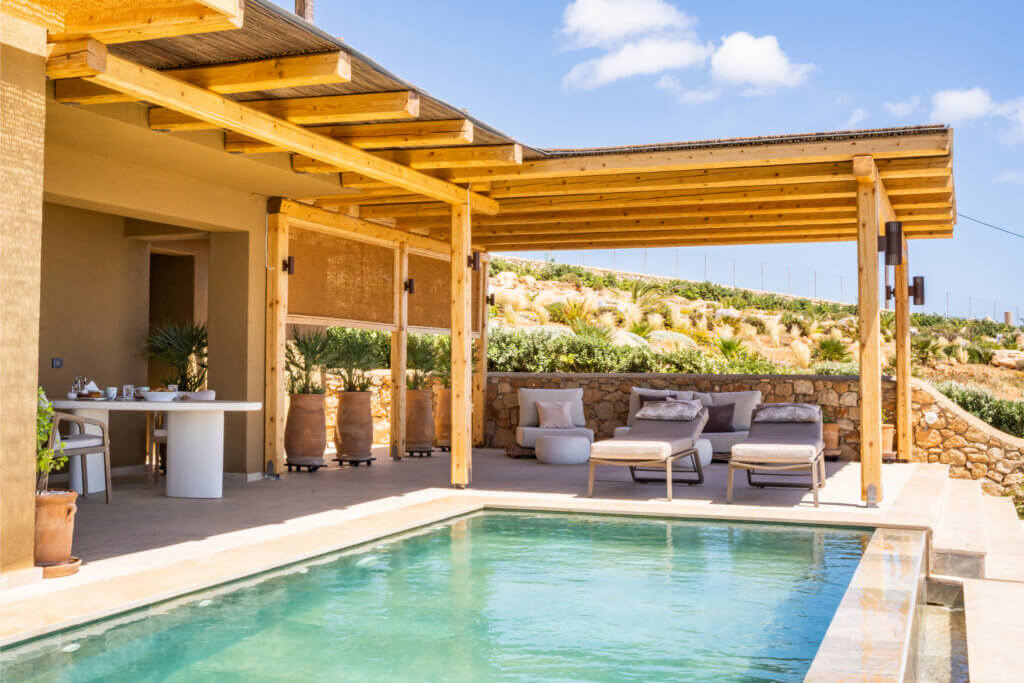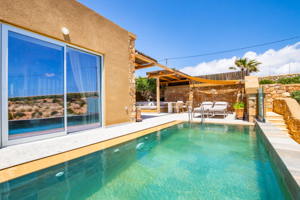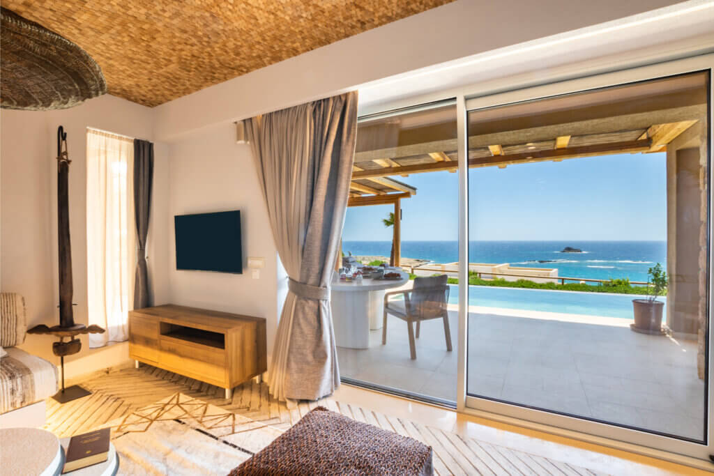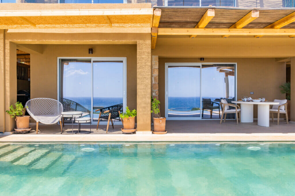 Blending contemporary design with natural beauty, Vala Luxury Villas create an atmosphere of refined simplicity and effortless luxury. Whether you’re lounging by your private pool, dining al fresco with breathtaking views, or exploring the nearby beaches of AfÃartis, every moment here feels peaceful and unforgettable.
