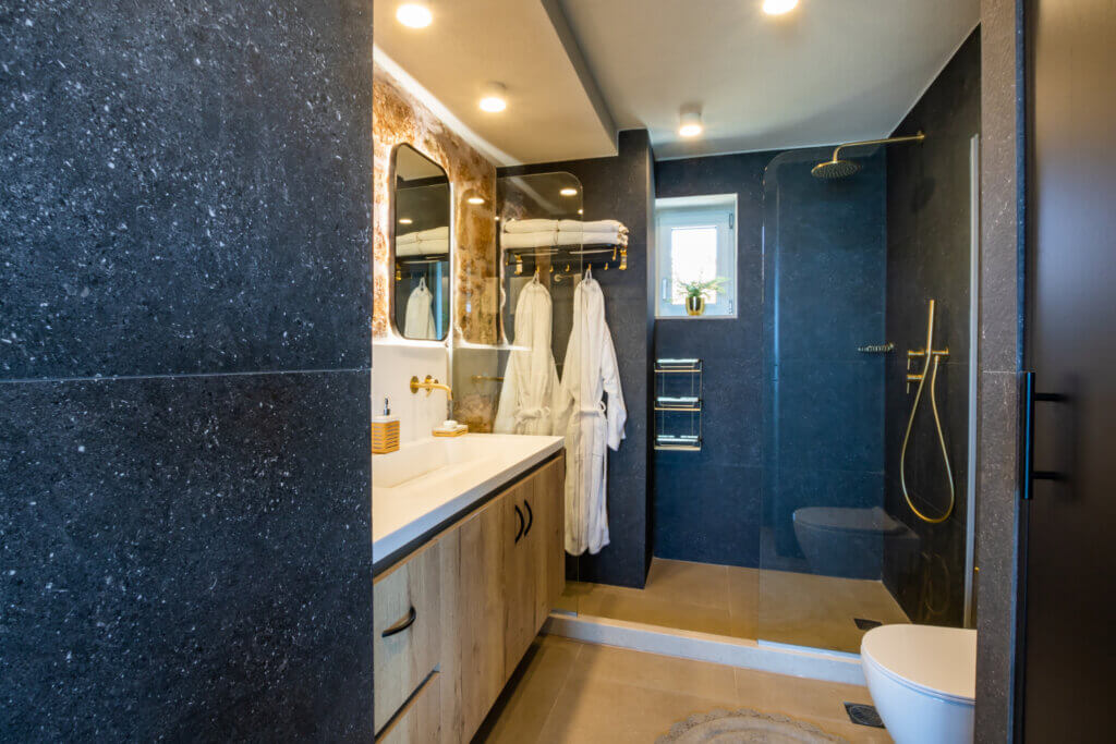 The complex consists of two independent one-bedroom villas, each designed with a modern aesthetic and high-end finishes. Vala Luxury Villa A, located on the ground floor, and Vala Luxury Villa B, on the upper level, both offer private outdoor pools, spacious terraces, and panoramic sea views. Each villa provides its own fully equipped kitchen, comfortable living area, and elegant bedroom with an en-suite bathroom, ensuring a private and relaxing stay for every guest.
