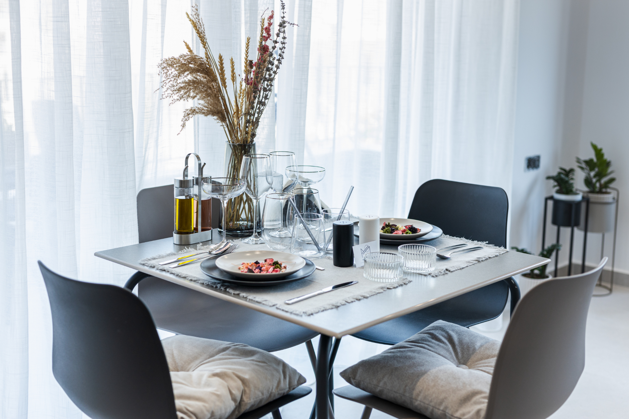 Poème 1 (45 sqm) and Poème 3 (45 sqm, suitable for up to four guests, maximum three adults) offer an intimate yet luxurious ambiance. On the other hand, Poème 2 (50 sqm) and Poème 4 (50 sqm) provide additional space and an even more open, airy feel. Each apartment maintains the same high standard of design and comfort while offering slightly different layouts to suit your needs.