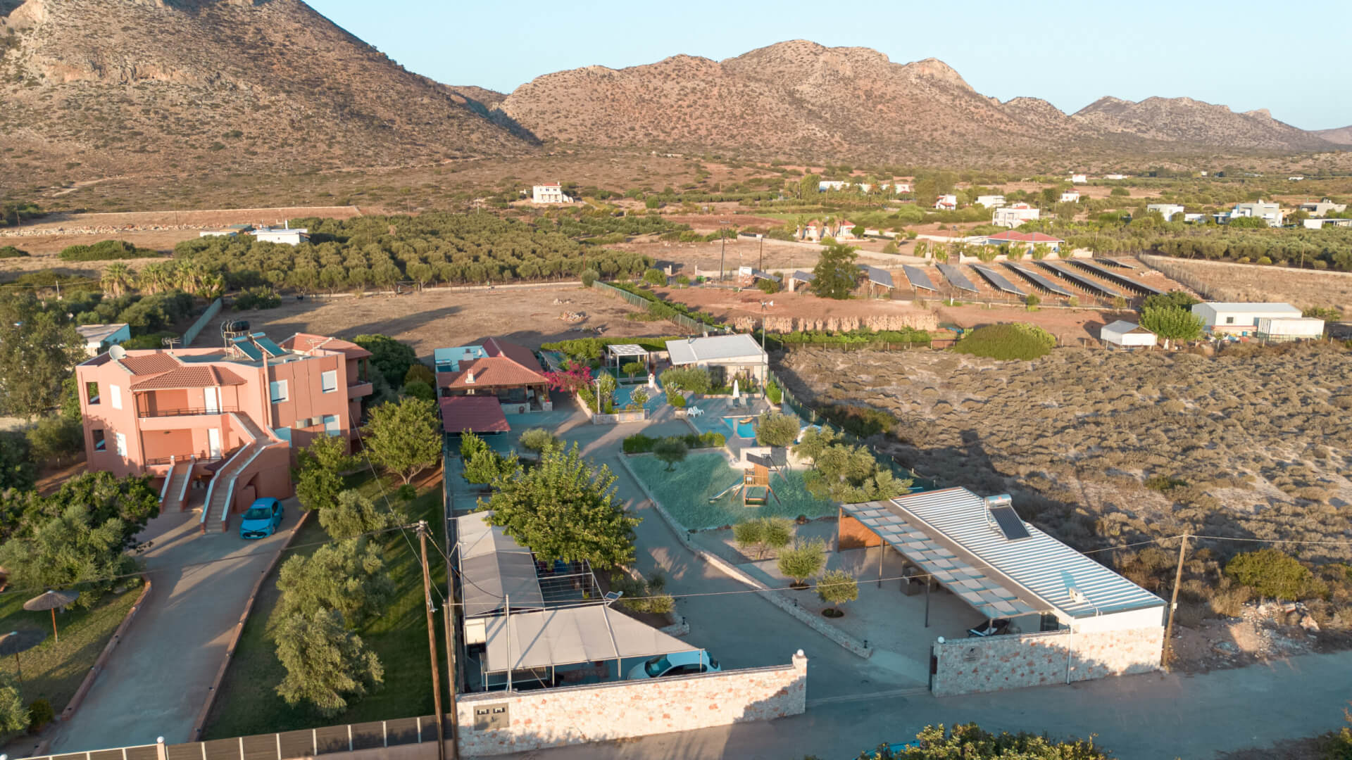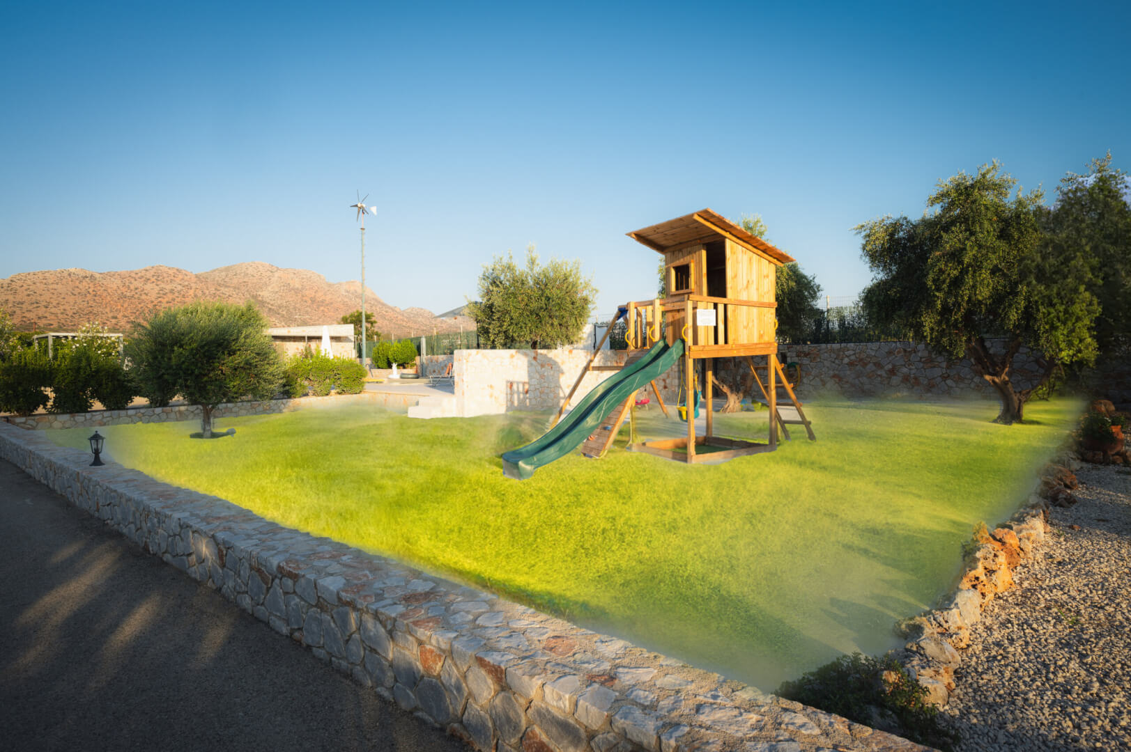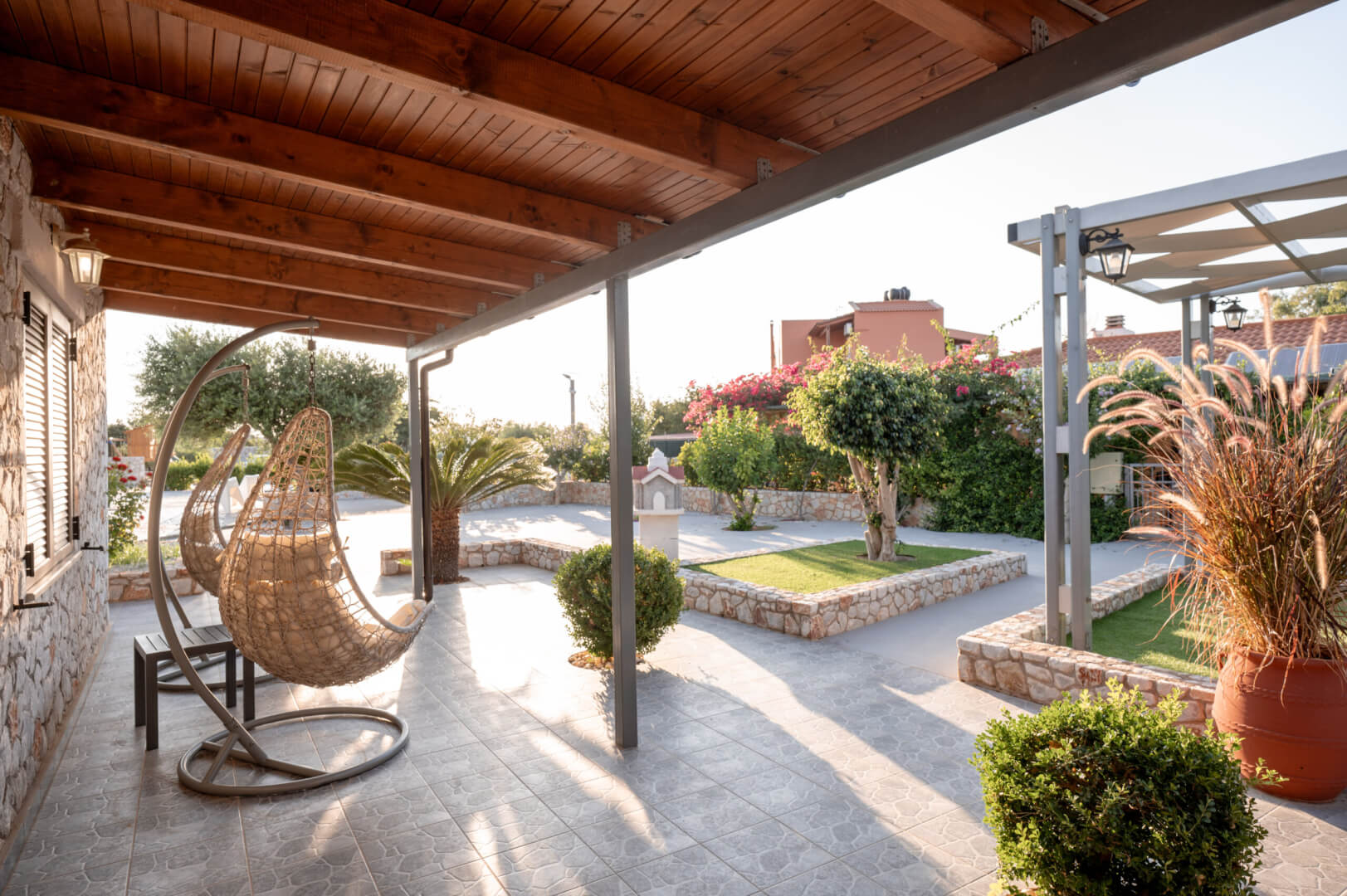 Alkistis Sweet Homes is a charming house complex located in the Chania area of Crete, offering a peaceful and authentic setting ideal for families, couples, and groups of friends. The complex consists of three individual houses, each with its own private terrace, while sharing beautifully designed outdoor spaces that create a welcoming and social atmosphere. Guests can enjoy a refreshing shared swimming pool with sunbeds, a lush garden, an outdoor playground area for children, and a barbecue area perfect for relaxed gatherings. The overall experience combines comfort, privacy, and a sense of togetherness, allowing guests to unwind while enjoying the natural beauty and laid-back lifestyle of Crete.