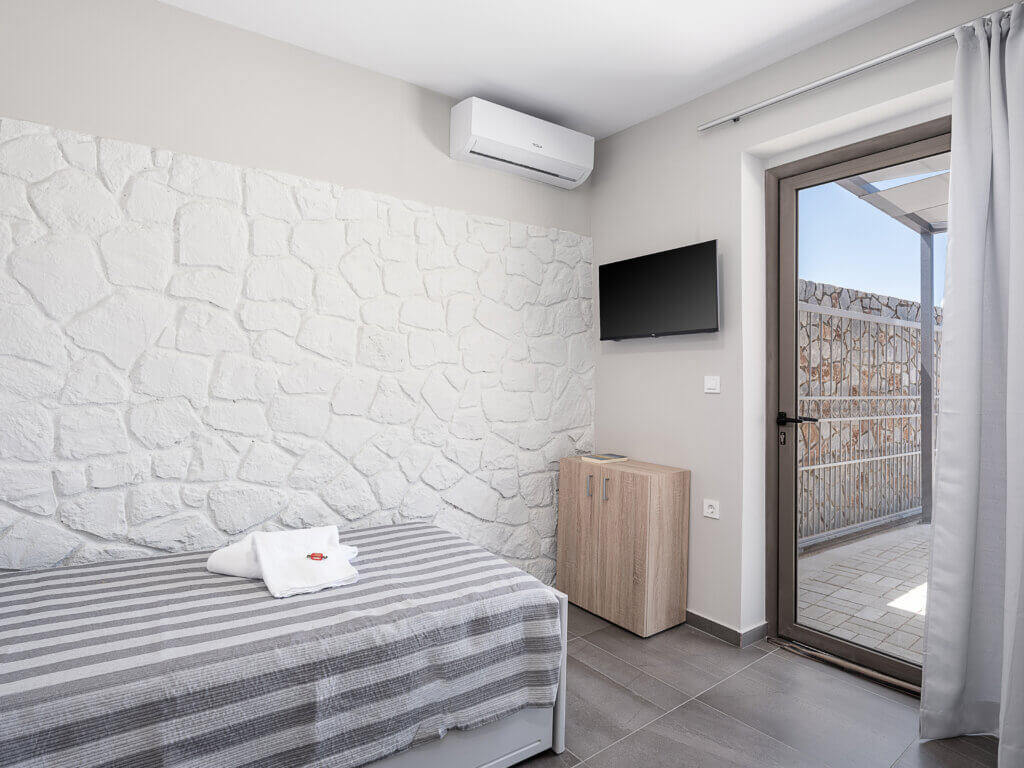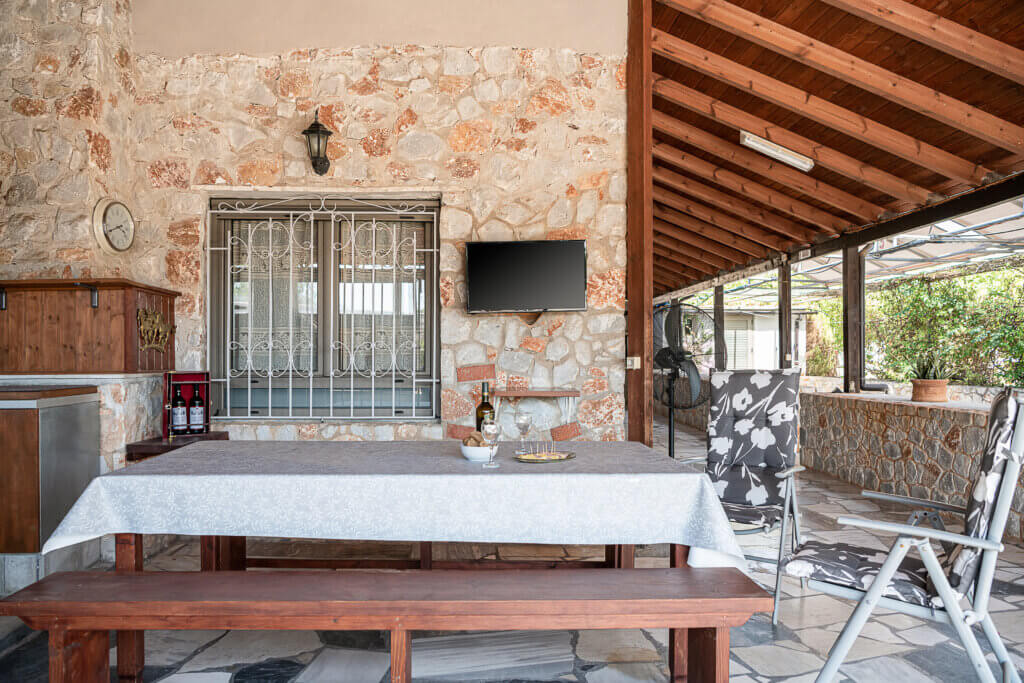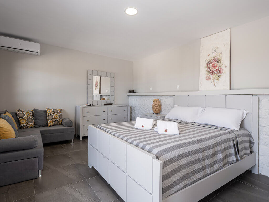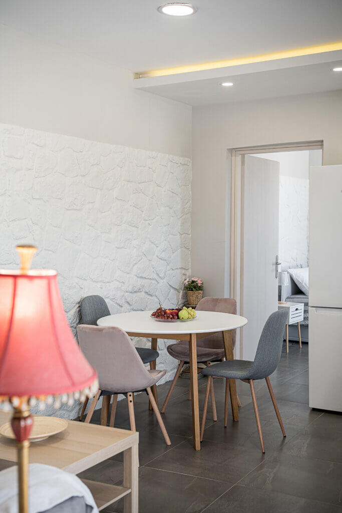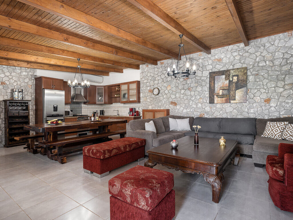 Within the complex, the Rustic Chalet offers a cozy 75 m² space built with stone and wood, featuring one bedroom with a queen size bed and a comfortable living area suitable for a small family or couple. The Modern Detached Home provides a stylish 70 m² layout with two bedrooms and a contemporary design, ideal for families or groups seeking a modern stay. The Cottage House is a traditional 78 m² residence with two bedrooms and a double sofa bed in the living room, enhanced by a private outdoor kitchen and barbecue area, making it perfect for larger families or groups who appreciate both comfort and outdoor living.