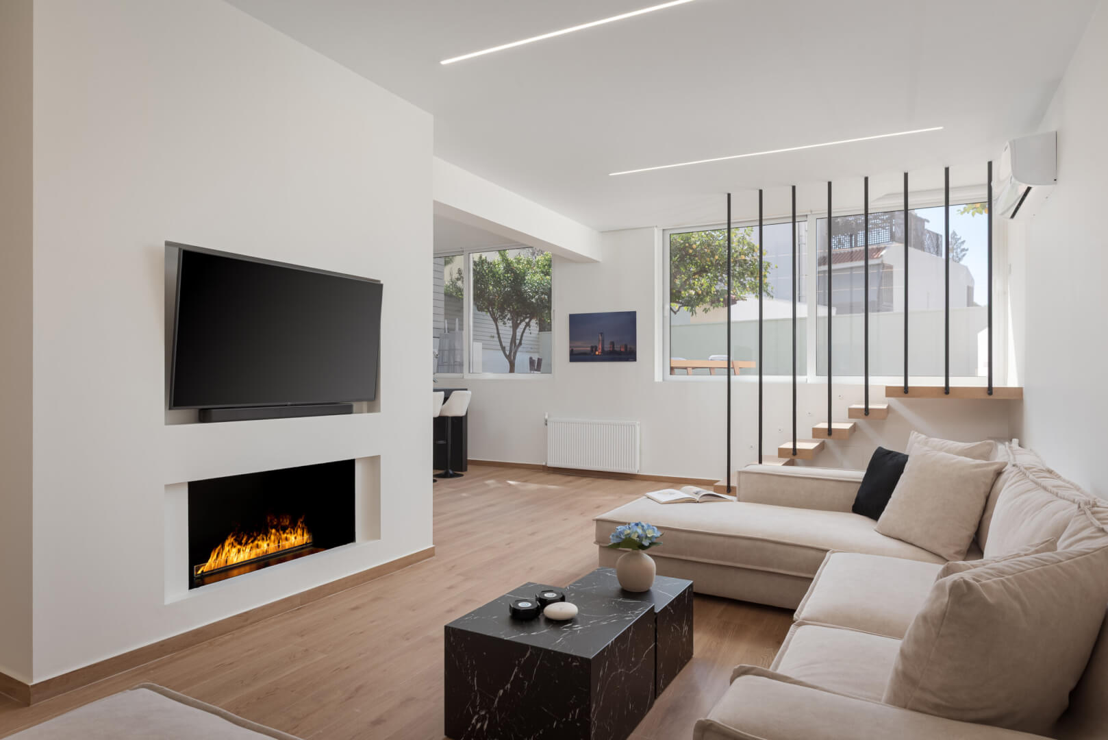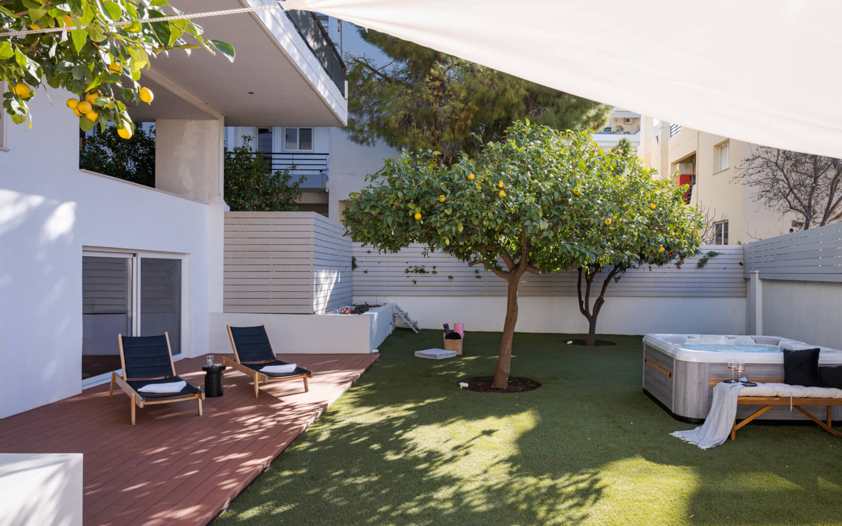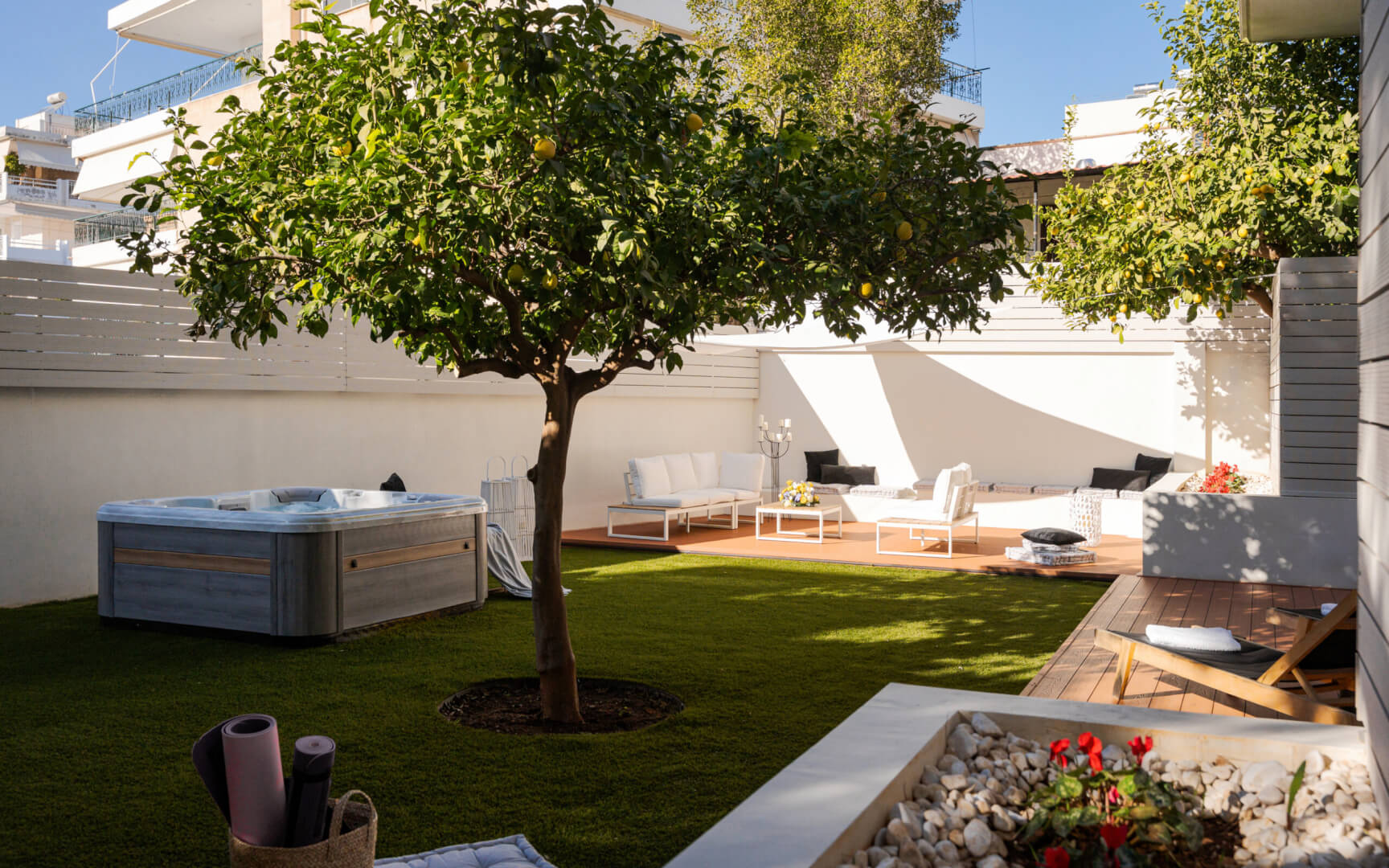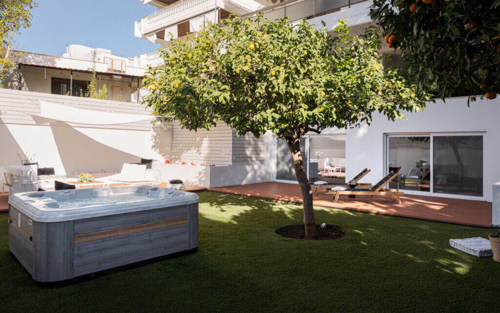 The private backyard is a true highlight, offering a serene escape with sunbeds for ultimate relaxation and a stylish outdoor dining/sitting area to enjoy meals or unwind in comfort. With its blend of modern amenities and tranquil outdoor space, Athena’s Lemon Grove Glyfada is the perfect retreat for those seeking a luxurious yet practical home. The property offers both indoor comfort and outdoor charm, making it an ideal place to call home.