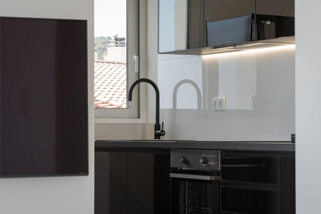 Perched on the 5th floor, this chic penthouse offers a cozy retreat spanning 47 square meters.