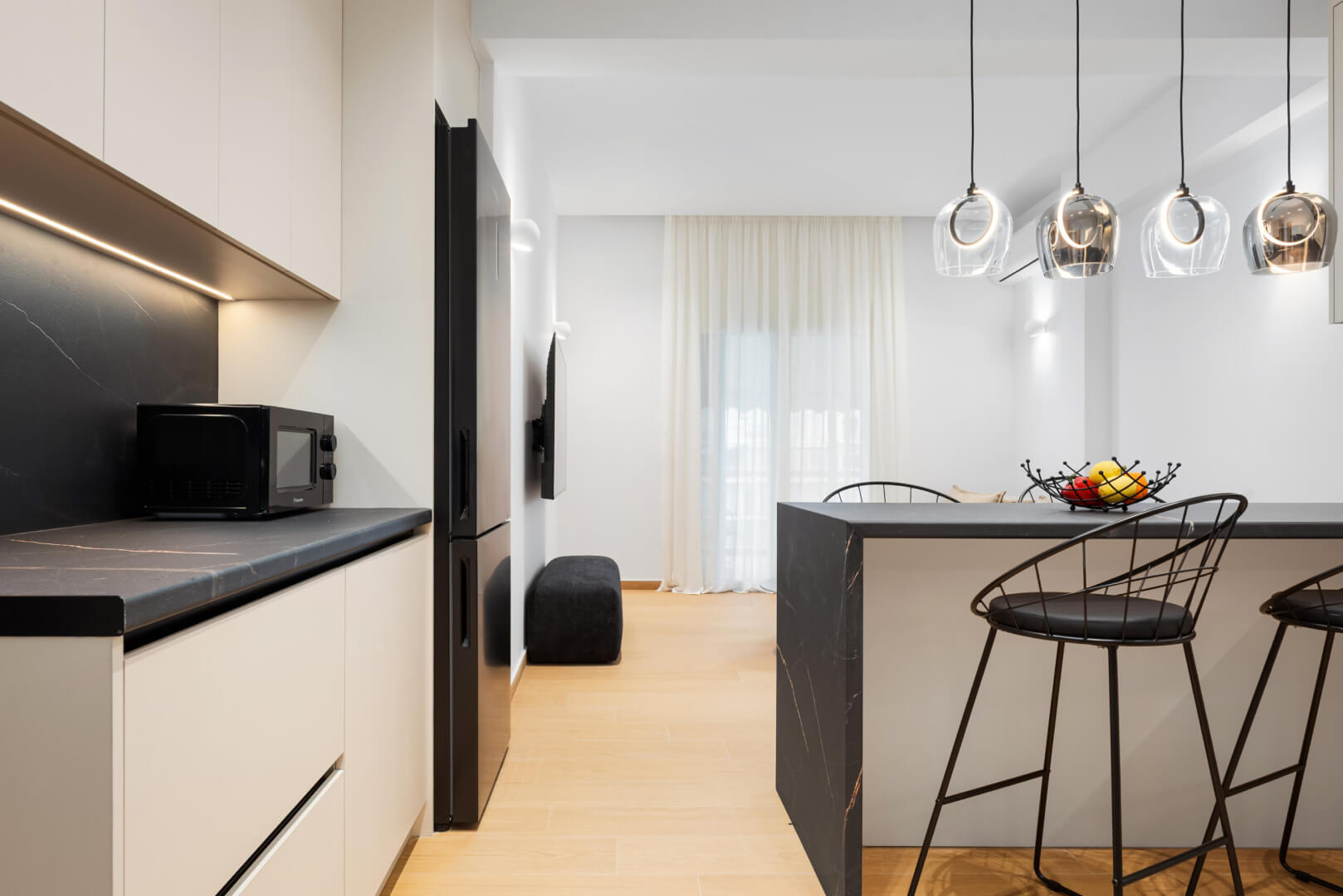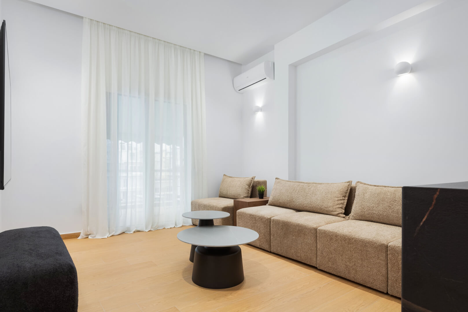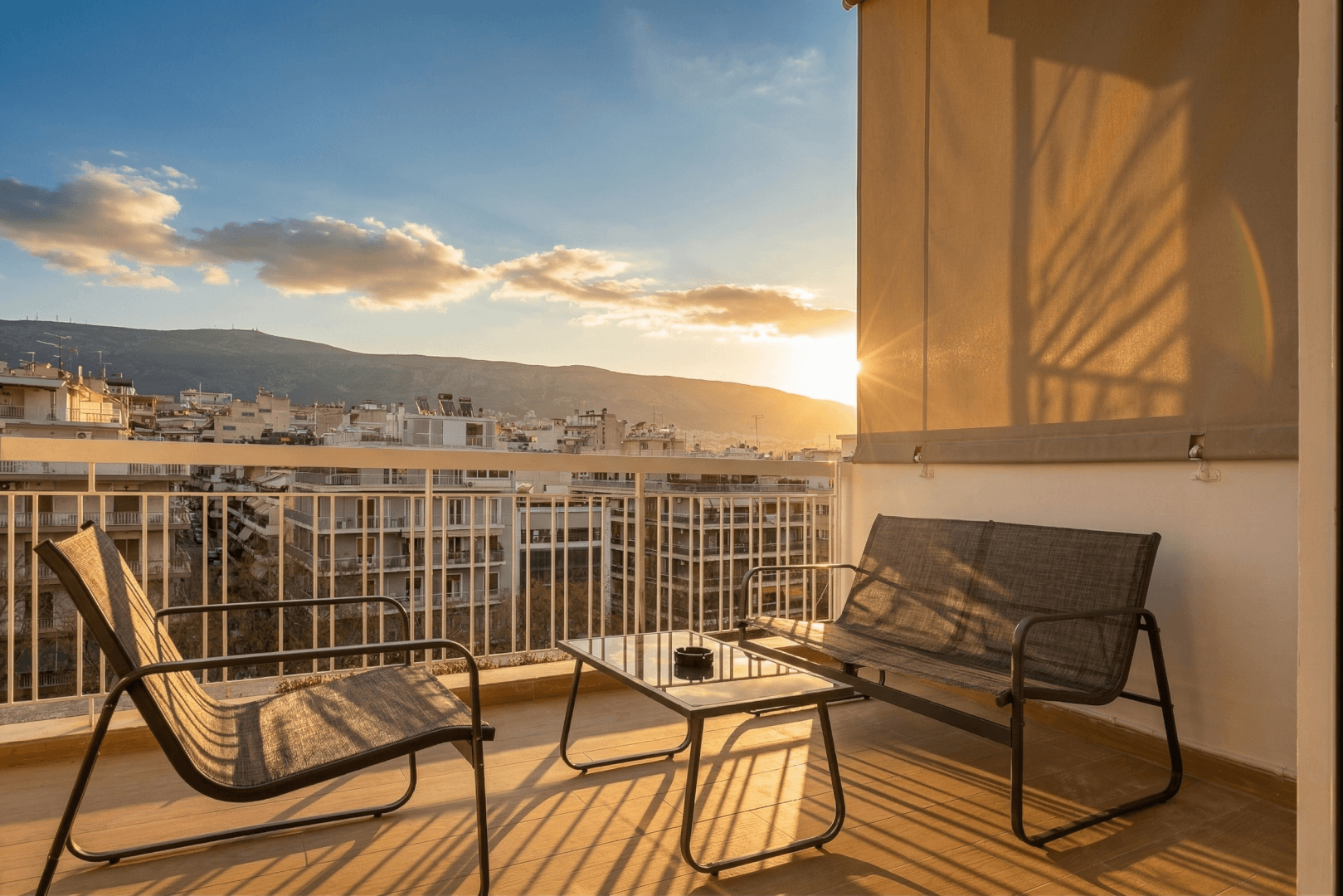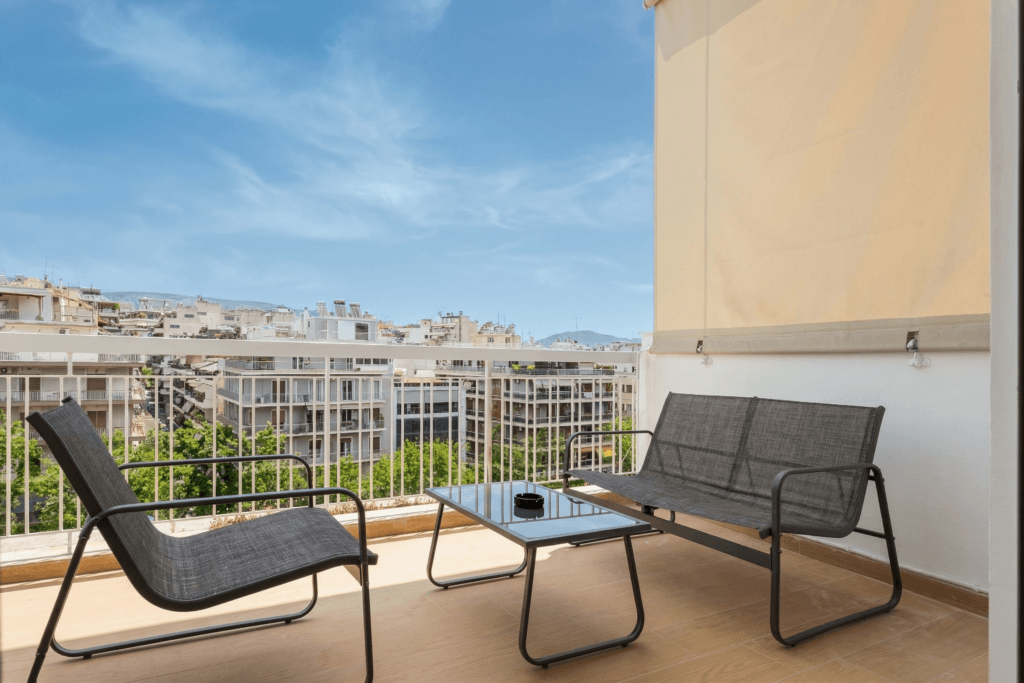 The apartment offers three contemporary bathrooms, including two en-suite, which provide privacy and convenience for every guest. Moreover, the bright and stylish living room gives you space to relax or entertain, while the fully equipped kitchen allows you to prepare meals with ease. You can also step out onto the private balcony to enjoy a morning coffee or evening drink while soaking in the vibrant Athenian cityscape.