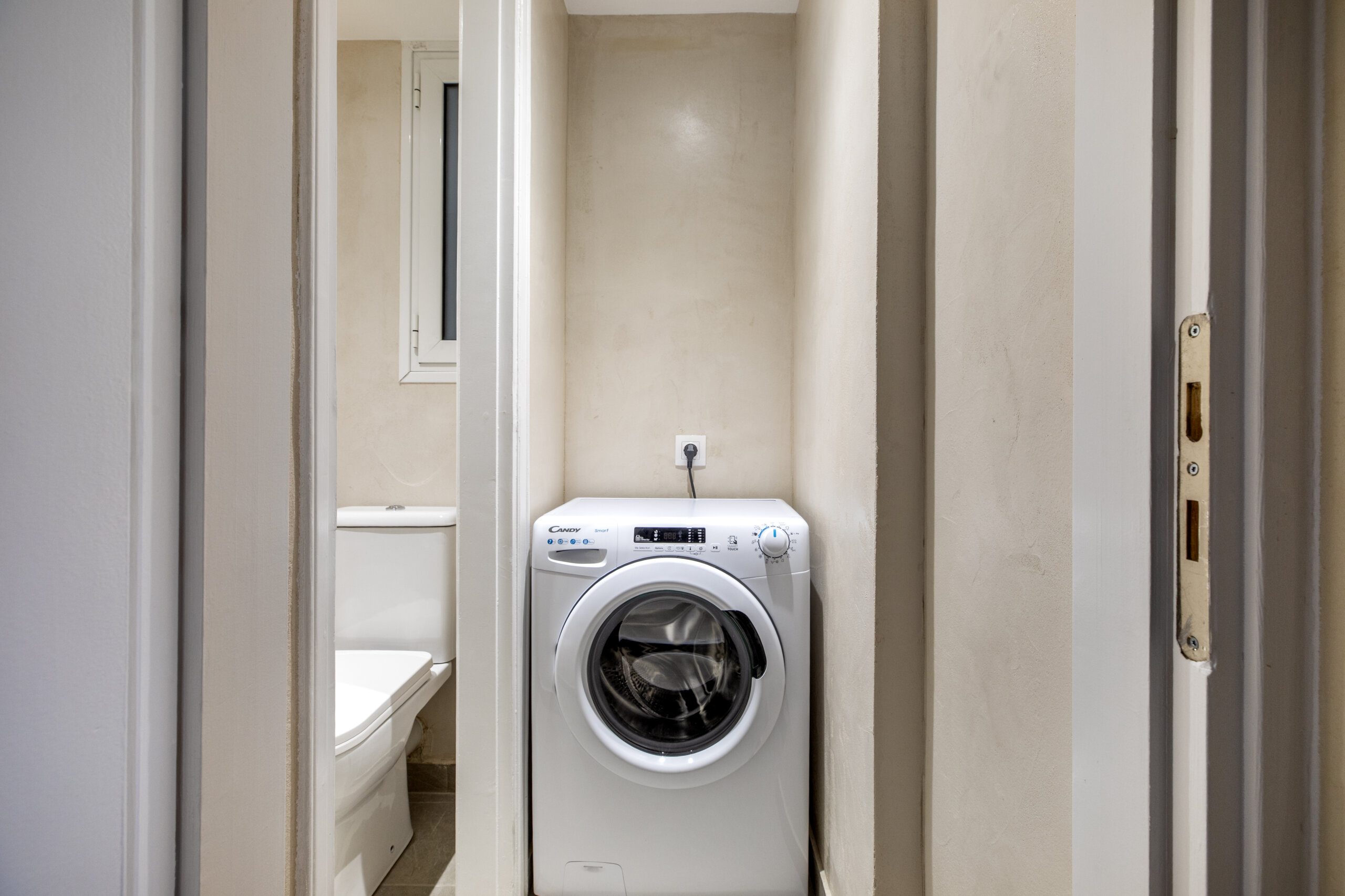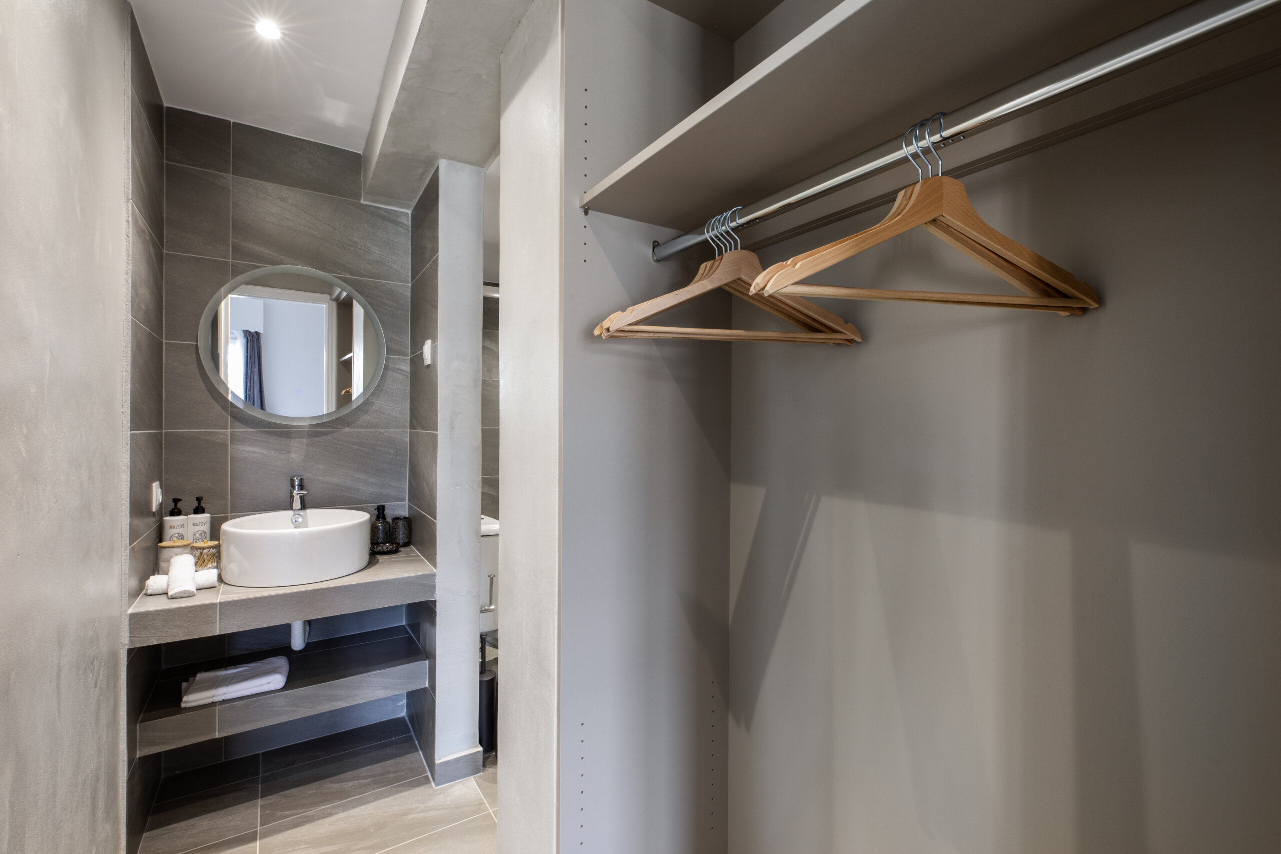 Each room has its own air conditioning, a smart TV, and blackout curtains for restful sleep. The apartment also includes a secure safety door, a personal safe, and a washing machine for your convenience.