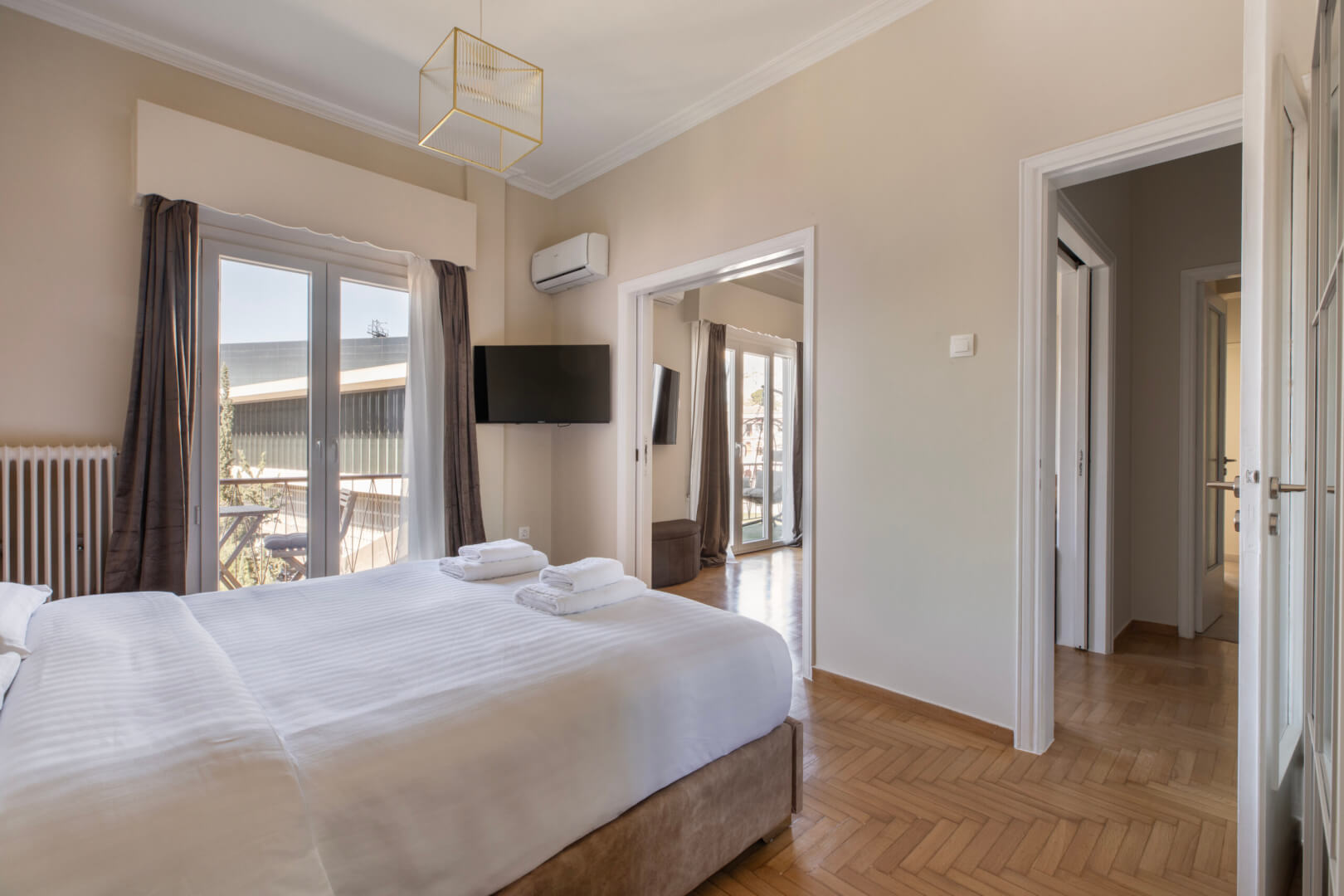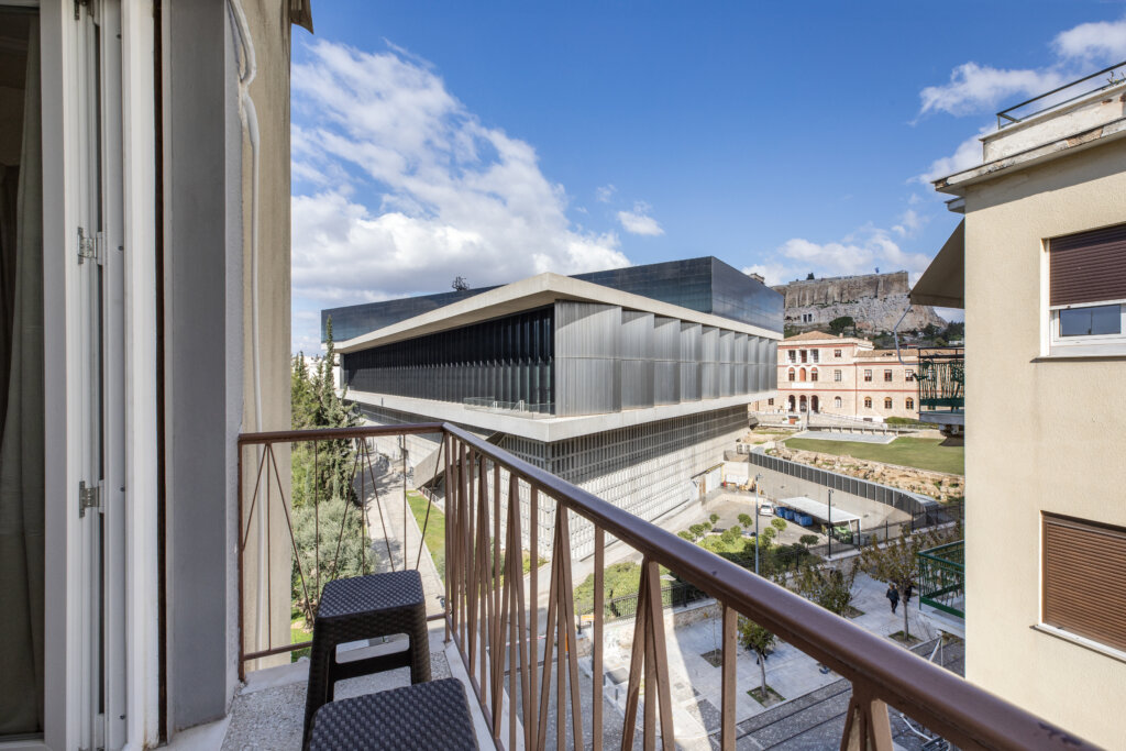 Step onto the balcony and enjoy a unique location. The apartment sits directly across from the Acropolis Museum. You can admire clear views of the museum from the front. From the side, you can also see the famous Acropolis of Athens.