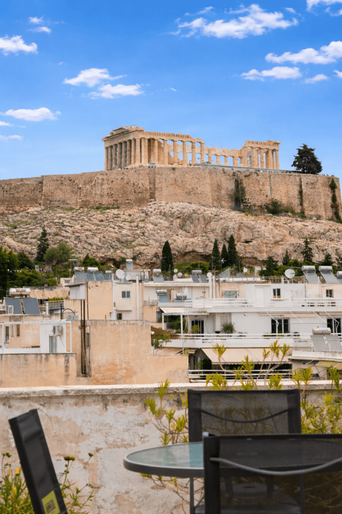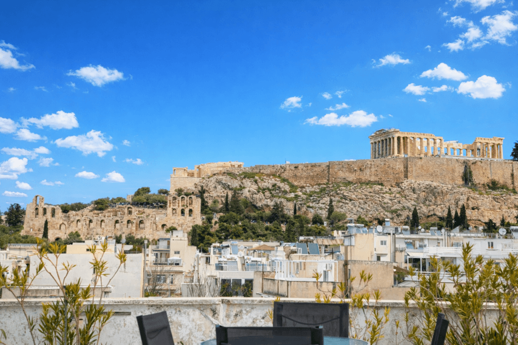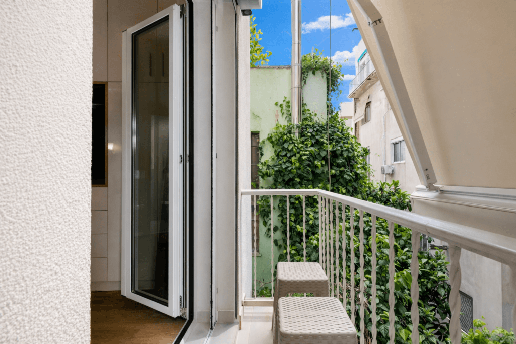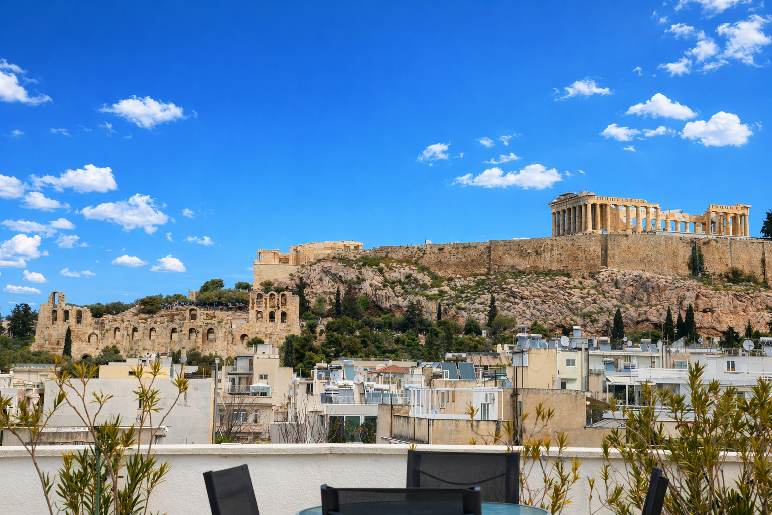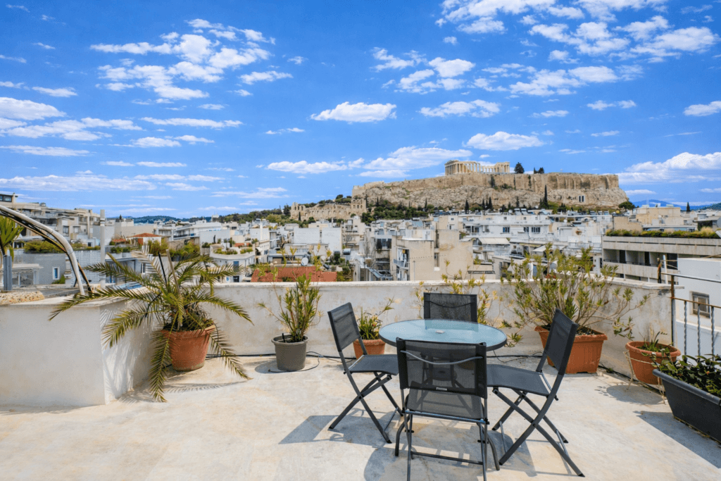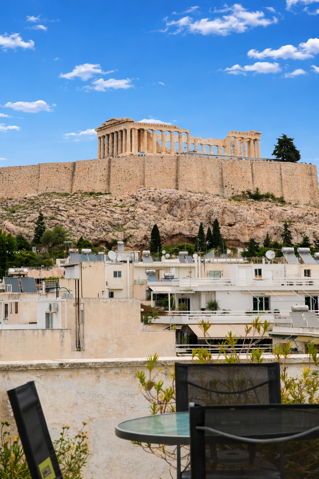 Step outside onto one of the two private balconies and enjoy the charm of this historic neighborhood. Guests also have access to a shared rooftop area with breathtaking panoramic views of the Acropolis—an unforgettable highlight of your stay.