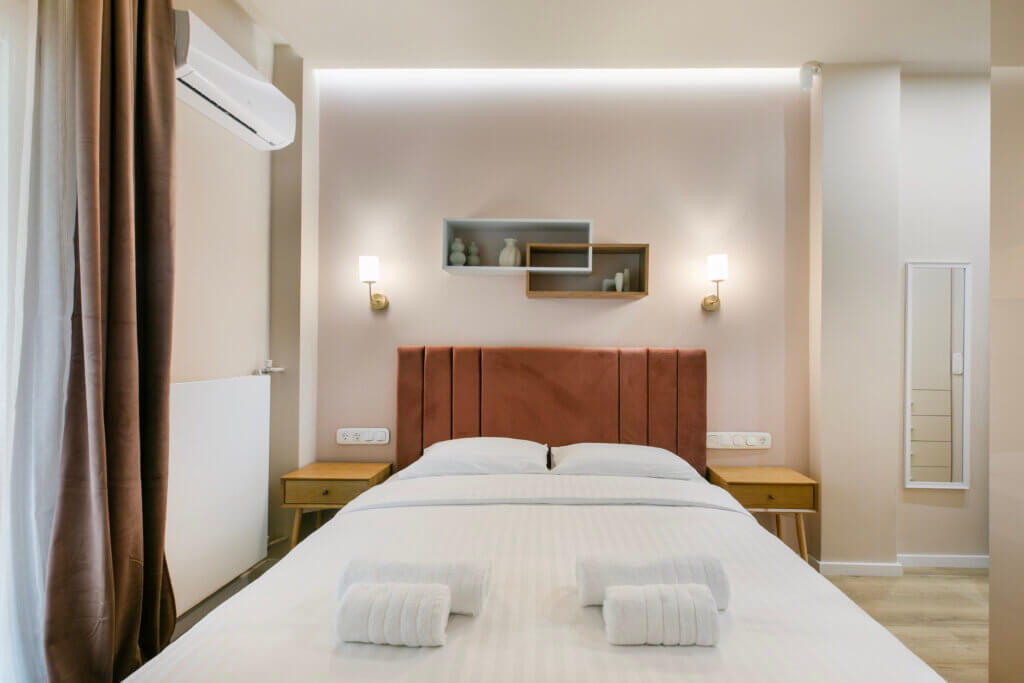 Each room includes independent air conditioning, smart TVs, and blackout curtains to ensure maximum comfort and restful sleep.