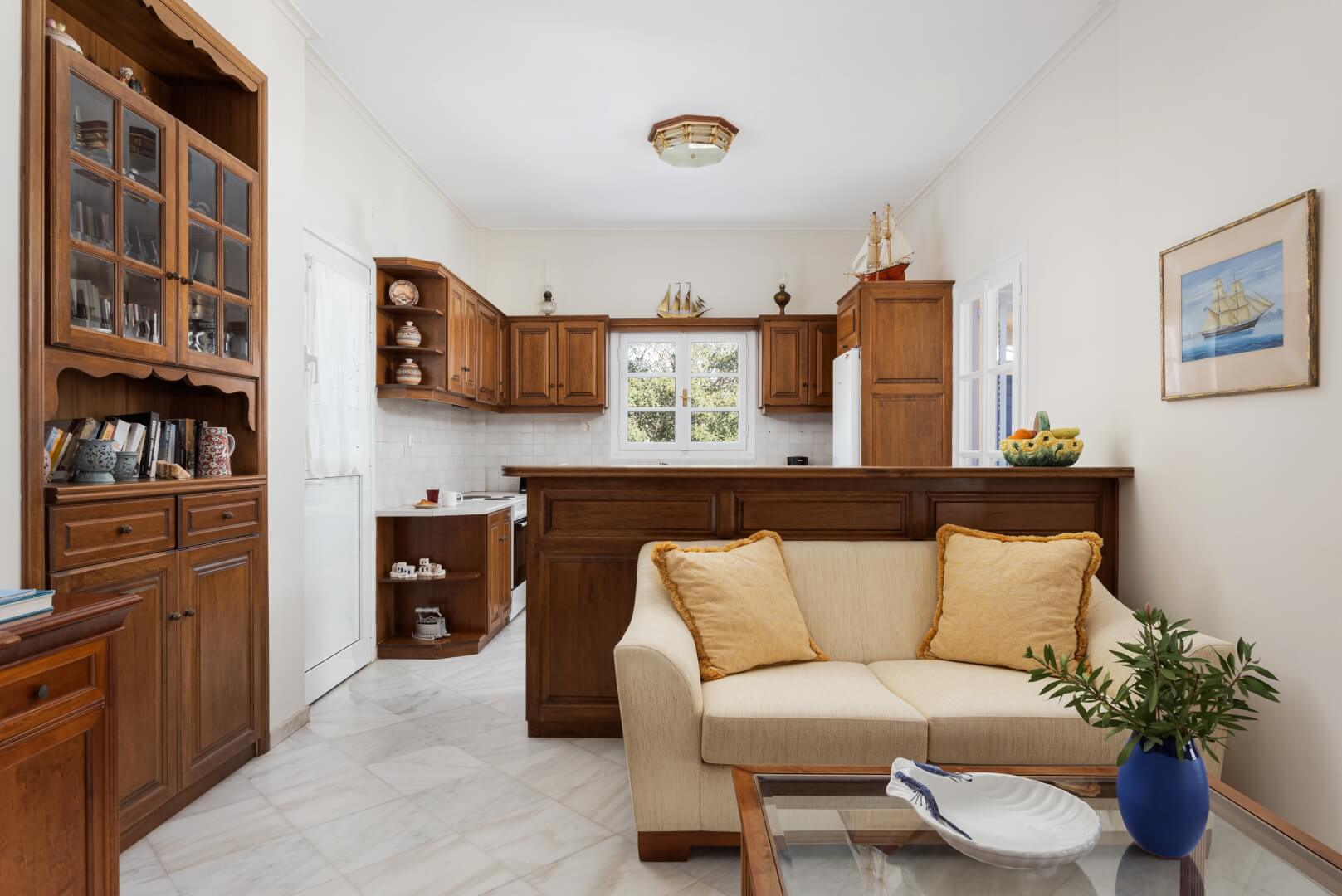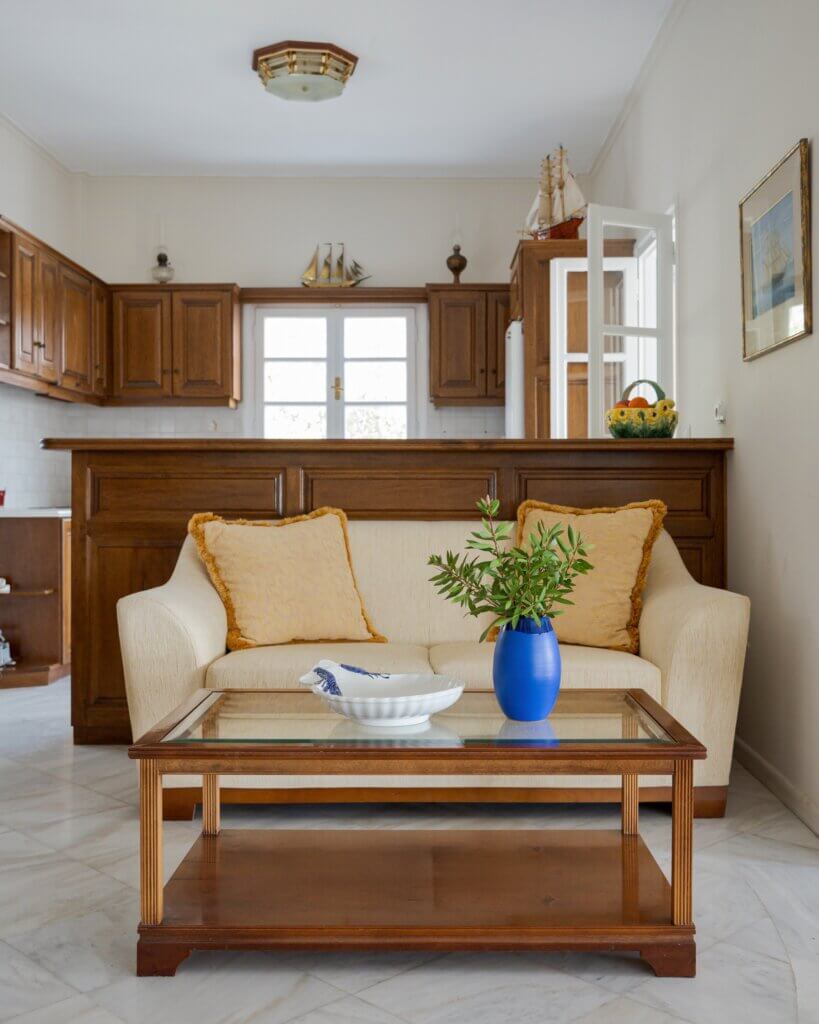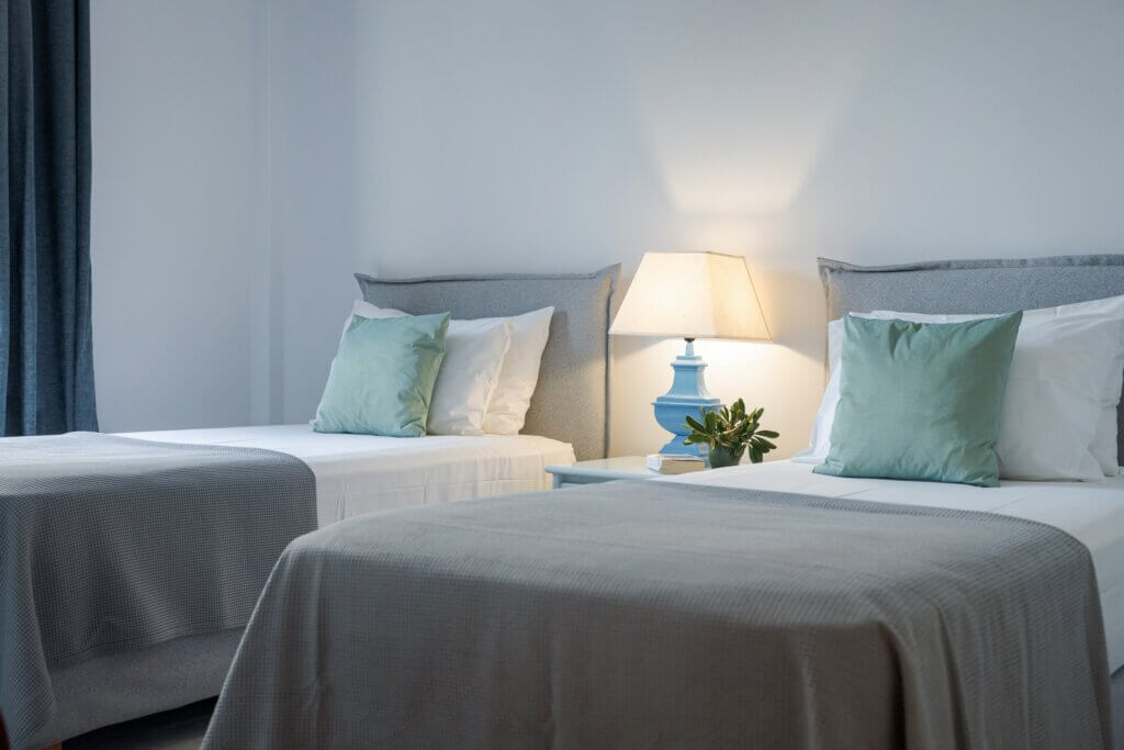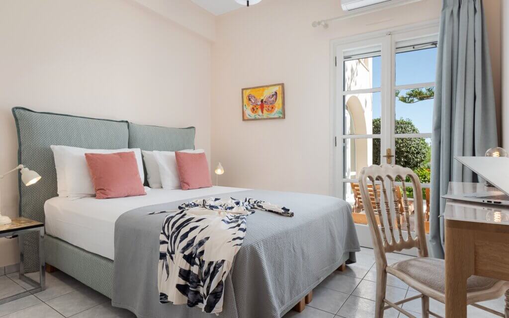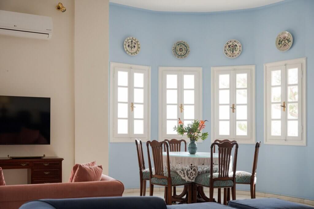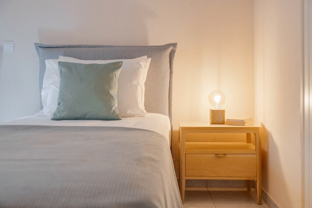 Seashore Villa I is located on the first floor and extends across 173 square meters of bright and airy interiors. It features a spacious living room, a fully equipped kitchen, and three comfortable bedrooms with two queen-size beds and two single beds, as well as an additional single sofa bed. Two bathrooms serve the villa, including one ensuite. A private balcony with sea and garden views, along with an outdoor patio, creates the perfect setting for relaxing mornings and sunset evenings.