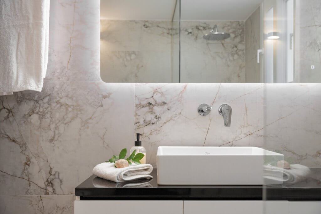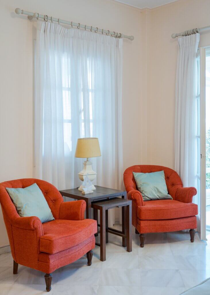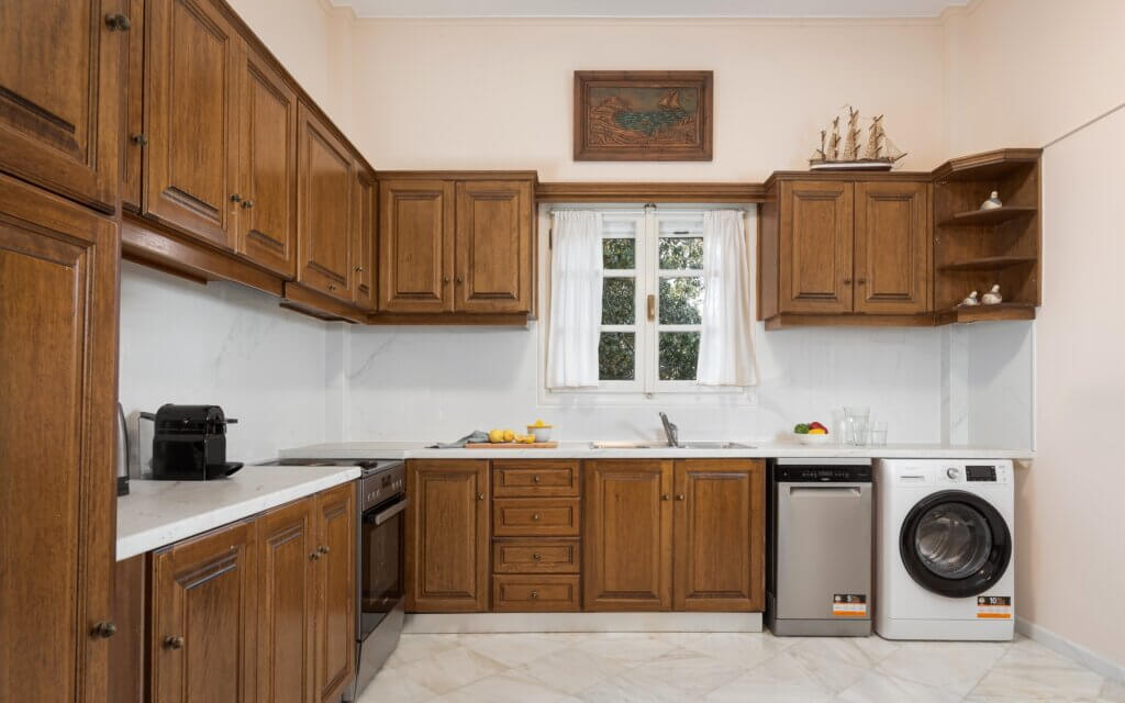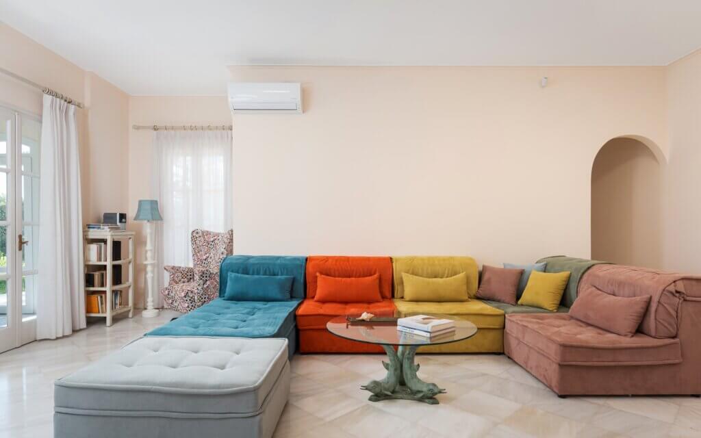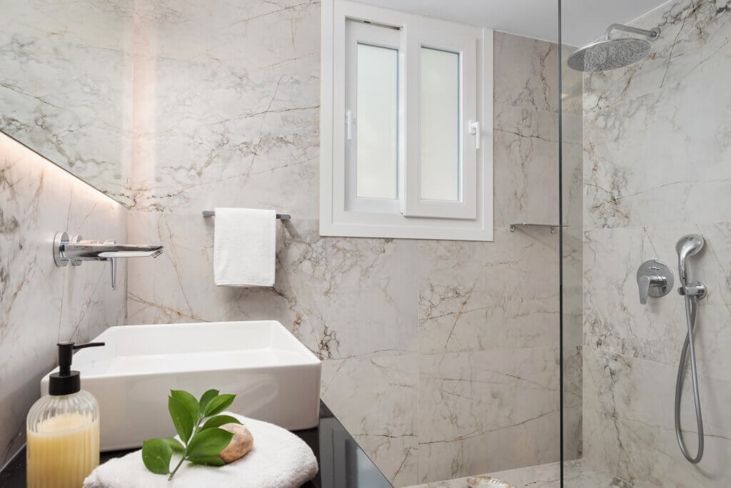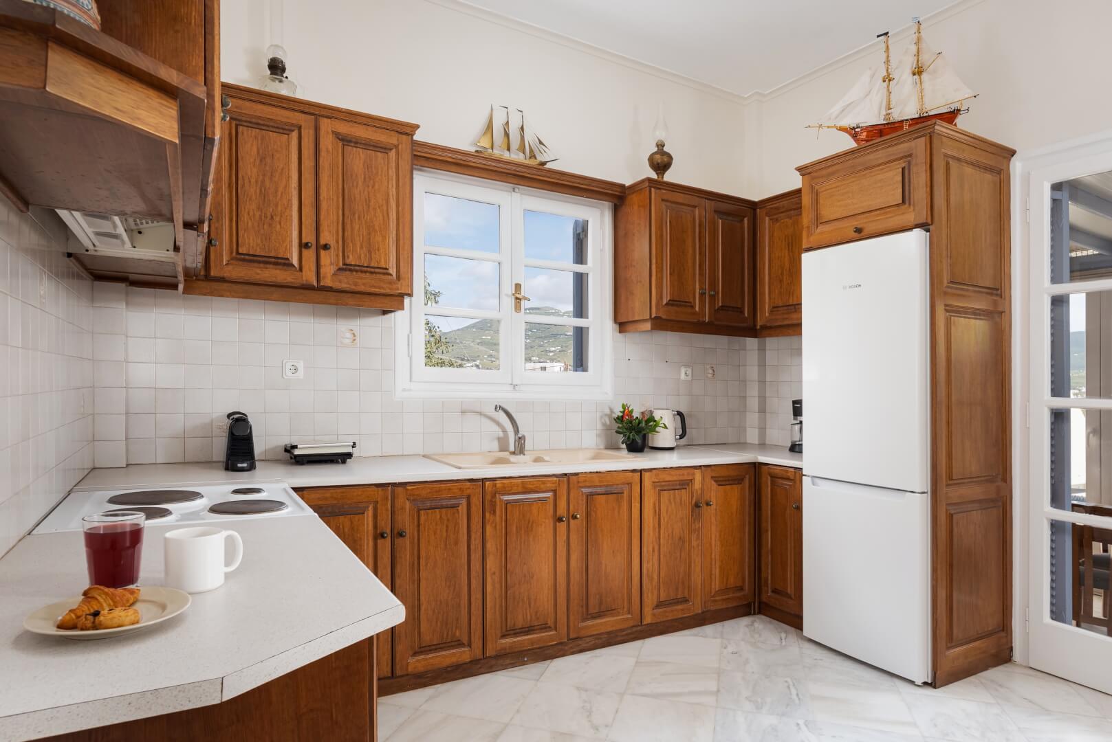 Seashore Villa I is located on the first floor and extends across 173 square meters of bright and airy interiors. It features a spacious living room, a fully equipped kitchen, and three comfortable bedrooms with two queen-size beds and two single beds, as well as an additional single sofa bed. Two bathrooms serve the villa, including one ensuite. A private balcony with sea and garden views, along with an outdoor patio, creates the perfect setting for relaxing mornings and sunset evenings.
