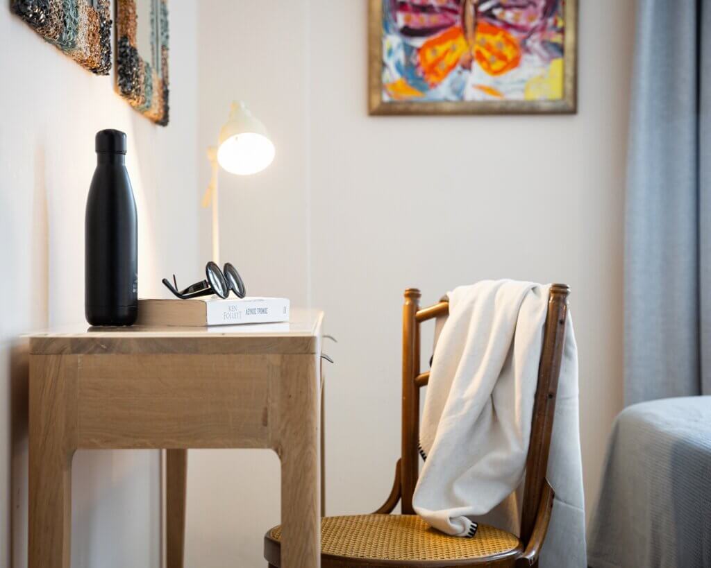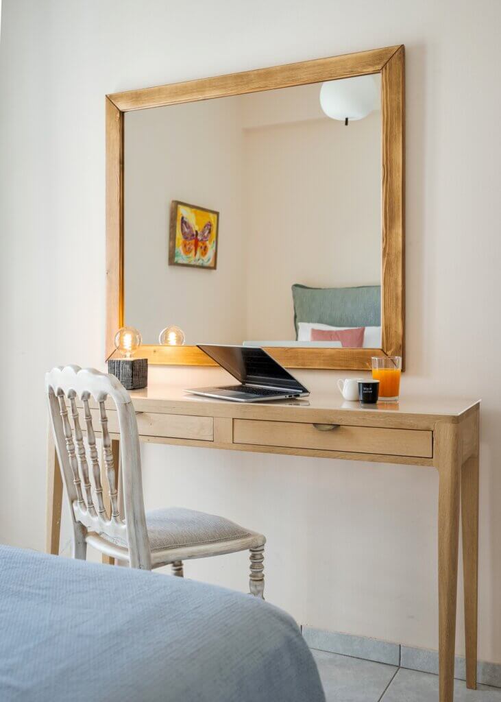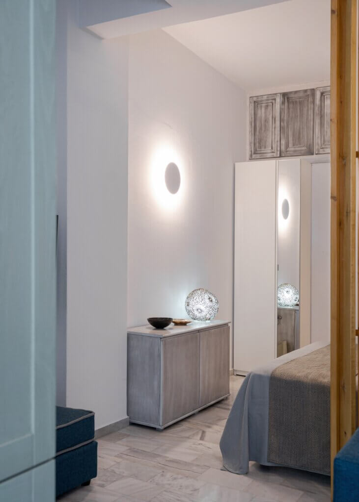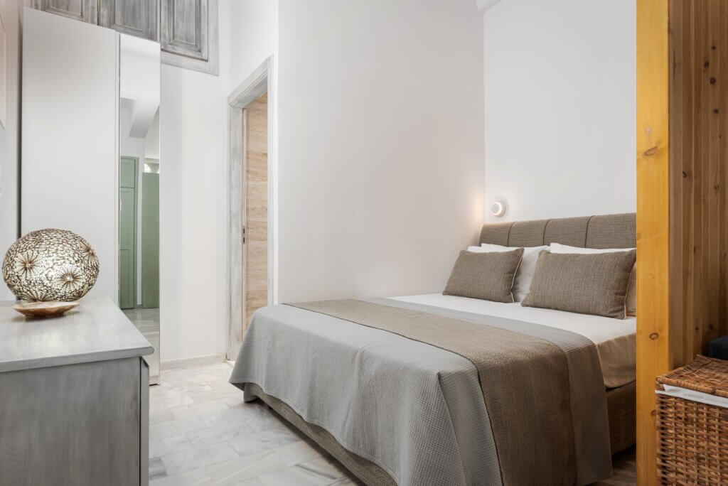 Seashore Studio, also on the ground floor, offers 45 square meters of cozy and functional accommodation. It includes one bedroom with a queen-size bed, one bathroom, a fully equipped kitchen, and a sofa bed for added convenience. Guests can enjoy sea and garden views as well as a private outdoor patio, making it a charming choice for couples or solo travelers.
