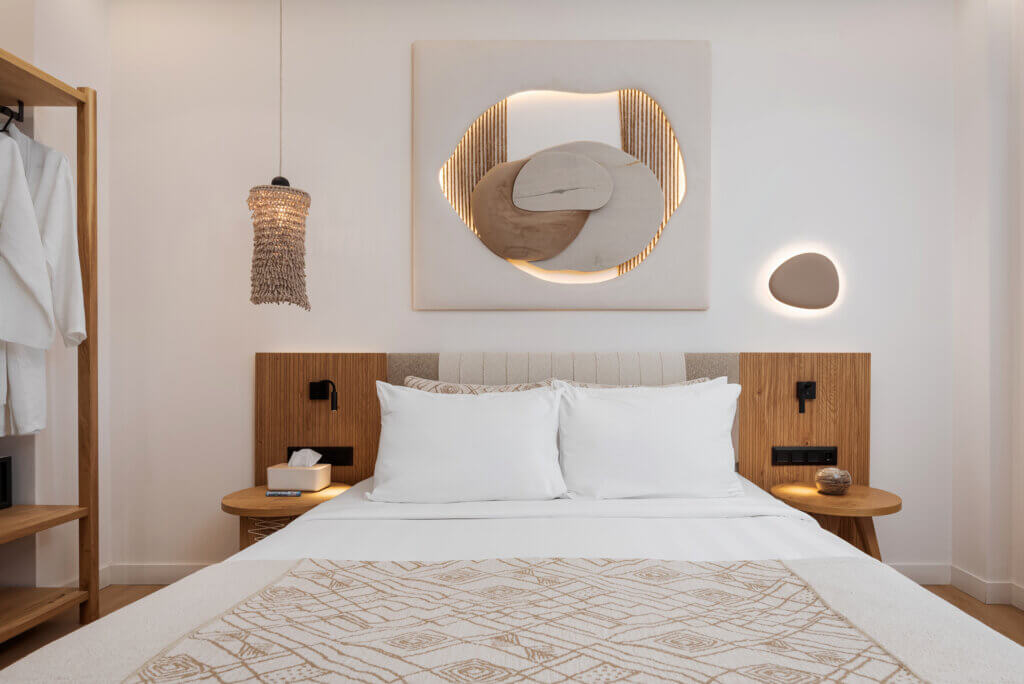 This elegant property is thoughtfully designed for the modern guest, with a strong focus on style, simplicity, and comfort. The architecture and interiors reflect a harmonious blend of natural materials and contemporary minimalism. Earthy tones, soft textures, custom wooden furniture, and artistic wall features create a calming, refined atmosphere in every space.