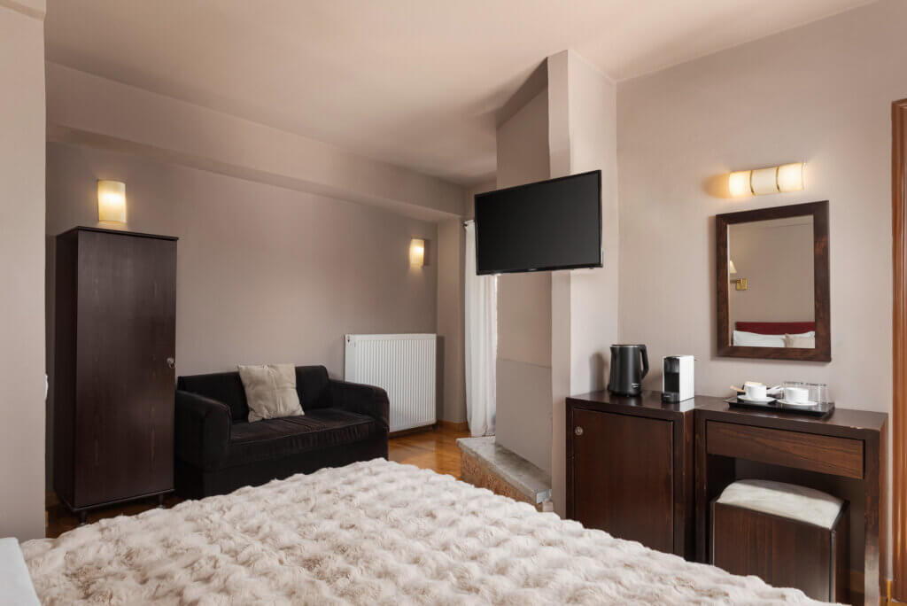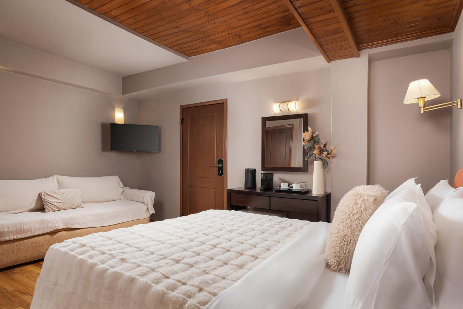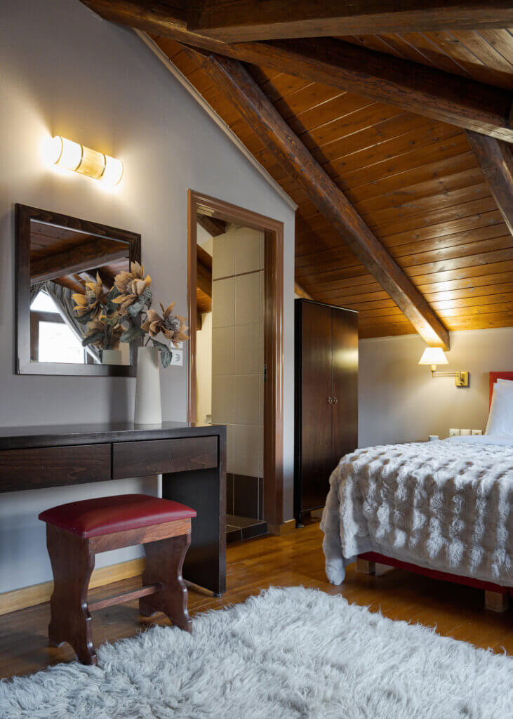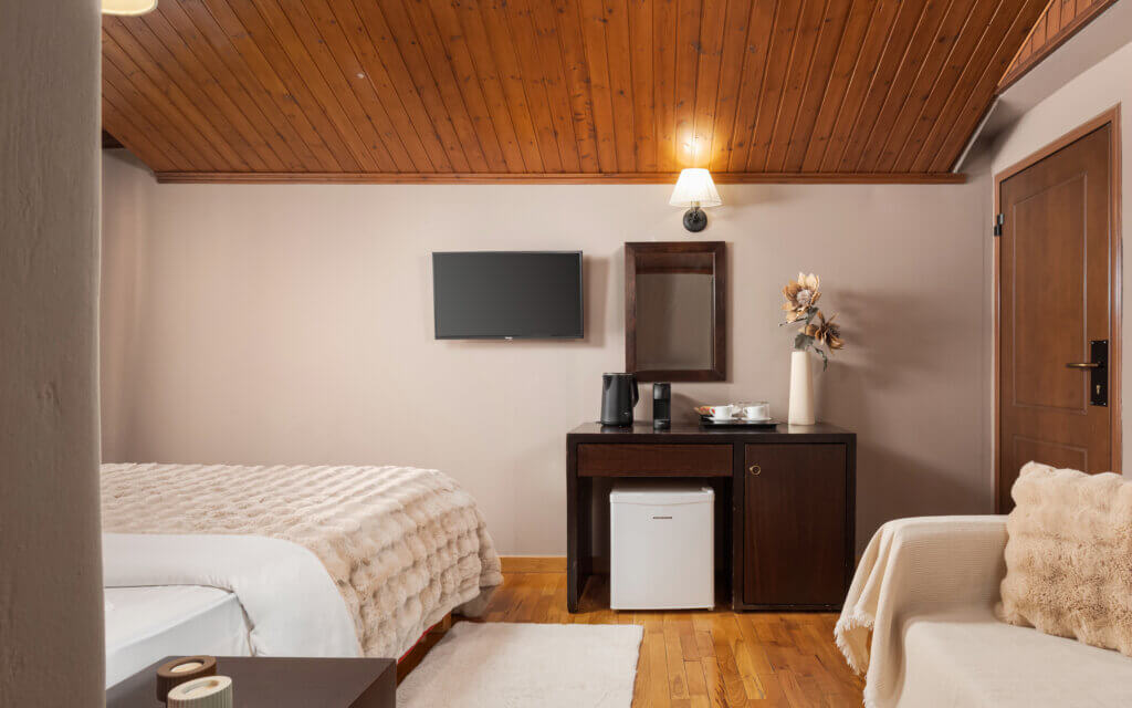 Each room at Mons Arachova seamlessly combines the region’s traditional architecture with modern conveniences, ensuring an unforgettable stay in one of Greece’s most beautiful mountain villages.