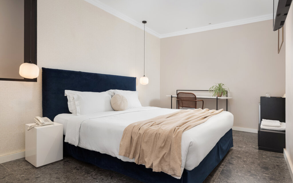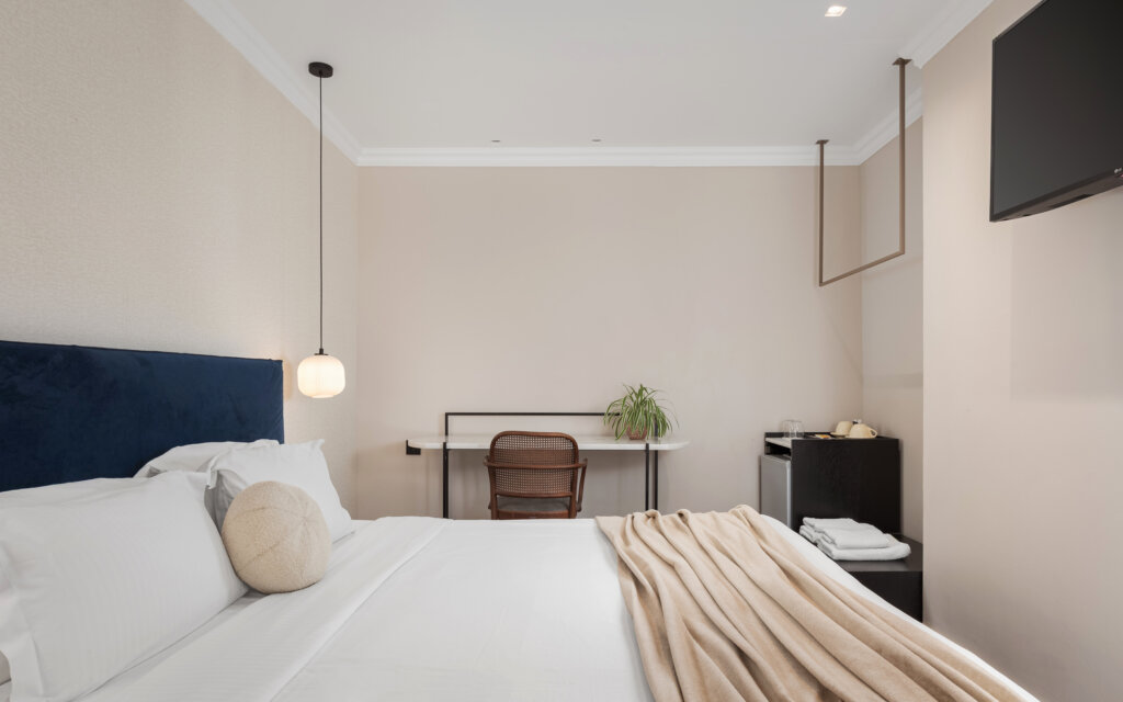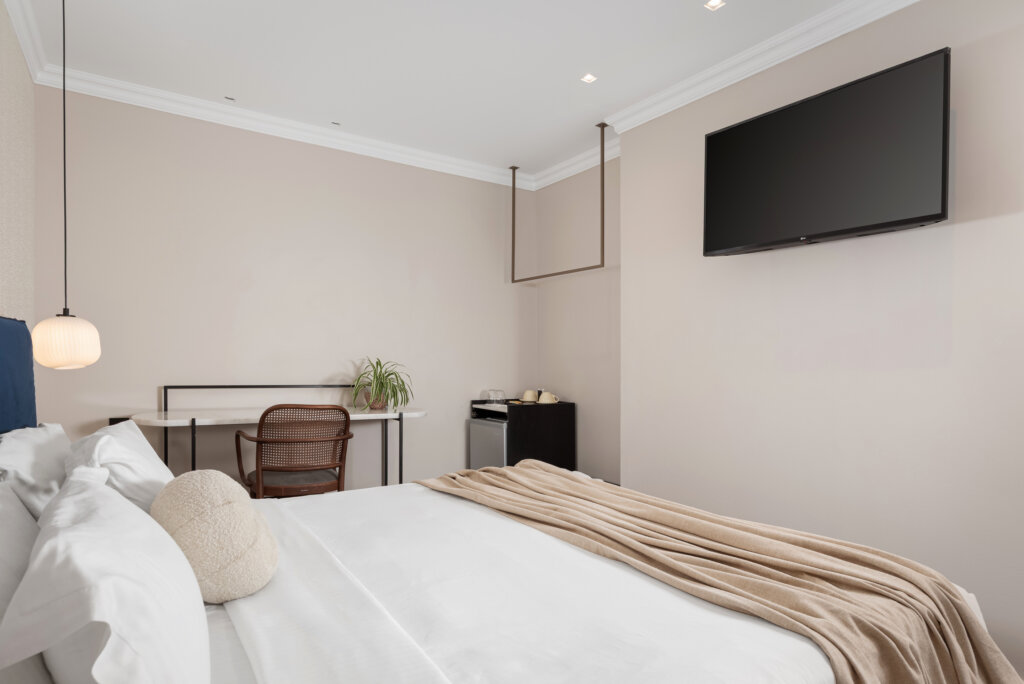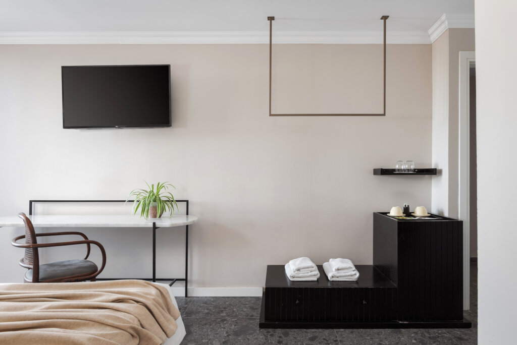 Blending modern aesthetics with warm Mediterranean elements, each suite is thoughtfully designed to provide a relaxing escape. Guests can enjoy elegant interiors, premium amenities, and balconies that open to either the vibrant city streets or the calming sea horizon.