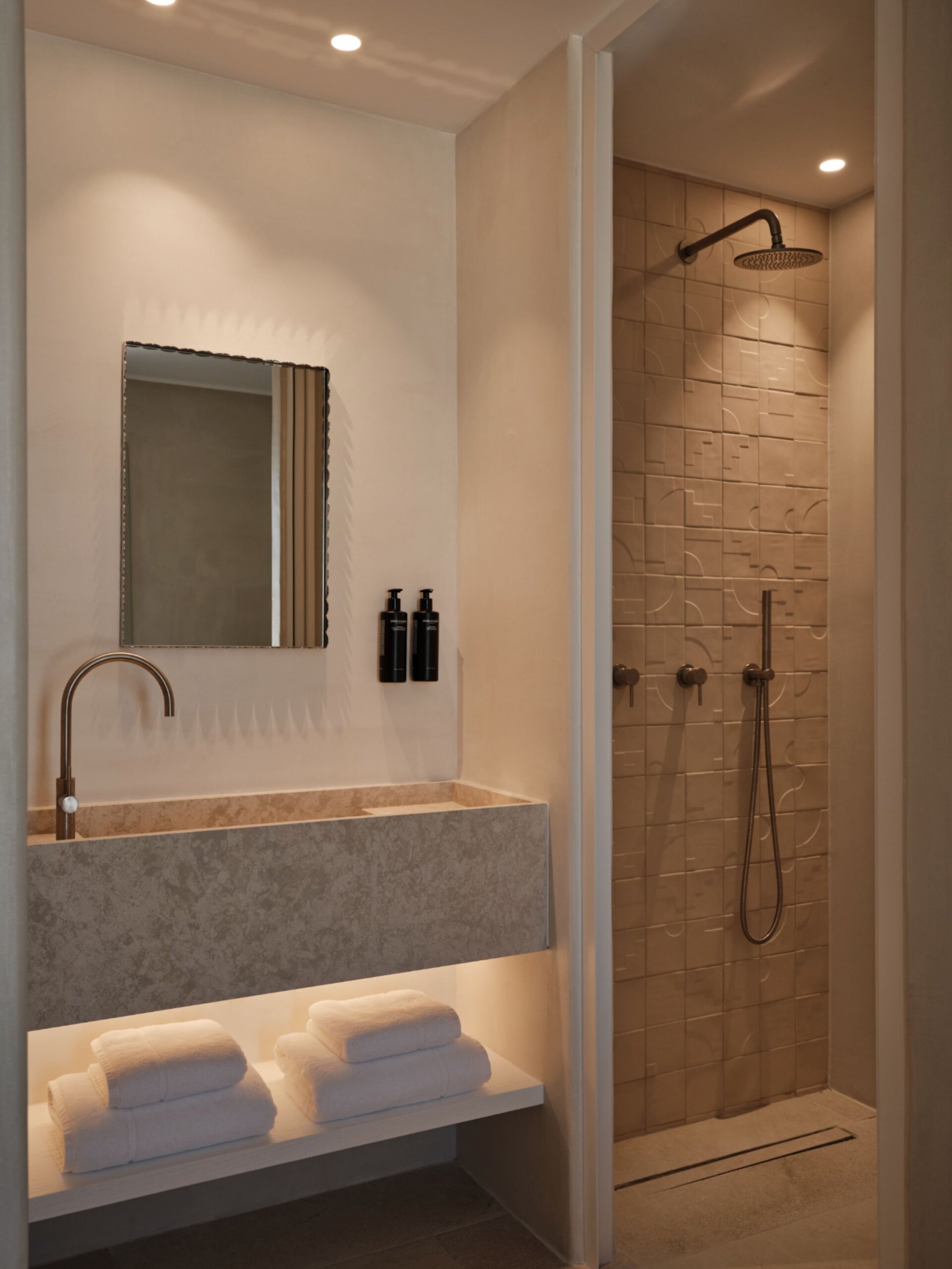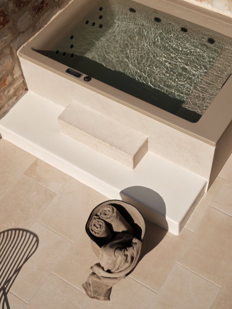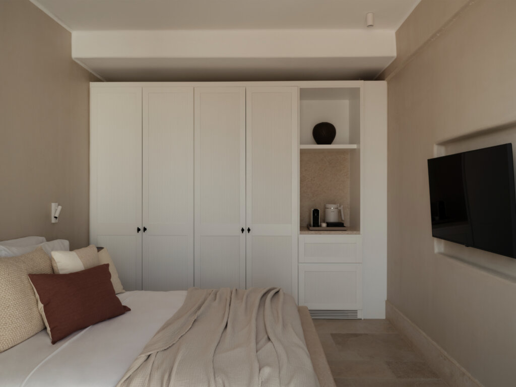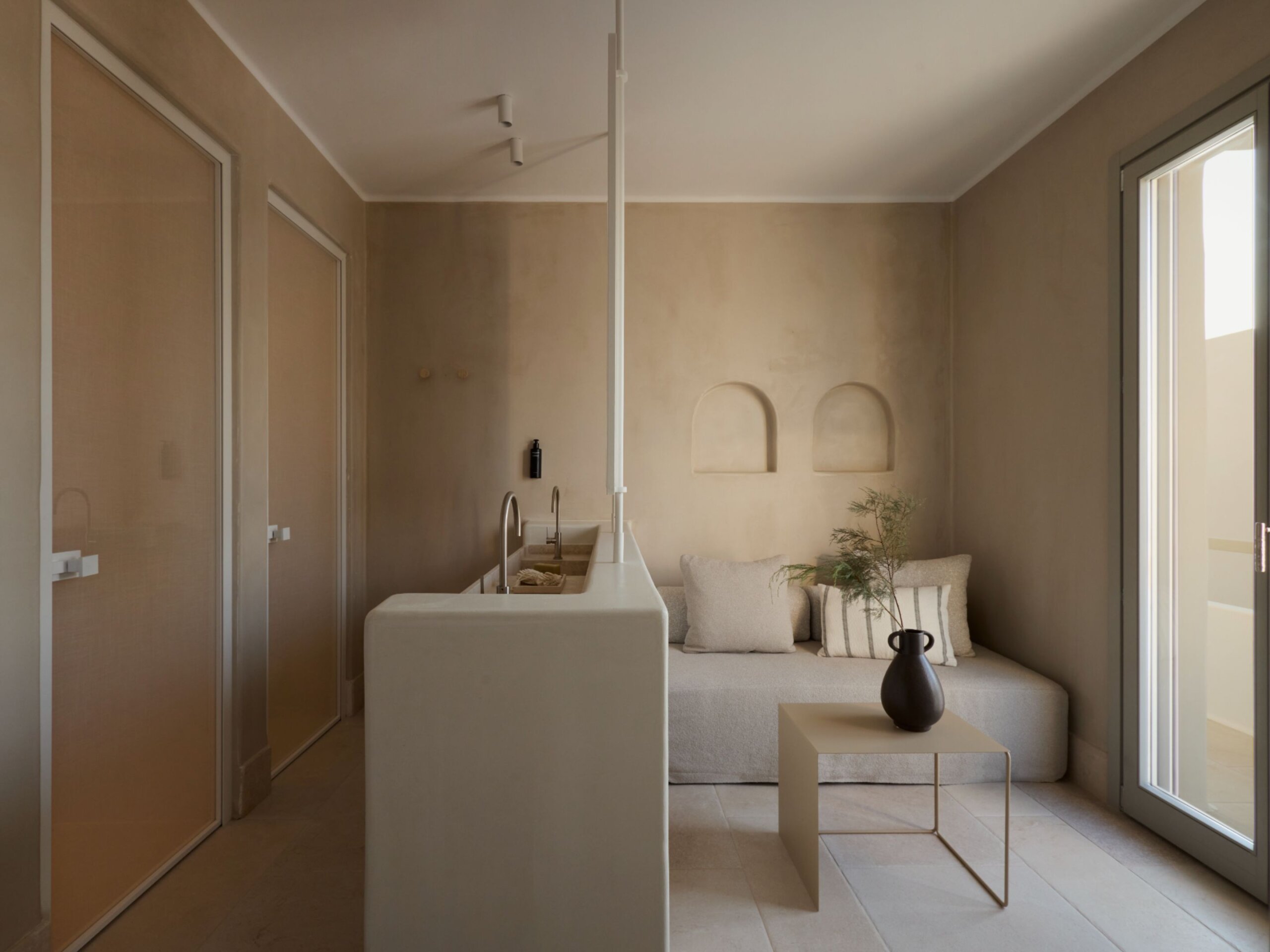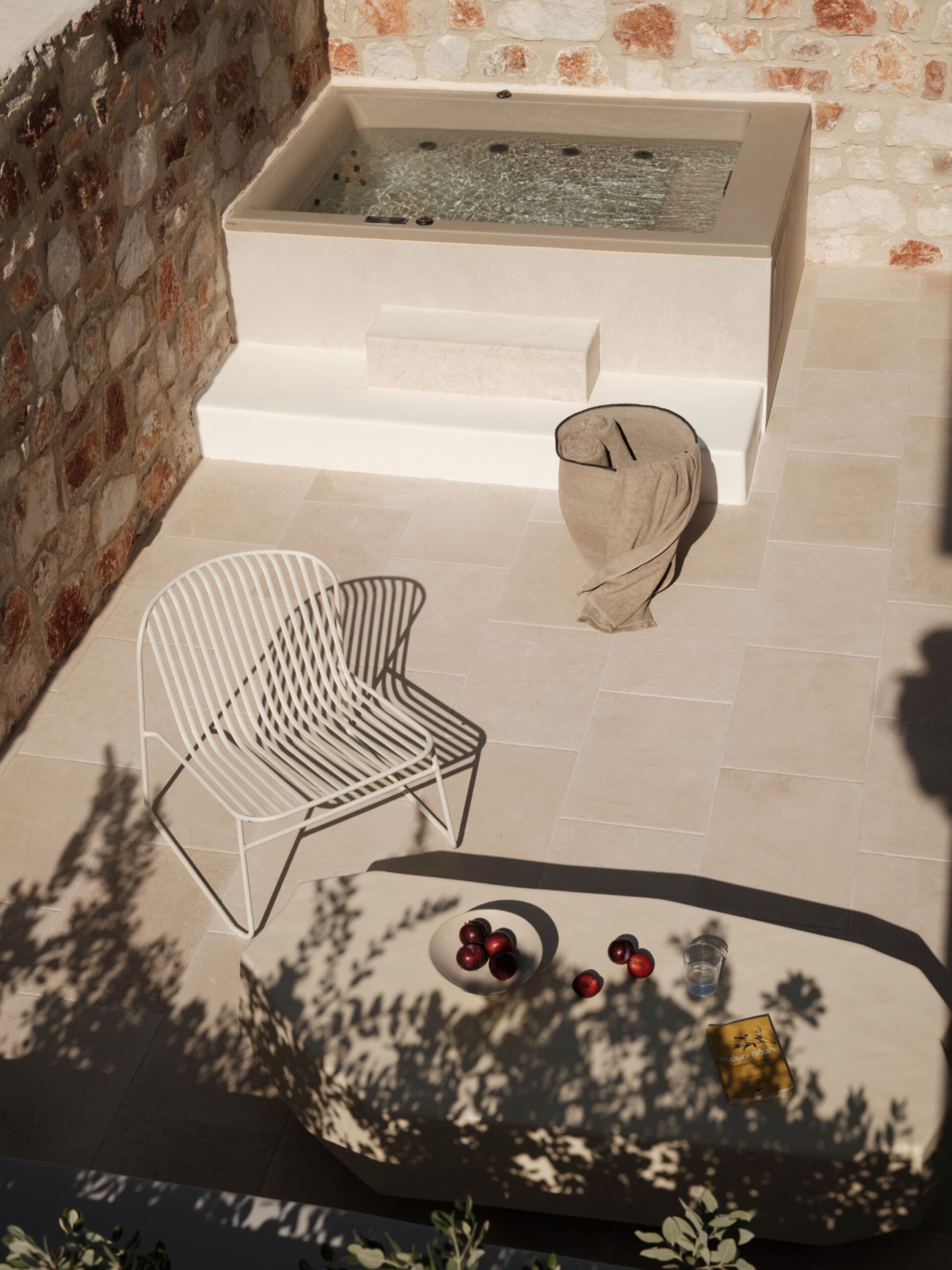 With a total of twelve beautifully designed suites, each space offers its own character and a fresh contemporary aesthetic. Many suites feature private balconies or terraces, while several offer impressive sea views or the added indulgence of a private outdoor Jacuzzi. Interiors are crafted with attention to detail, including queen size beds, chic bathrooms with walk-in showers and high-quality furnishings that enhance relaxation.