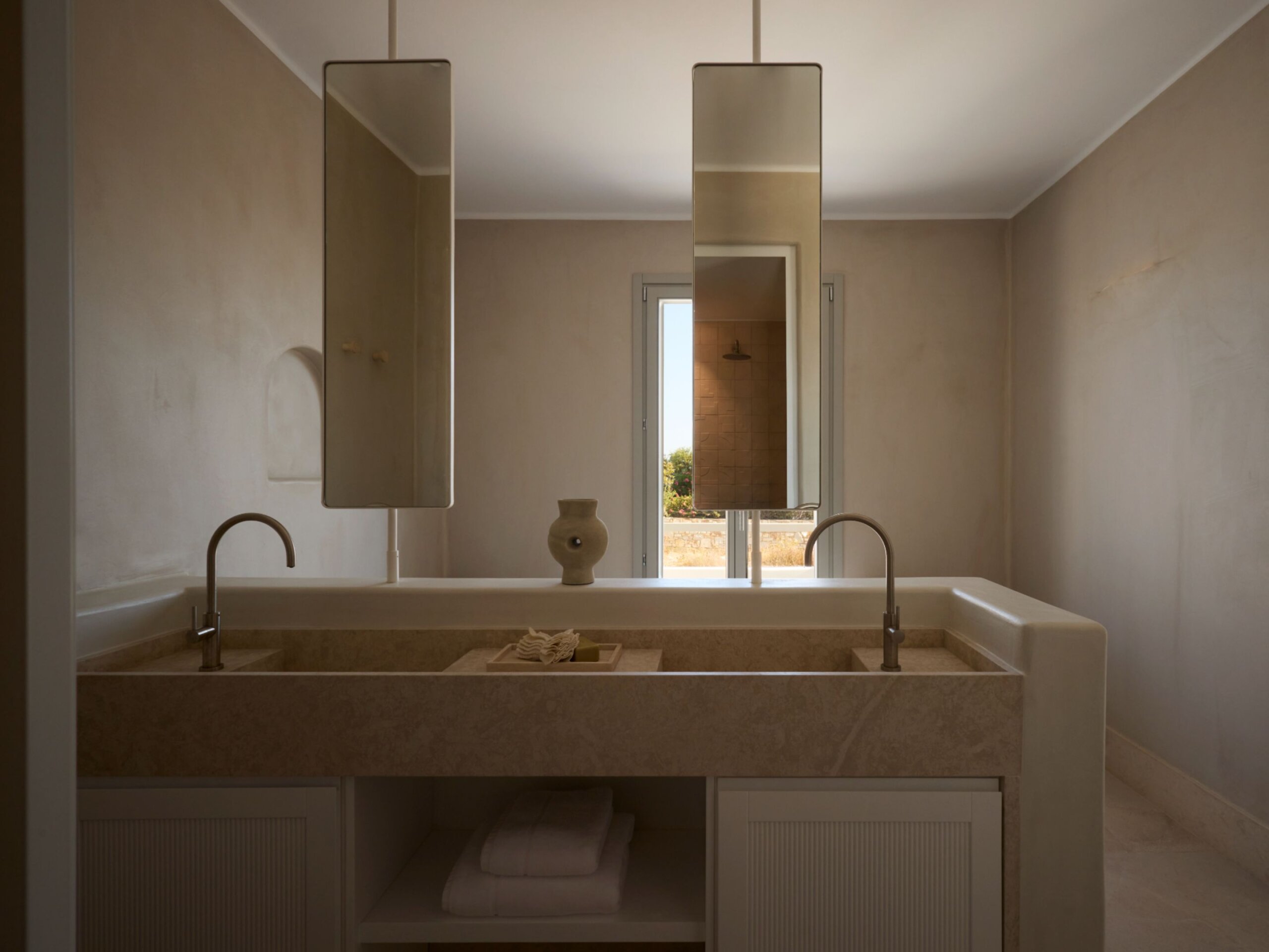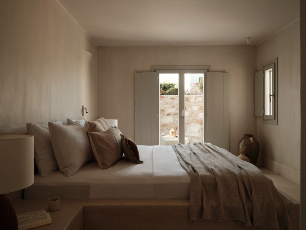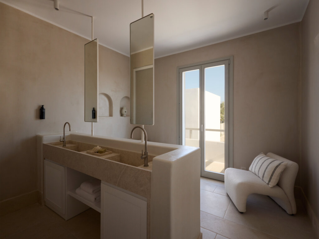 The property combines modern Cycladic architecture with refined minimal design, creating a serene and stylish atmosphere ideal for couples and guests seeking comfort, luxury and privacy.