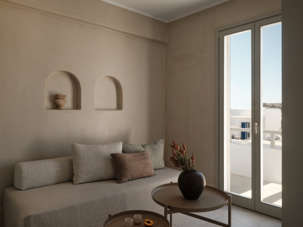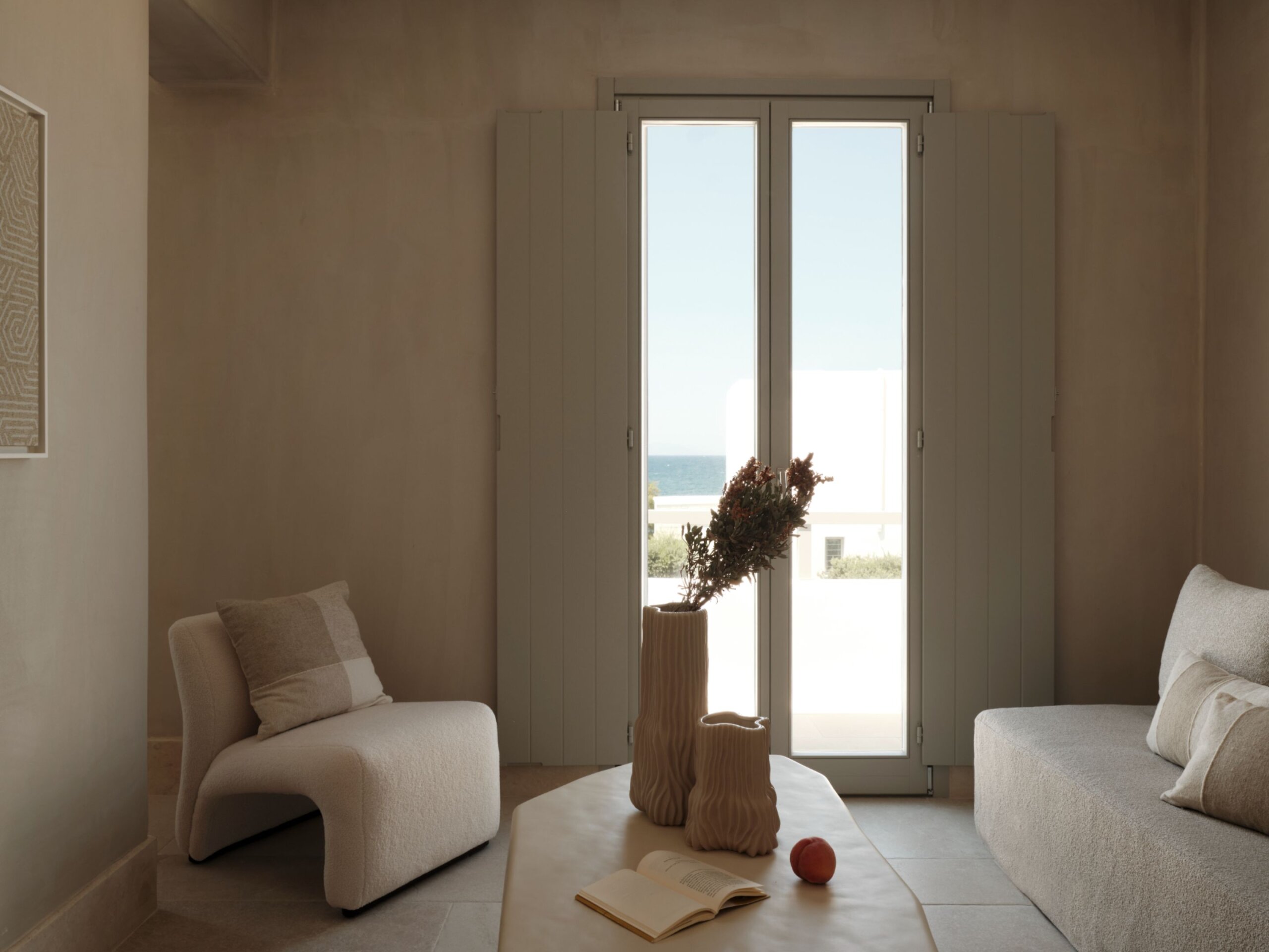 Akria Seaside Suites is an elegant boutique hotel in the heart of Naoussa, Paros, offering a privileged location directly next to the sea and within easy reach of the village’s vibrant dining and nightlife scene.