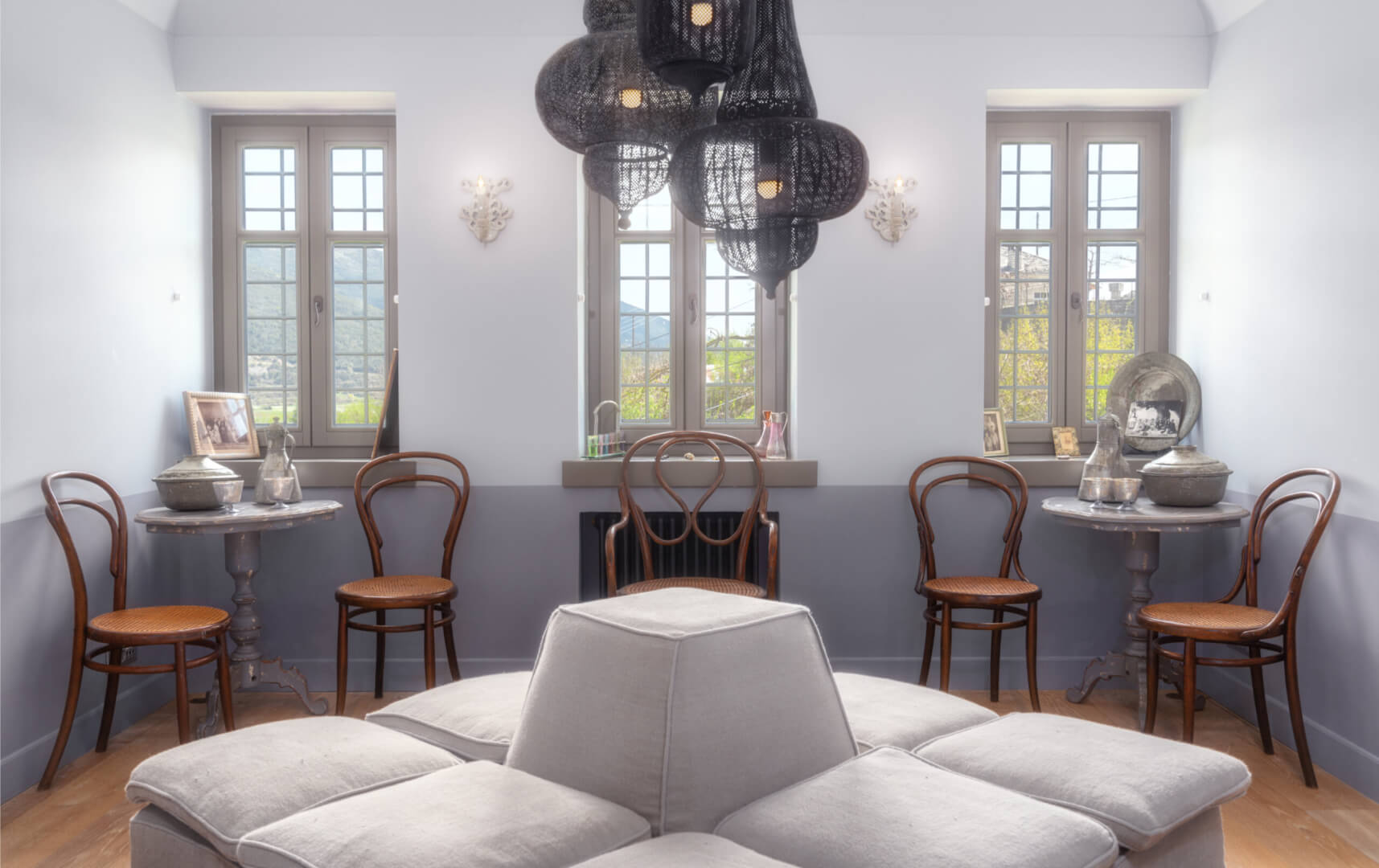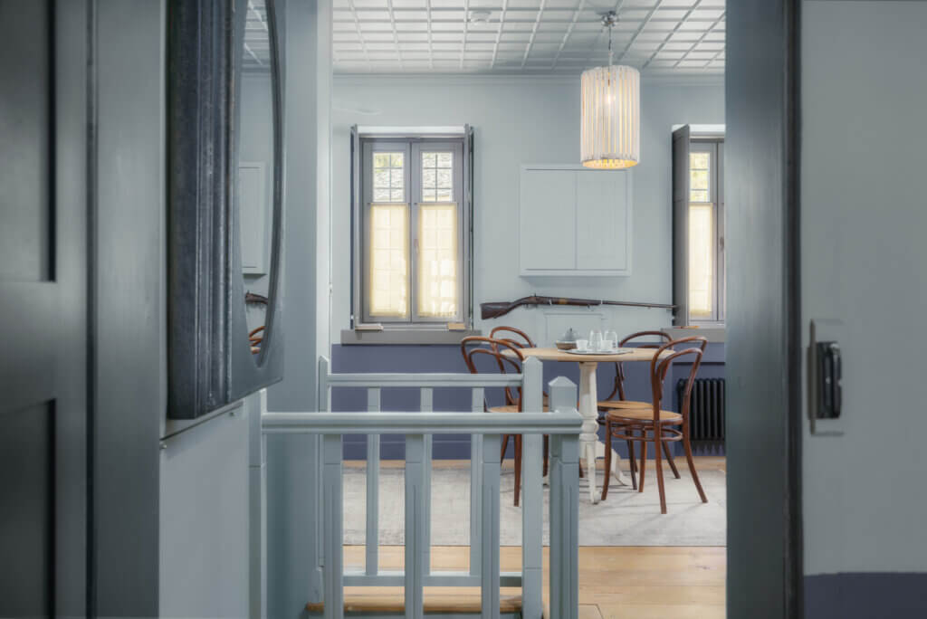 Inside, the hotel exudes the atmosphere of an elegant and welcoming home. Its communal spaces include cozy lounges with traditional fireplaces, quiet reading areas, a bar and snack bar, a game and home-cinema room, and a wellness space with a steam bath and jacuzzi, creating an ideal setting for rest and comfort. Outdoor living areas further connect guests to the surrounding nature, offering quiet spaces to admire the surrounding mountains and traditional village charm.