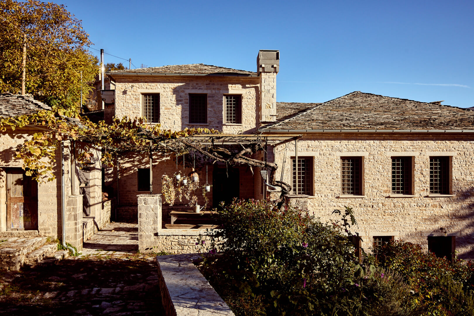 Apeiros Chora Hotel welcomes you to a beautifully restored Zagori mansion where tradition and modern comfort blend seamlessly. The renovation remains faithful to the home’s original character—wooden ceilings, hand-cut stone, and natural textures—while integrating eco-friendly materials and discreet technology to ensure an inviting and effortless stay. The hotel offers five uniquely designed suites, each crafted for comfort, style, and convenience, providing guests with a relaxing and perfectly balanced accommodation experience.