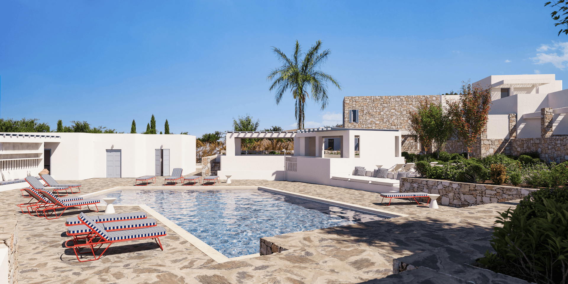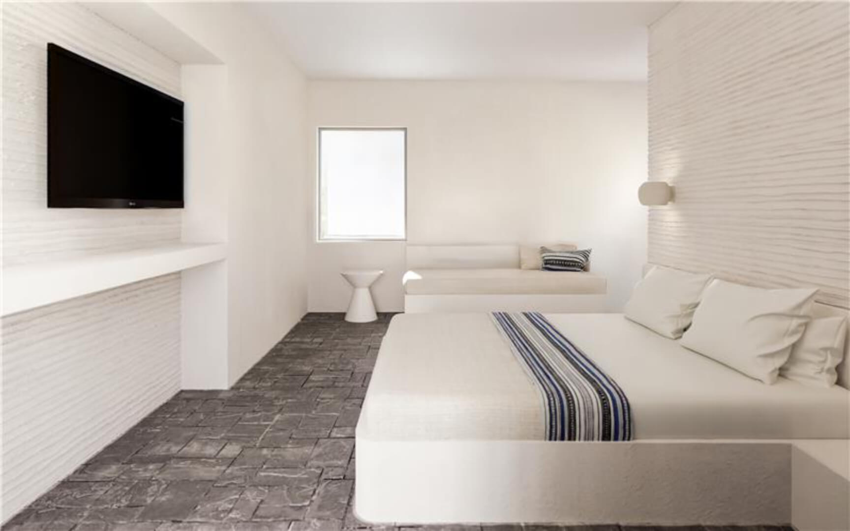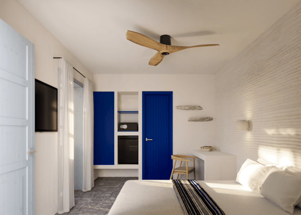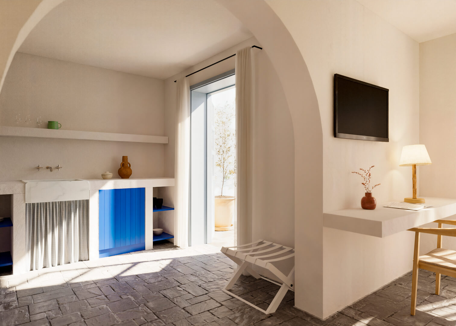 Each room is carefully designed with simplicity and functionality in mind, featuring bright, airy interiors, comfortable queen-size beds dressed in a premium linen collection by Laura Ashley, and modern bathrooms with showers. Guests can choose from a variety of options, including rooms with private balconies overlooking the pool, rooms with beautiful sea views, and spacious suites ideal for longer stays or additional comfort. Select suites also feature kitchenettes for added flexibility, while others offer a private indoor jacuzzi, perfect for moments of relaxation and indulgence.