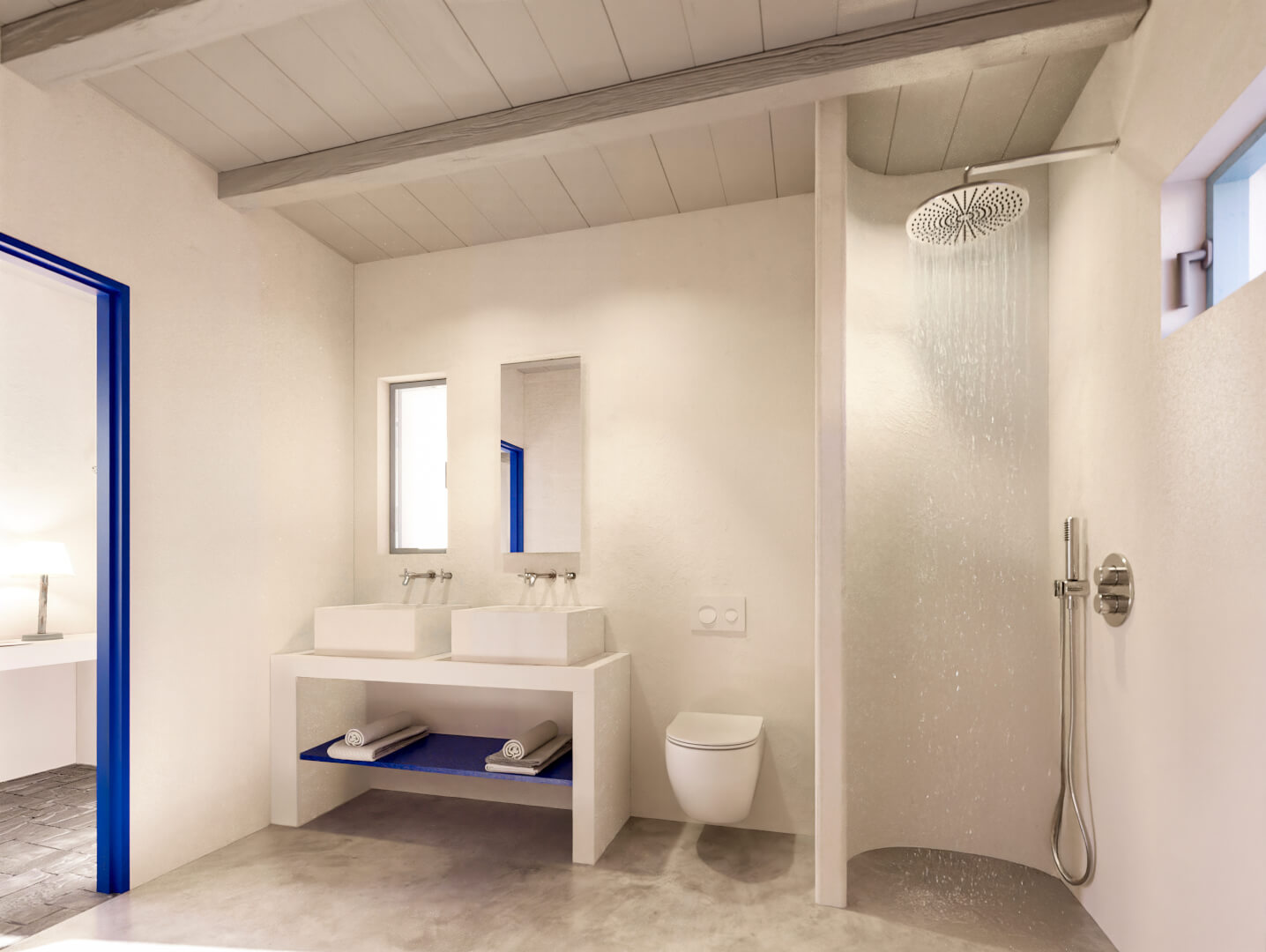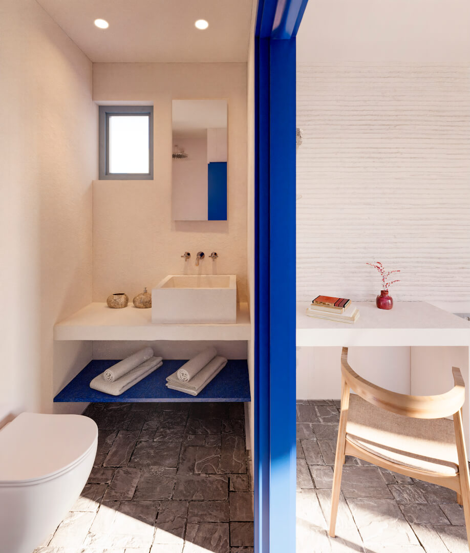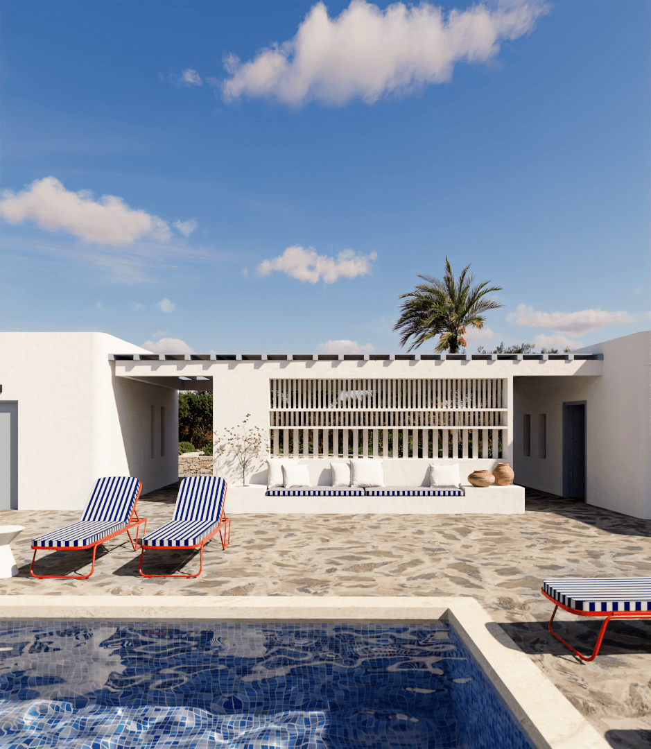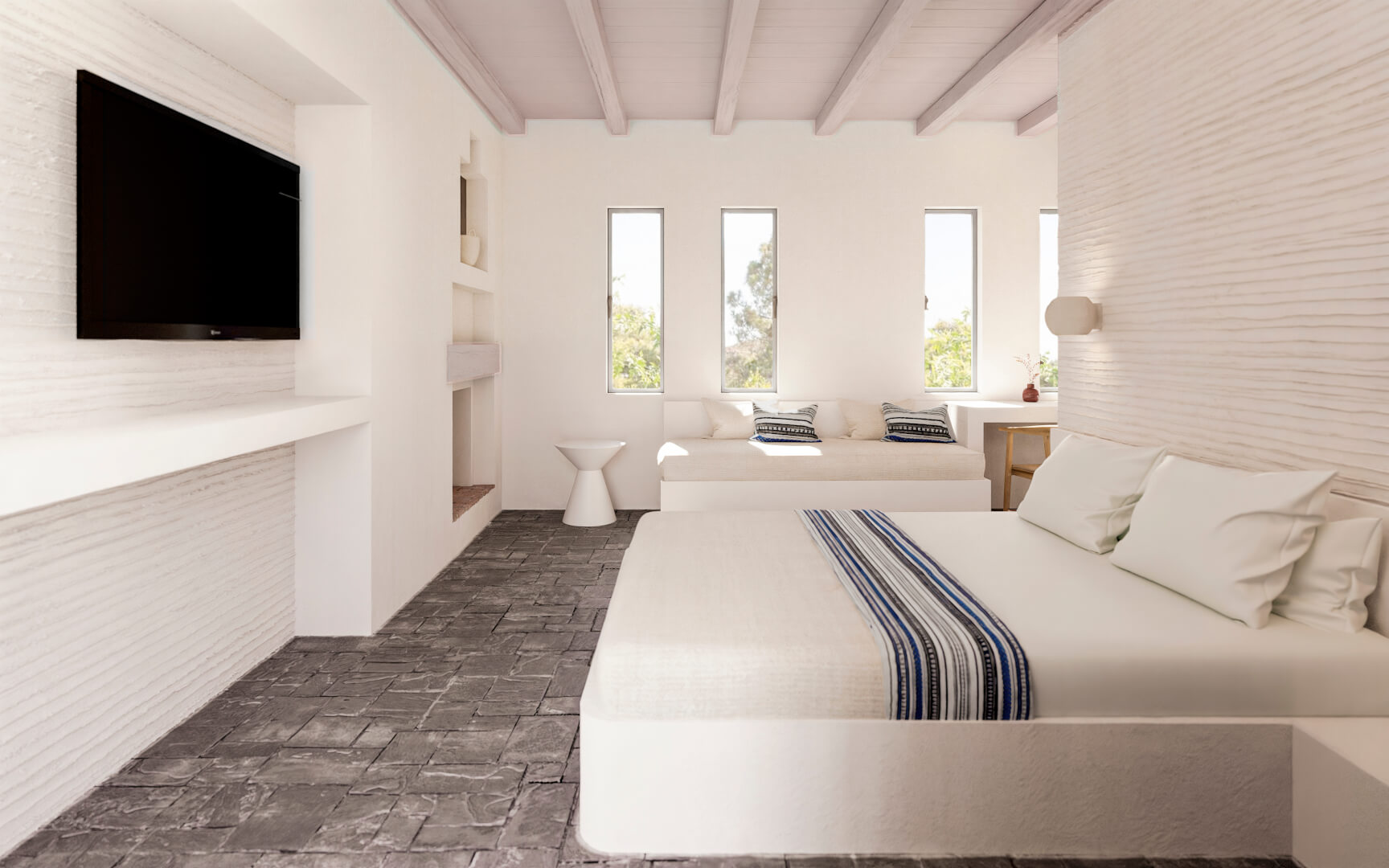 Each room is carefully designed with simplicity and functionality in mind, featuring bright, airy interiors, comfortable queen-size beds dressed in a premium linen collection by Laura Ashley, and modern bathrooms with showers. Guests can choose from a variety of options, including rooms with private balconies overlooking the pool, rooms with beautiful sea views, and spacious suites ideal for longer stays or additional comfort. Select suites also feature kitchenettes for added flexibility, while others offer a private indoor jacuzzi, perfect for moments of relaxation and indulgence.