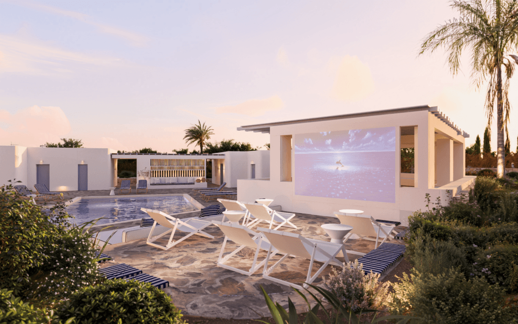 At the heart of the hotel, guests can unwind by the shared swimming pool, enjoying the warm Mediterranean sun in a peaceful setting. The inviting shared dining and sitting areas create a welcoming atmosphere to relax or socialize, while the on-site café offers the perfect spot to start your day or enjoy a refreshing break. The outdoor patio adds another layer of comfort, providing a serene space to unwind throughout the day.