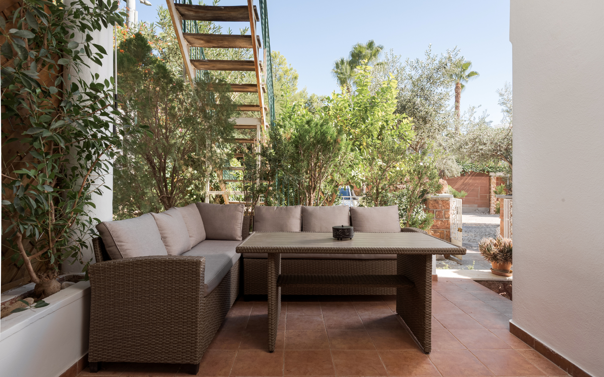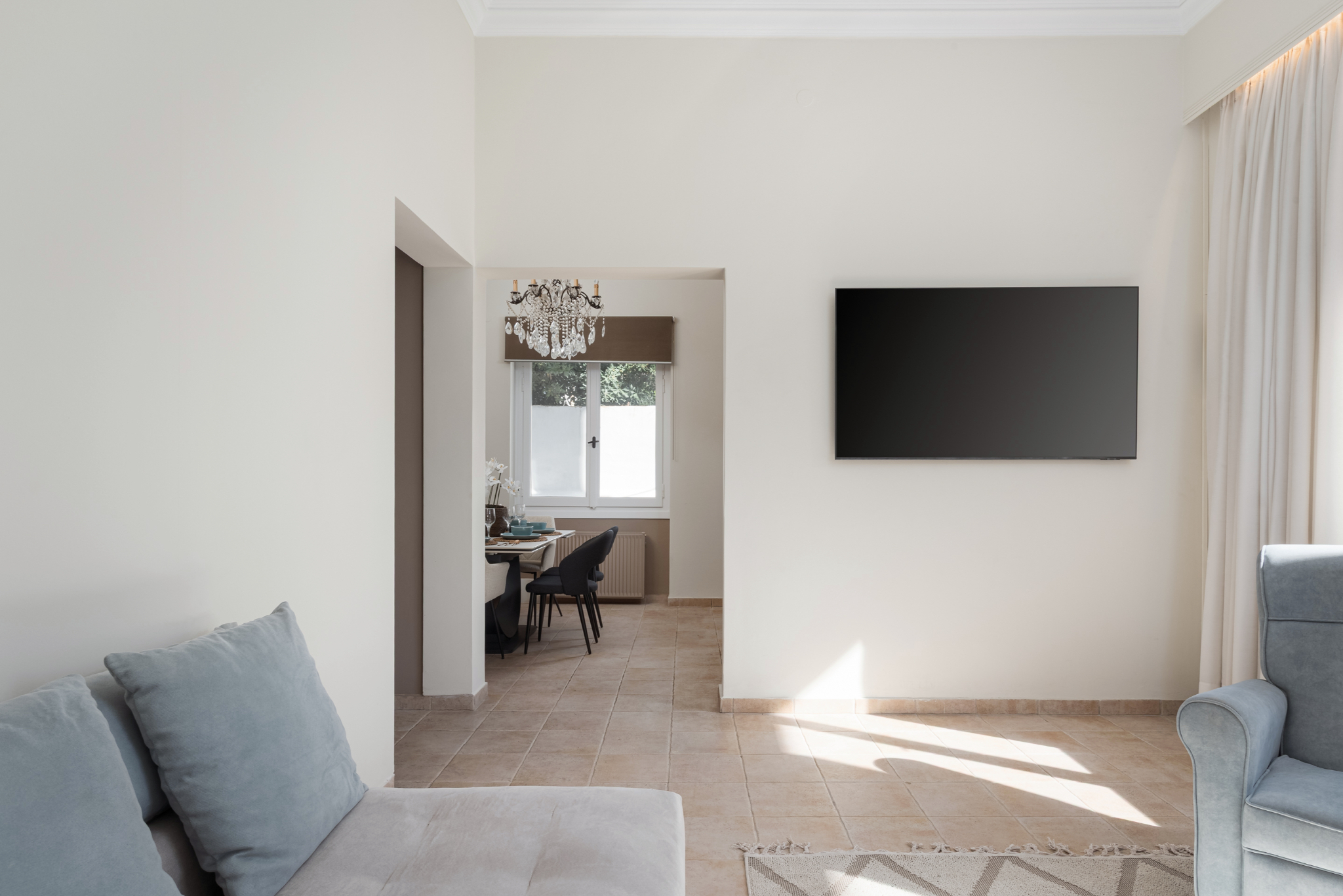 Step outside into the charming private garden, furnished with outdoor seating where you can unwind, enjoy your morning coffee, or soak up the Greek sun.
