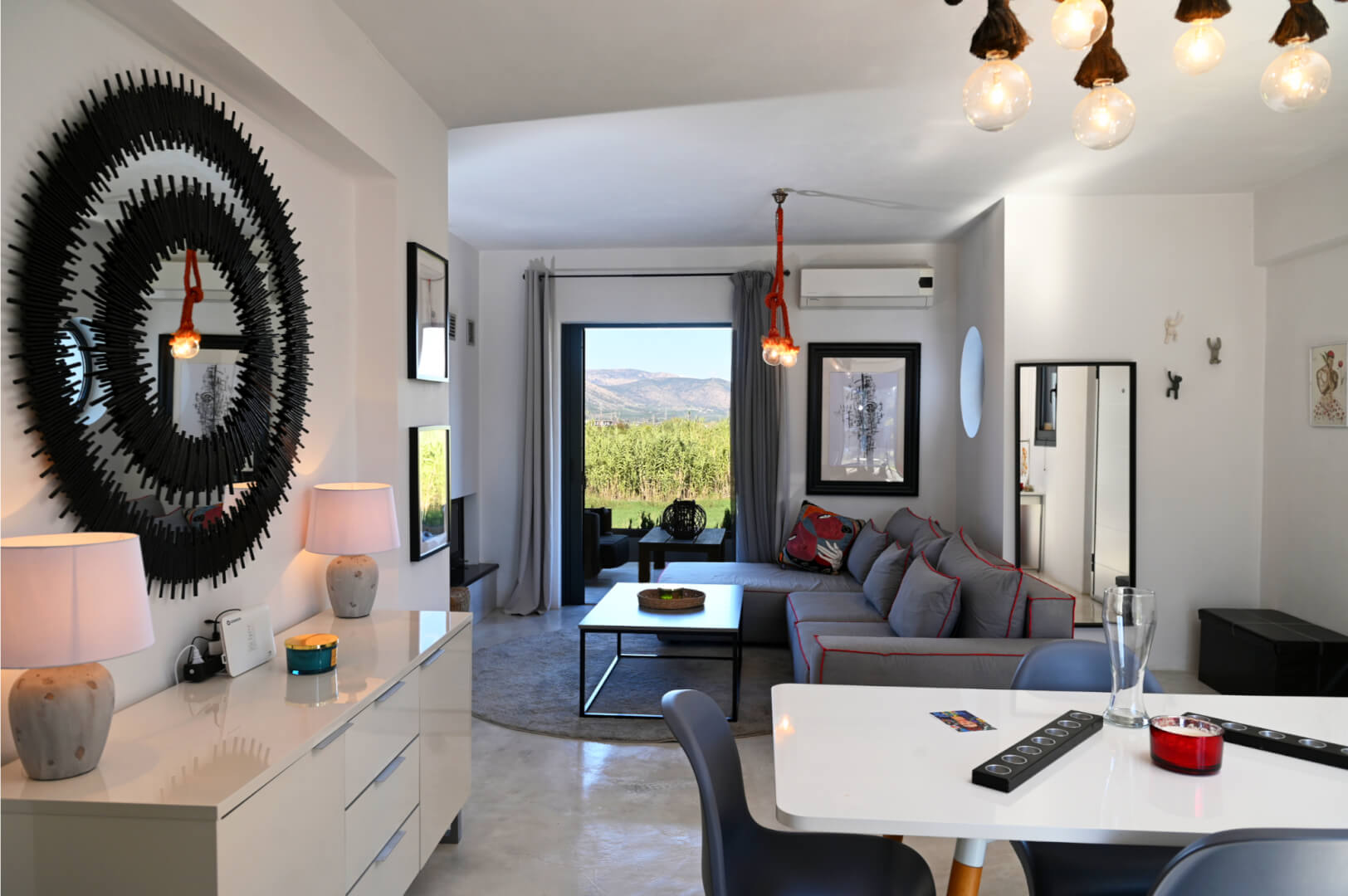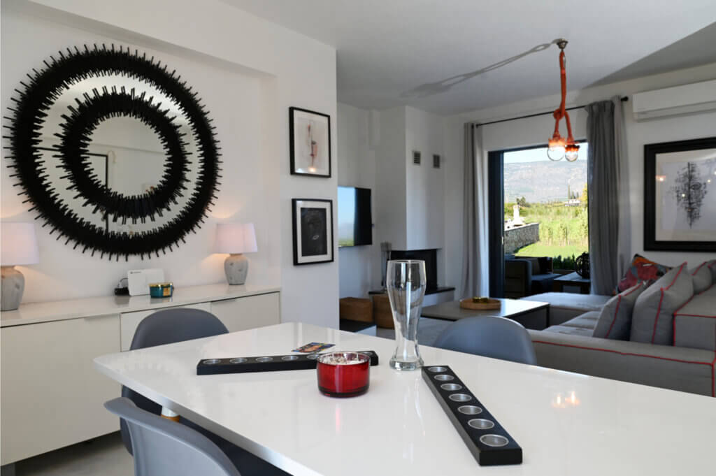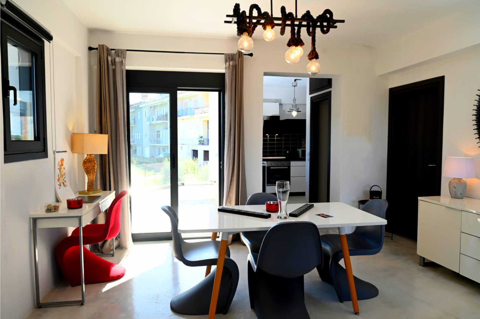 Outside, a small private garden invites guests to unwind and enjoy the Mediterranean climate. The outdoor dining table makes it an ideal spot for al fresco meals, morning coffee, or evening drinks after sunset. The peaceful surroundings, combined with the home’s beachfront location and easy access to Nafplio’s historic center, make Hydra House Nafplio an excellent choice for families, couples, or groups seeking relaxation, comfort, and authentic seaside living.