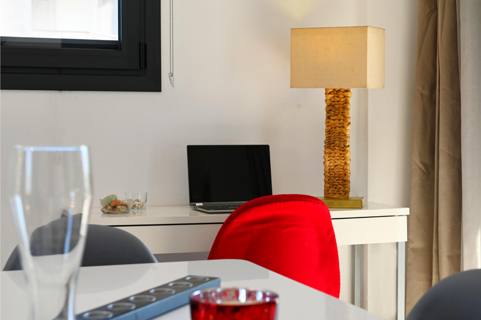 Indoors, guests can enjoy a spacious living room, ideal for relaxing after a day at the beach, along with a fully equipped kitchen and a dedicated dining area with a table, perfect for shared meals and family gatherings. All essential summer amenities are provided to ensure a comfortable and pleasant stay.