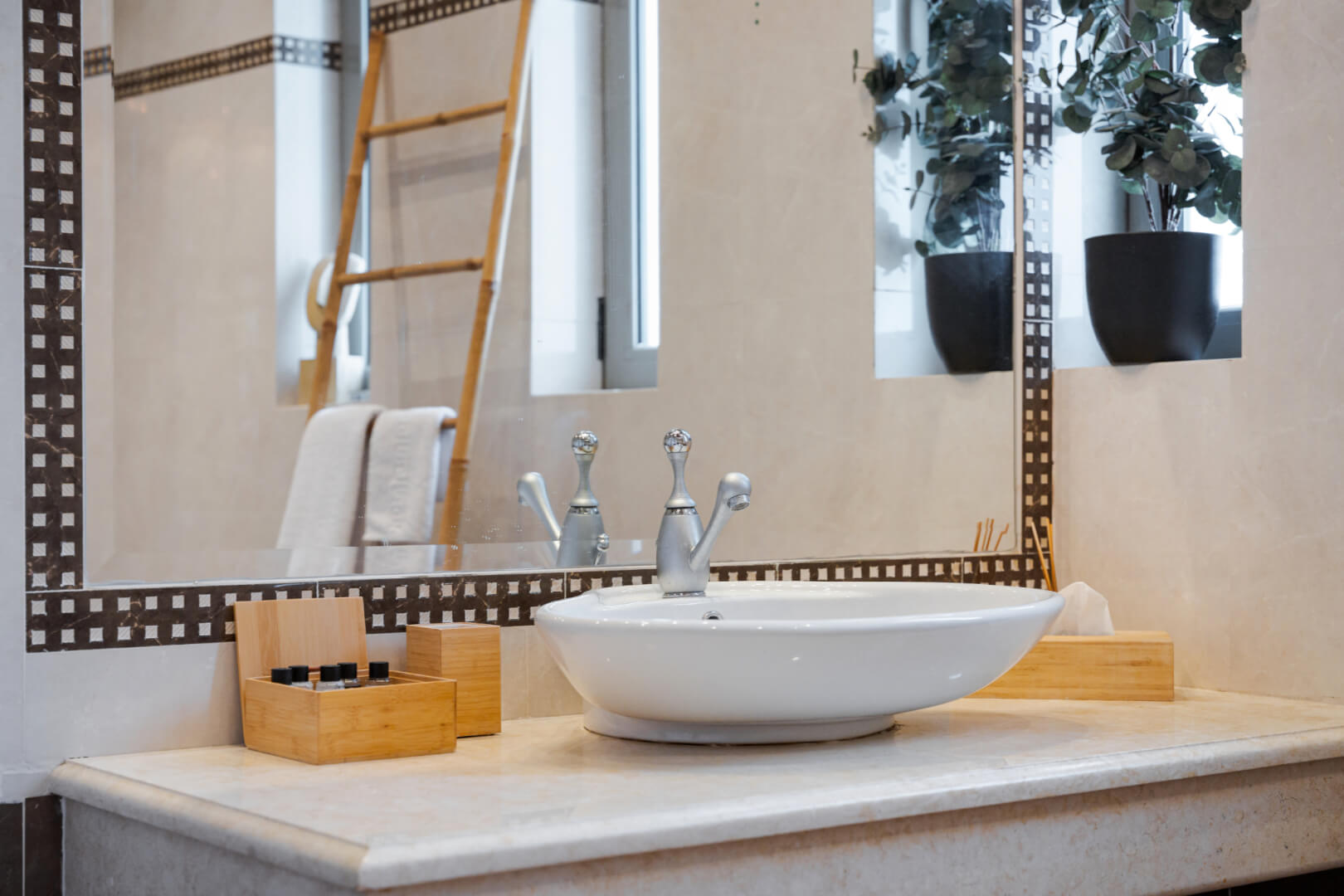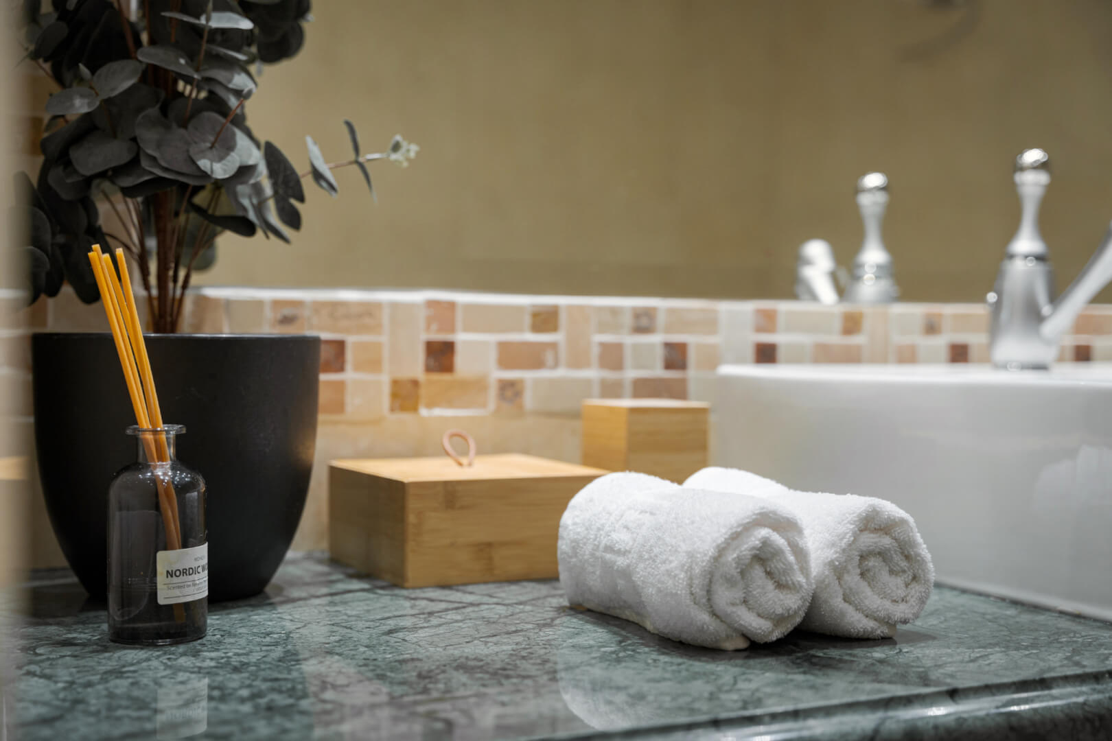 Whether you’re preparing a quick breakfast or a full Mediterranean dinner, the fully equipped kitchen offers everything you need, quality appliances, ample counter space, cookware, and utensils.
