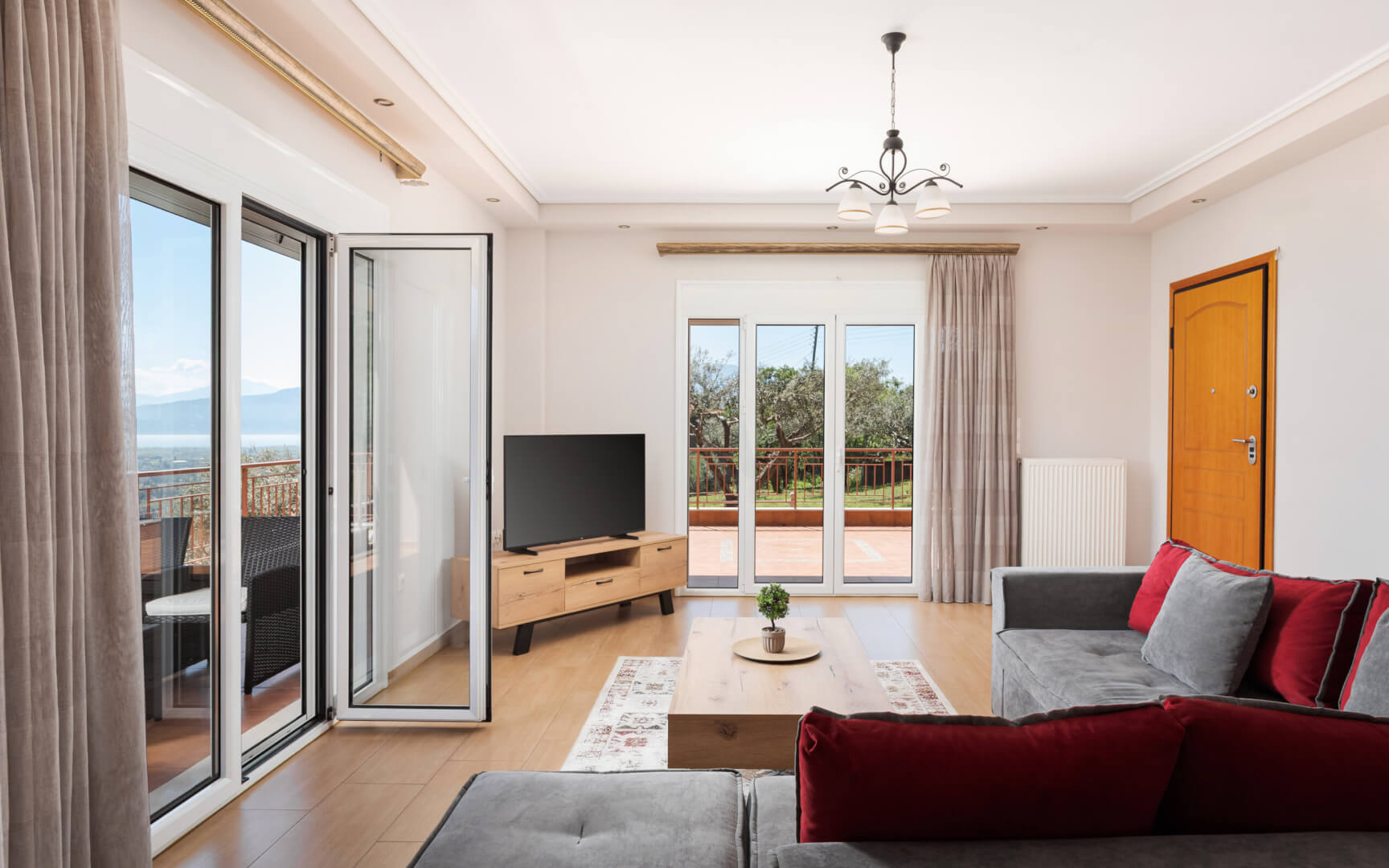 Welcome to Aphrodite’s Residences Nafpaktos, a welcoming property in the beautiful coastal town of Nafpaktos. The residence features two comfortable sea-view apartments in the same building. They can be booked together as one residence or separately, offering flexibility for different stays.