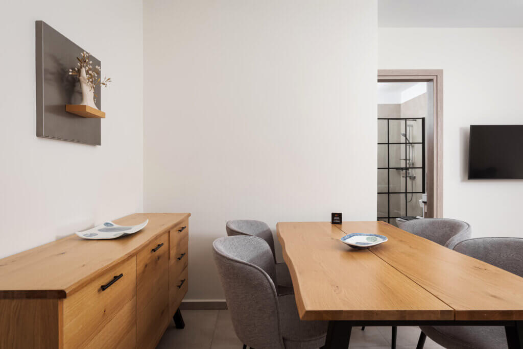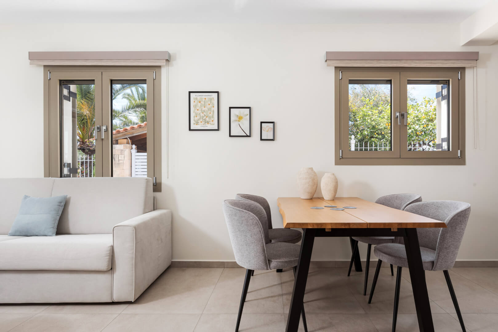 At the heart of the property lies our shared swimming pool — a tranquil oasis where sun-drenched afternoons unfold at your own pace. Lounge under the Mediterranean sky, enjoy a refreshing dip, or simply embrace the peaceful rhythm that defines life in Perdika.