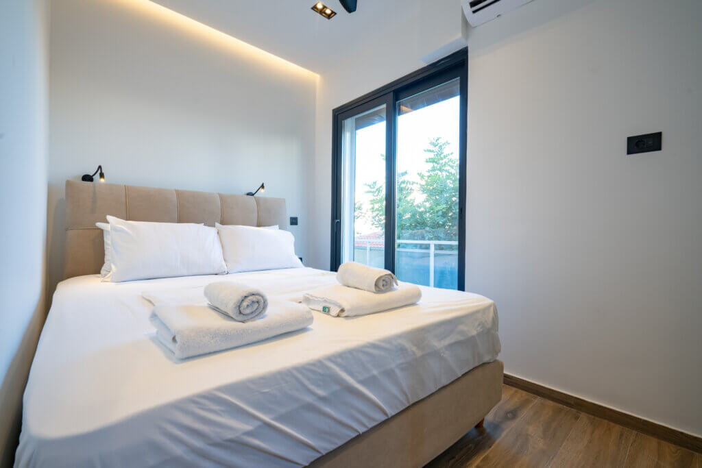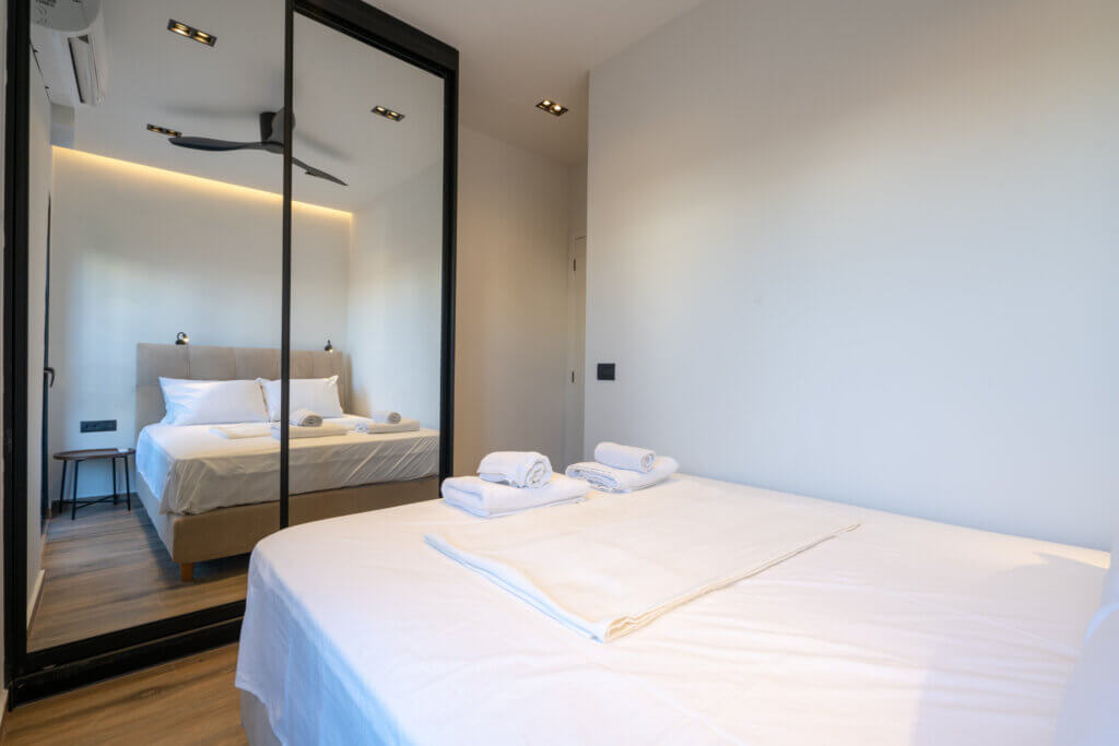 Glyfada Lux Suite Olive Aura is a modern 45-square-meter suite created for couples or solo travelers who value style and comfort. The suite features a spacious bedroom with a queen-size bed and soft linens that ensure a restful sleep. A contemporary bathroom with a full walk-in shower offers both comfort and practicality.