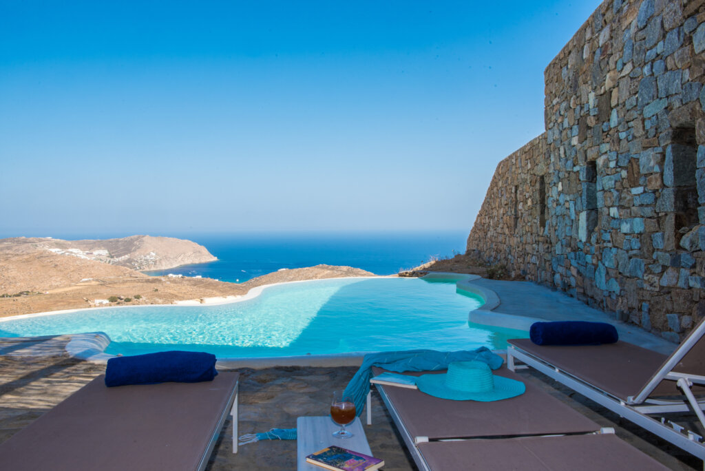 Finally, at a lower level of the property, you will discover the intimate Amalthia Suite. This charming suite accommodates up to three guests. It features a private pool and stunning sea views. As a result, it offers a peaceful and secluded escape. It is ideal for couples or small families who value privacy and natural beauty.