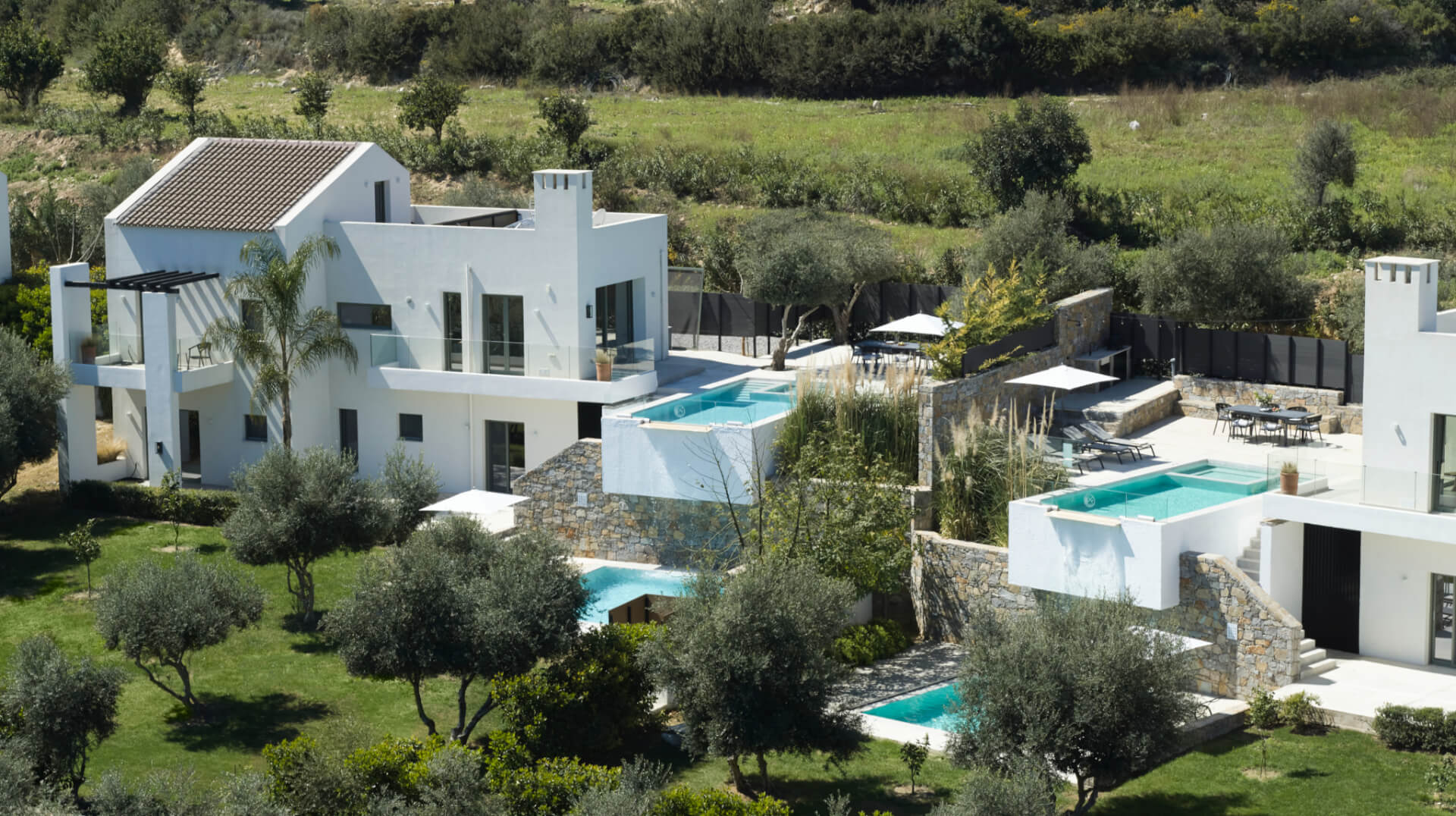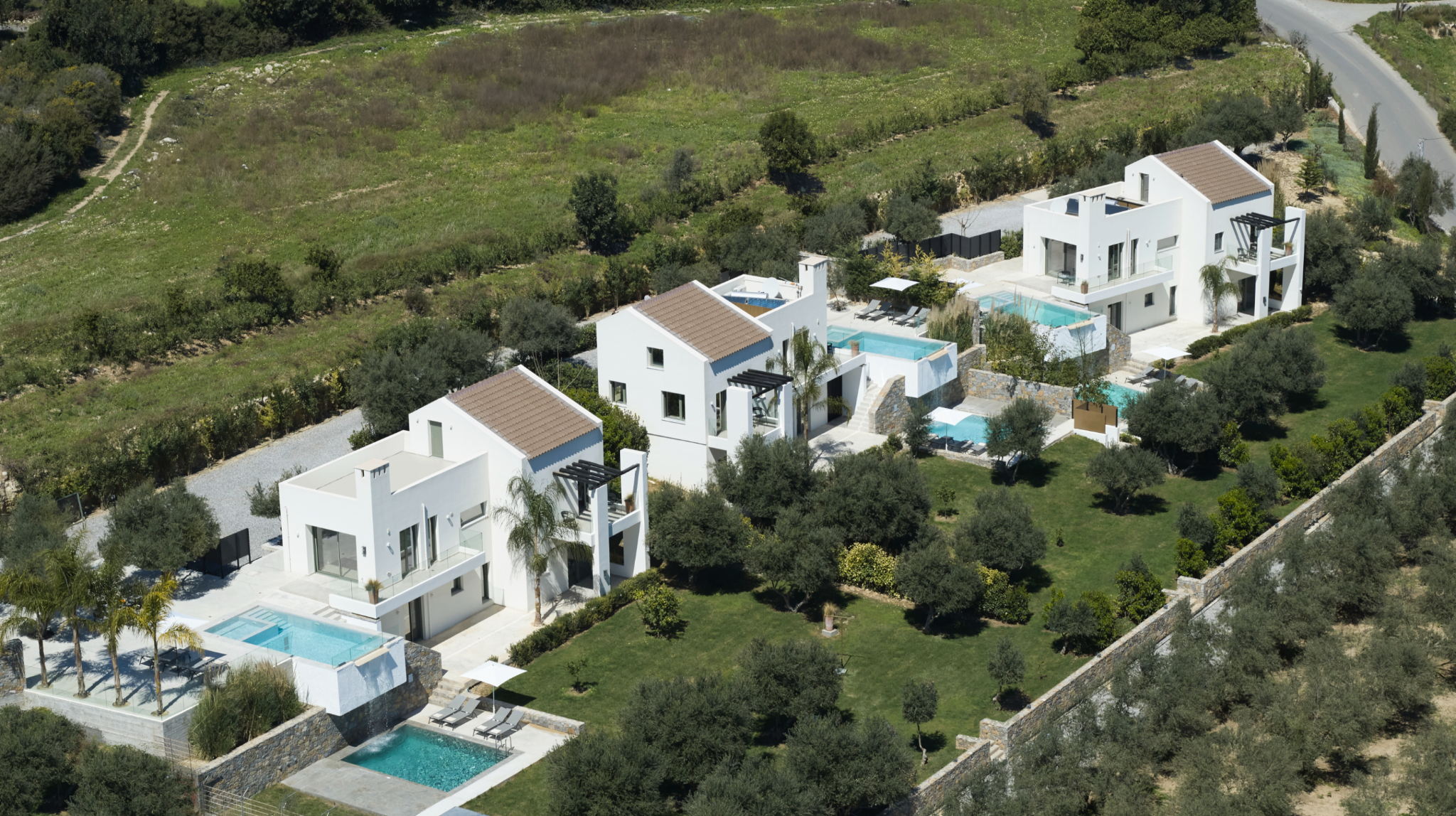 At the entrance, Villa Koroneiki stands on the right. Next, Villa Tsounati sits in the middle, while Villa Agrielia completes the row. Each villa spans 190 sqm and blends comfort, functionality, and modern luxury.