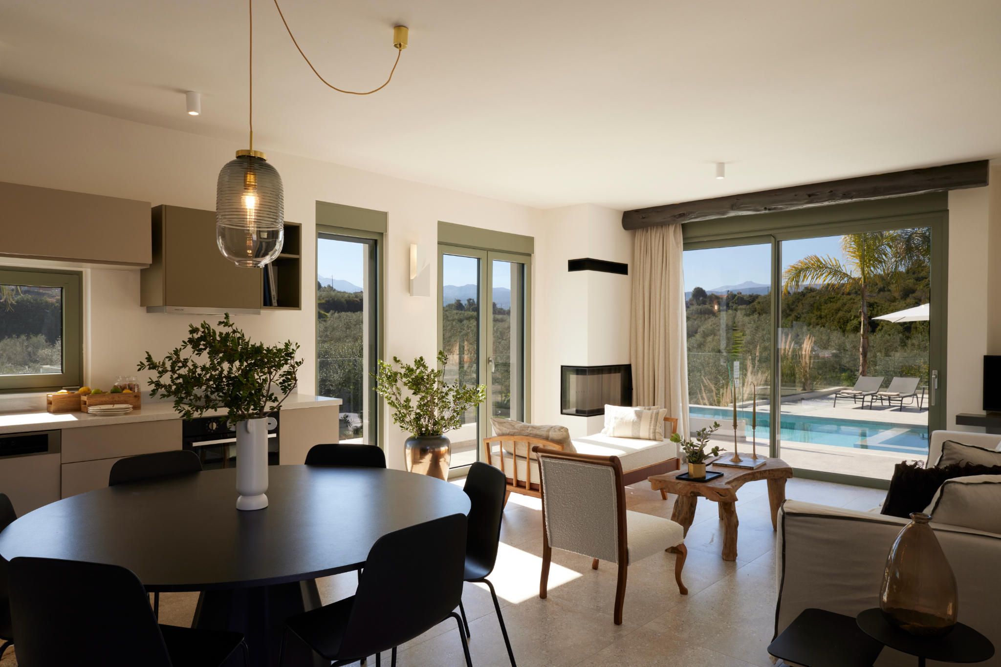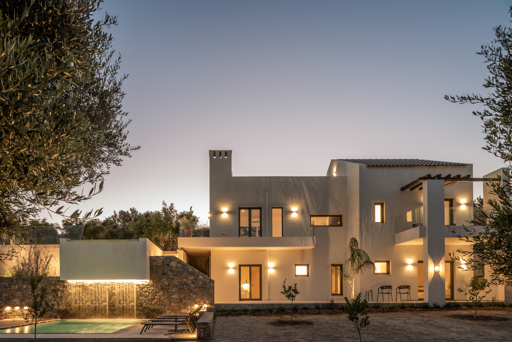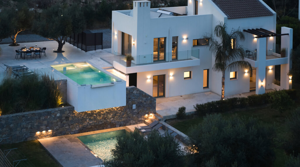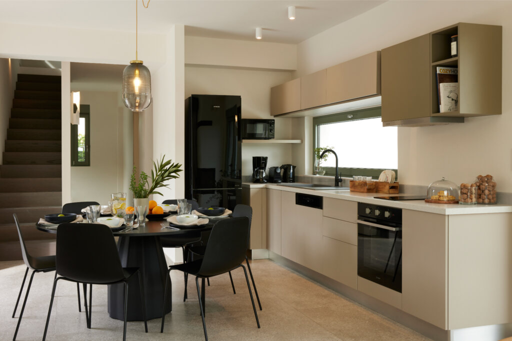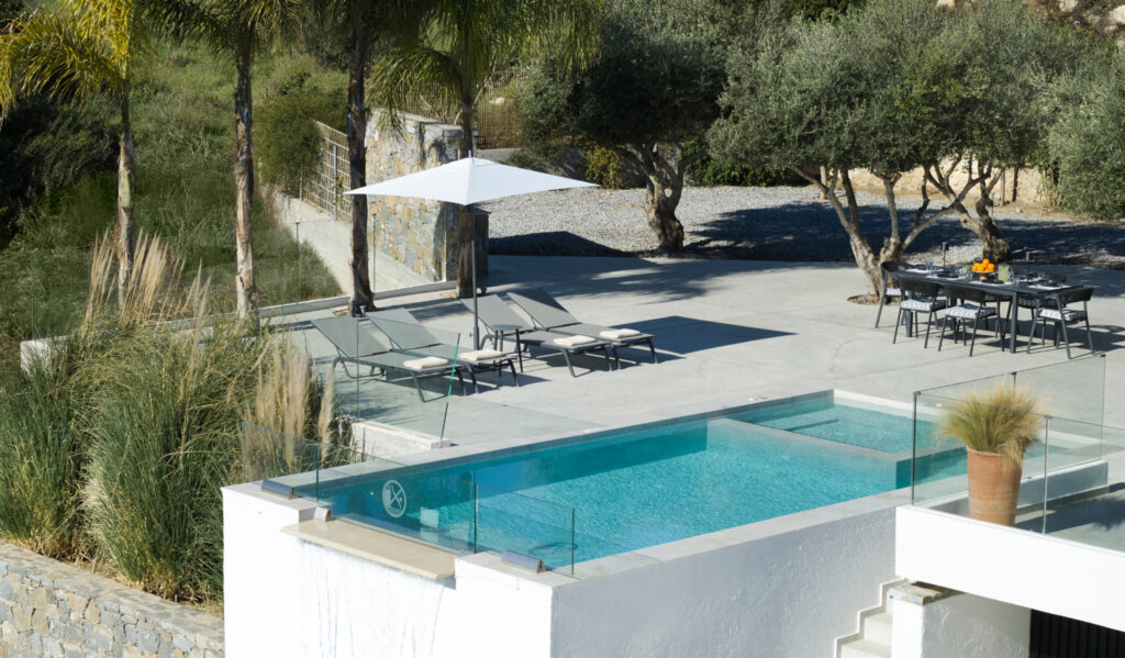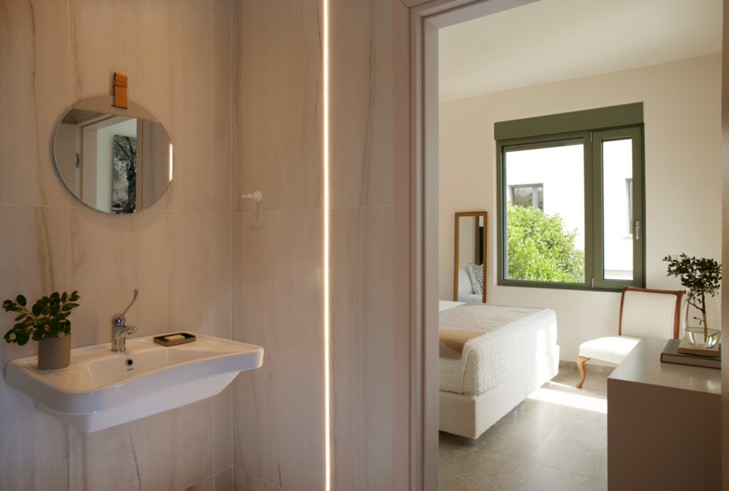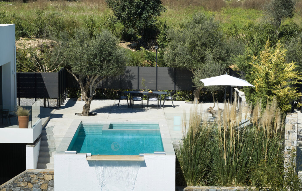 Arbora Olea Luxury Villas features three identical, elegantly designed villas in the peaceful area of Skaleta, near Rethymno in Crete. Moreover, the complex places the villas in a row within a private property. This layout ensures both independence and a shared sense of connection. Therefore, it suits large groups, families, or multiple parties who want privacy while staying close.