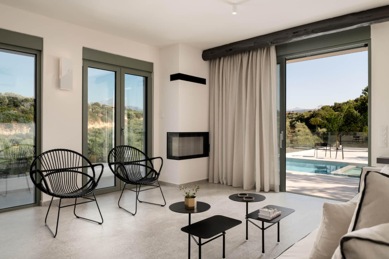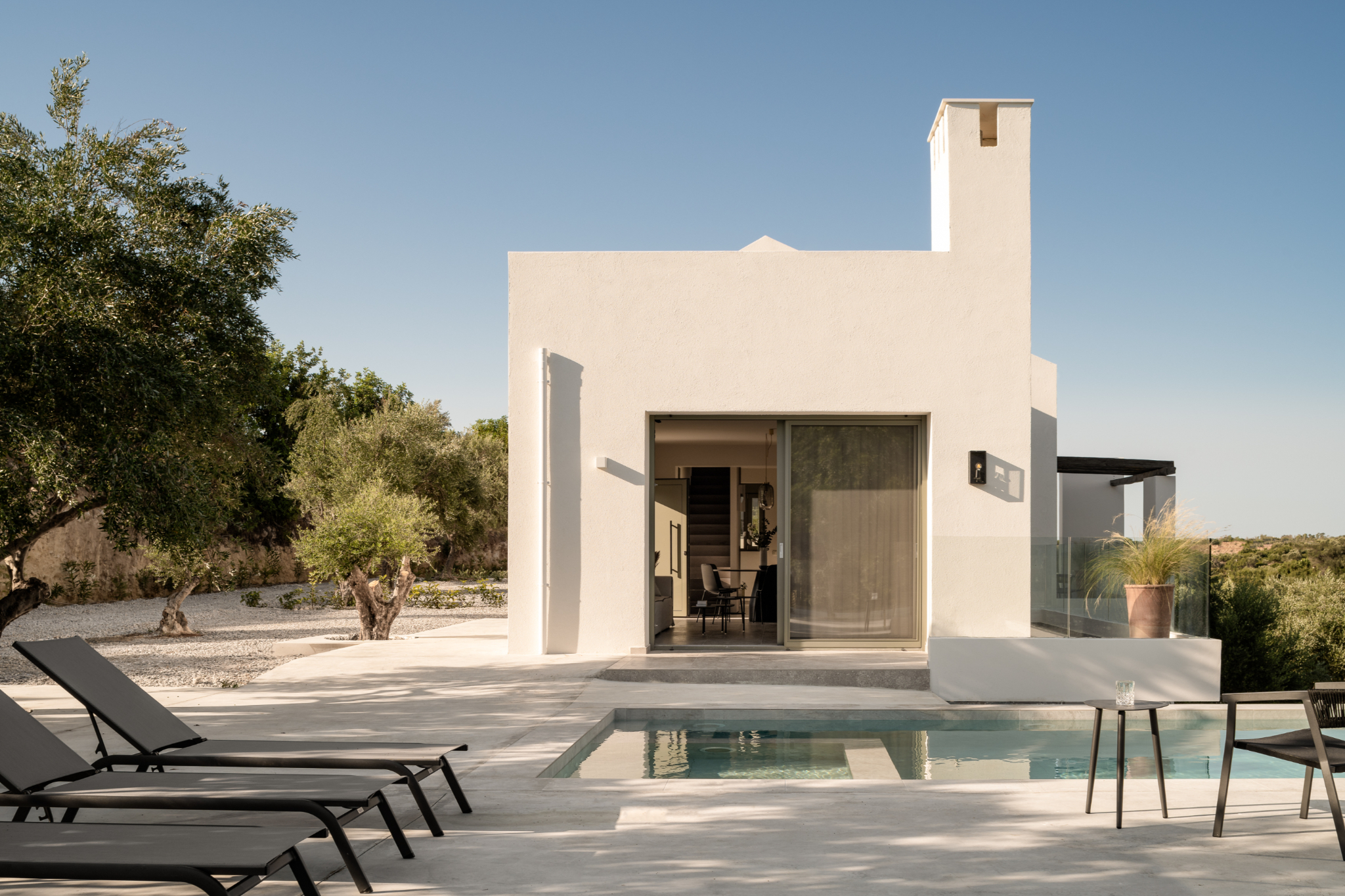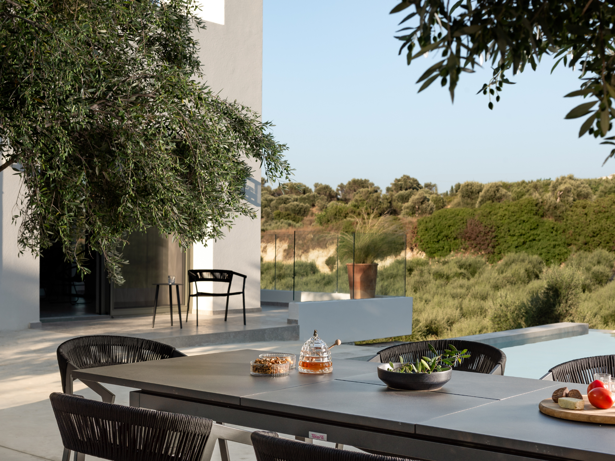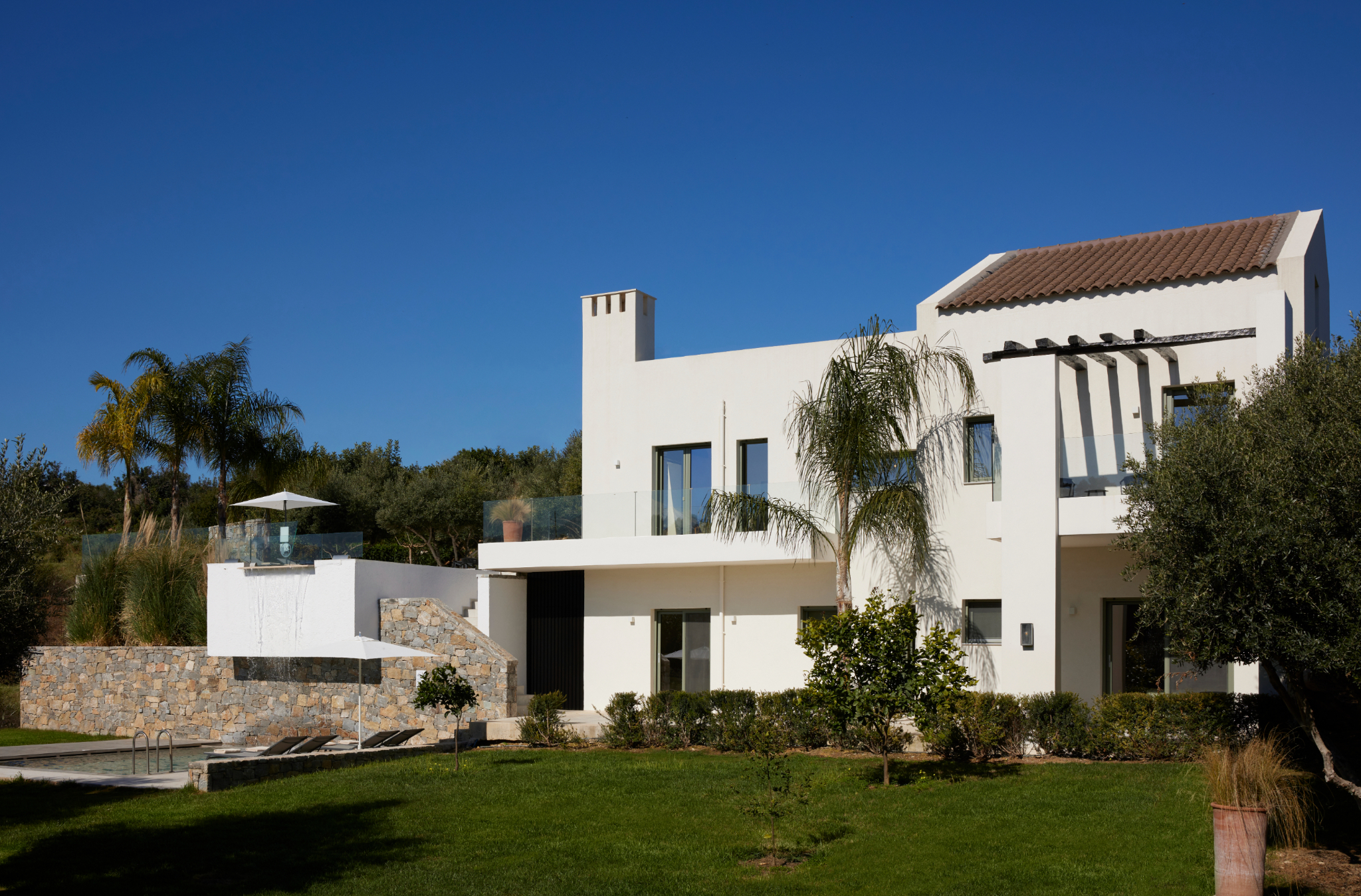 Arbora Olea Luxury Villas features three identical, elegantly designed villas in the peaceful area of Skaleta, near Rethymno in Crete. Moreover, the complex places the villas in a row within a private property. This layout ensures both independence and a shared sense of connection. Therefore, it suits large groups, families, or multiple parties who want privacy while staying close.