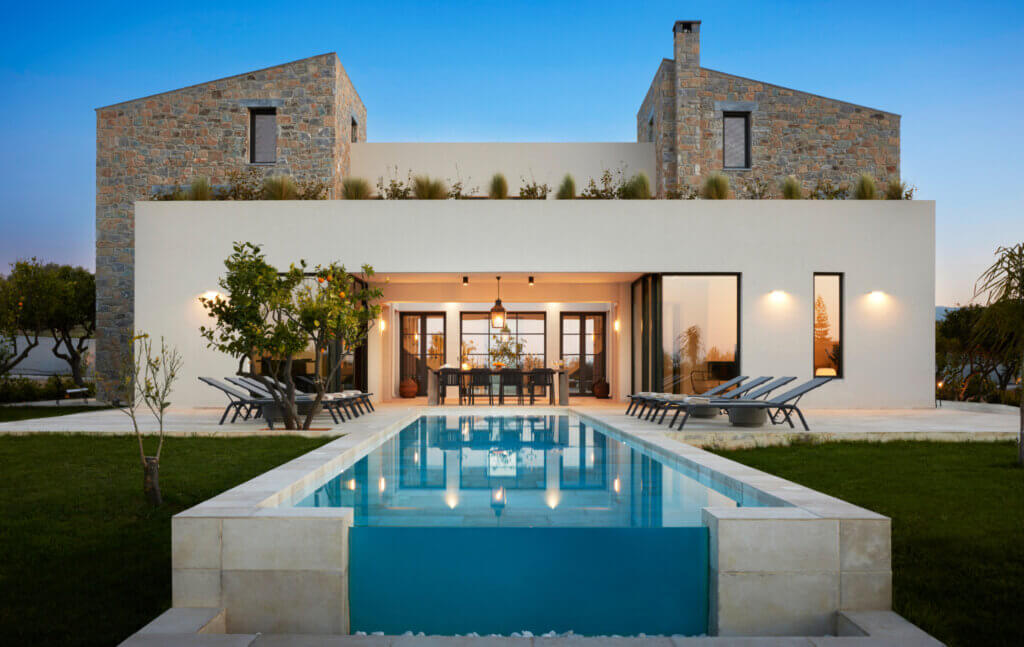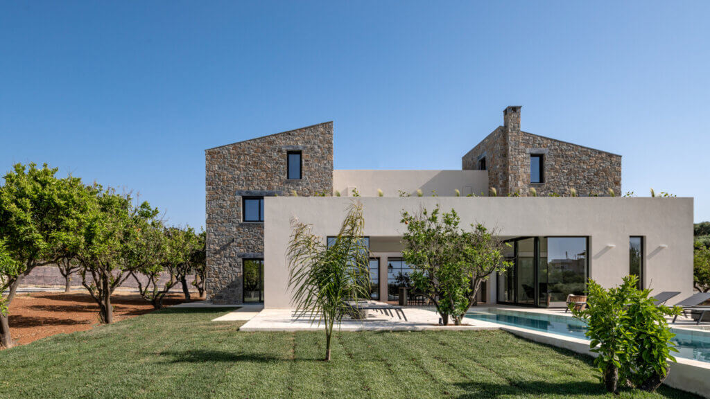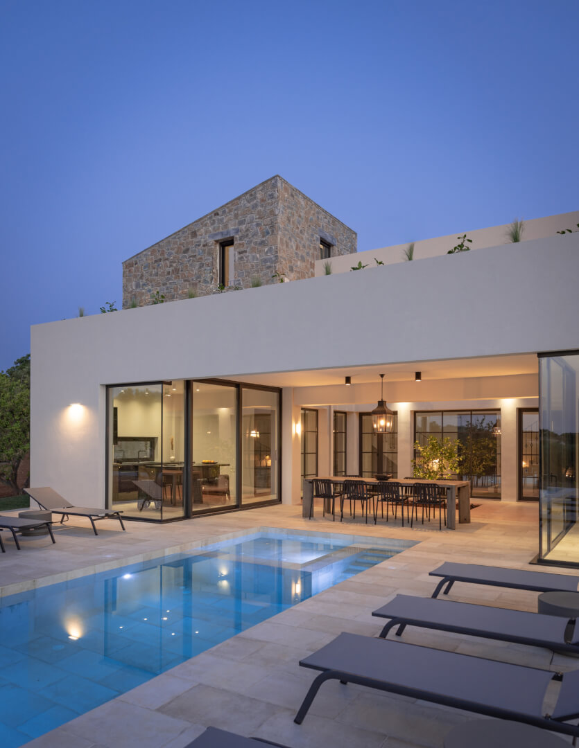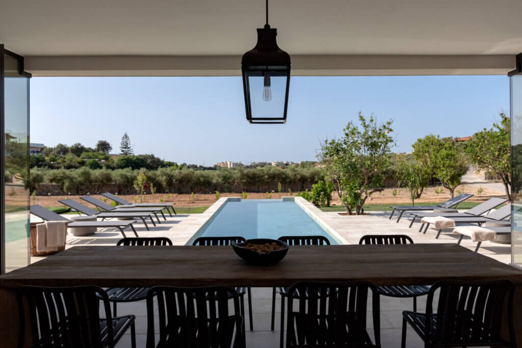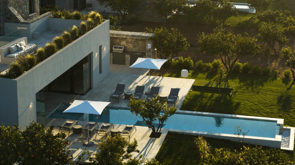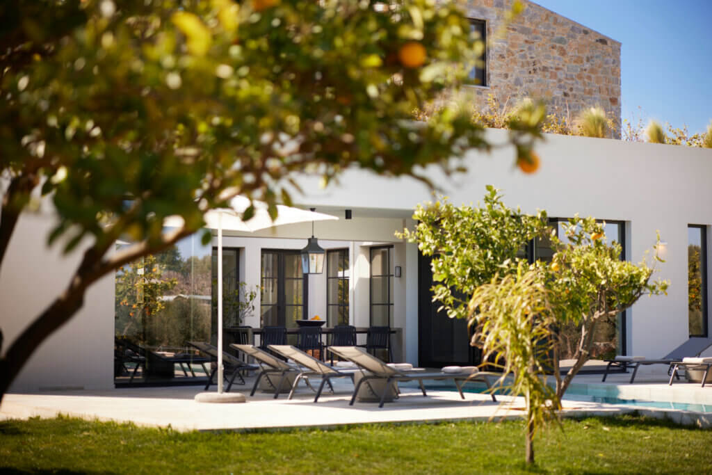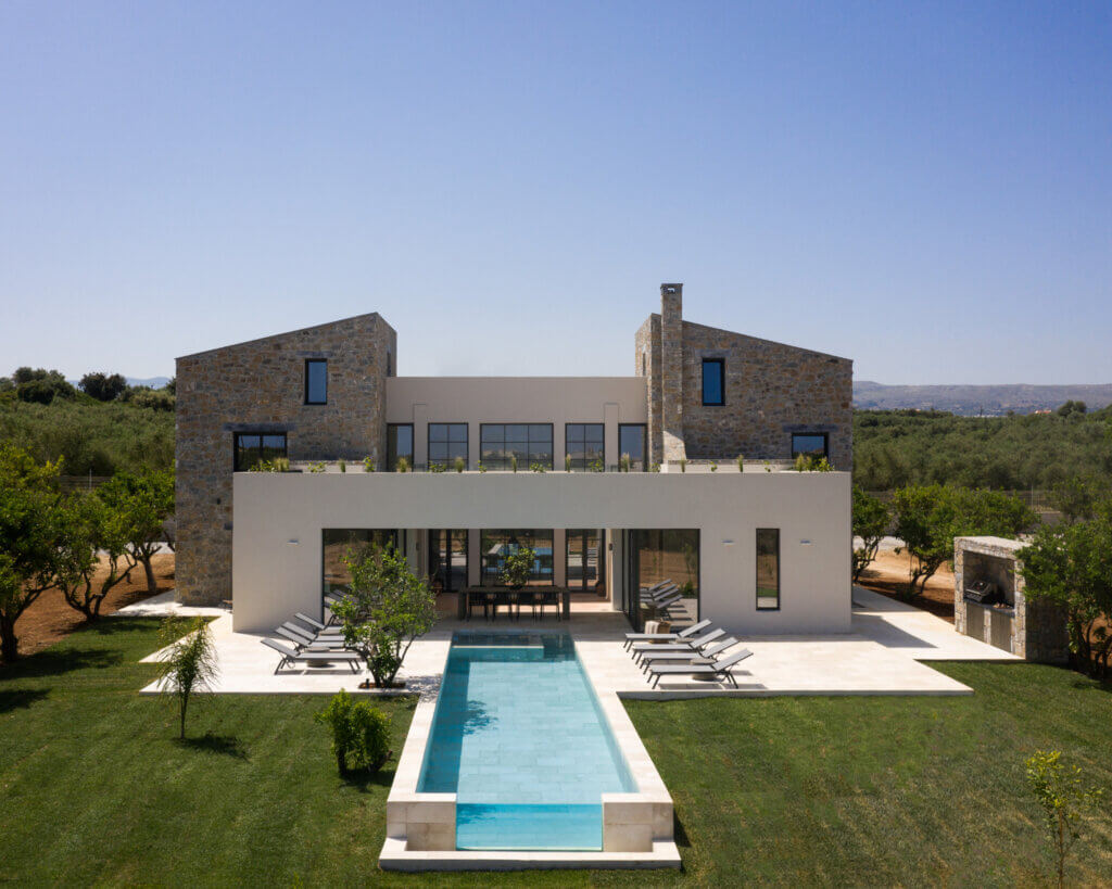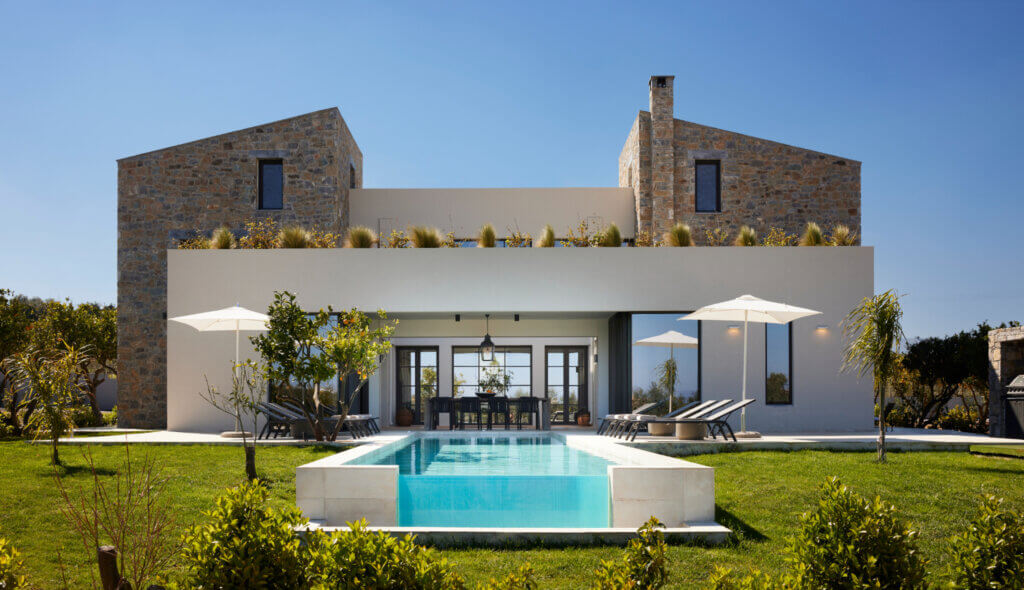 Citrus Grove Luxury Villas is a private complex of two identical, elegantly designed villas, located in Prinos near Rethymno, Crete. The villas sit within a gated estate, offering both privacy and a sense of connection. Therefore, the property suits families and groups who want to stay close while enjoying their own space.