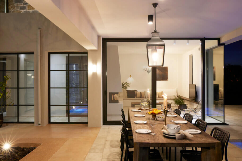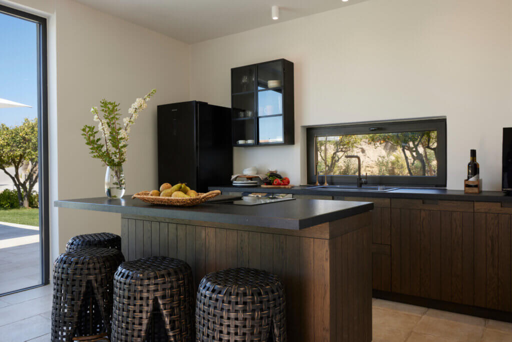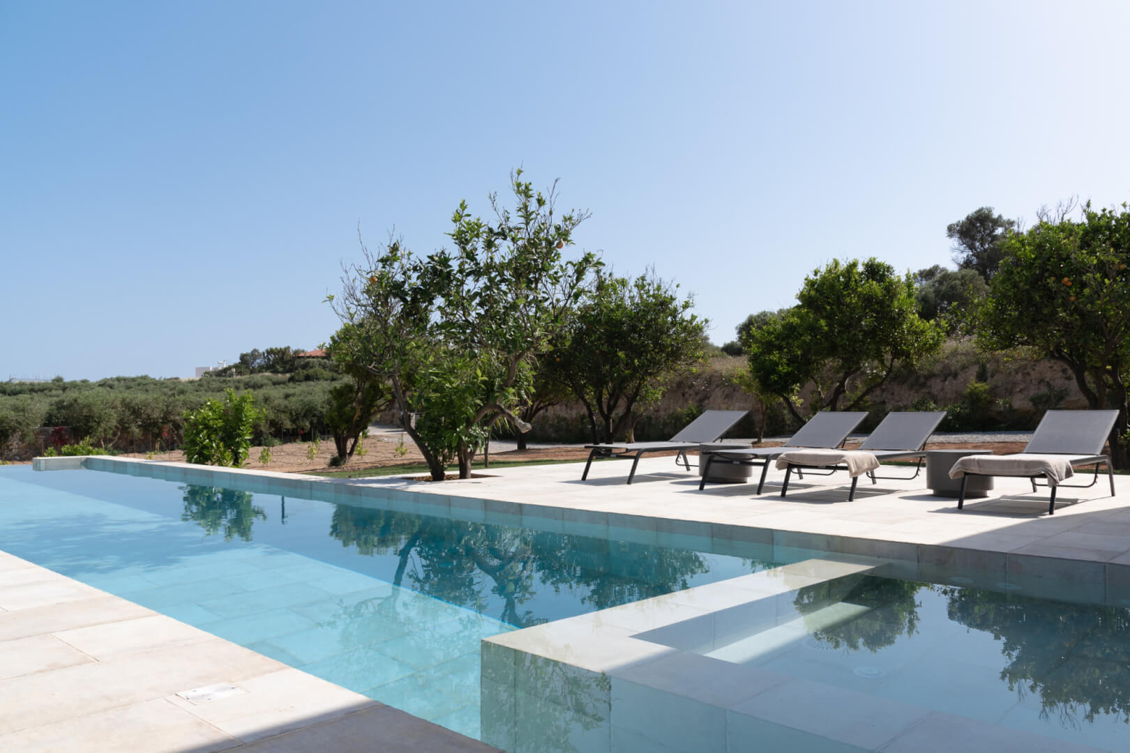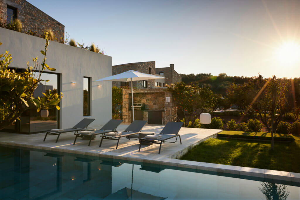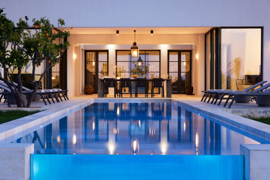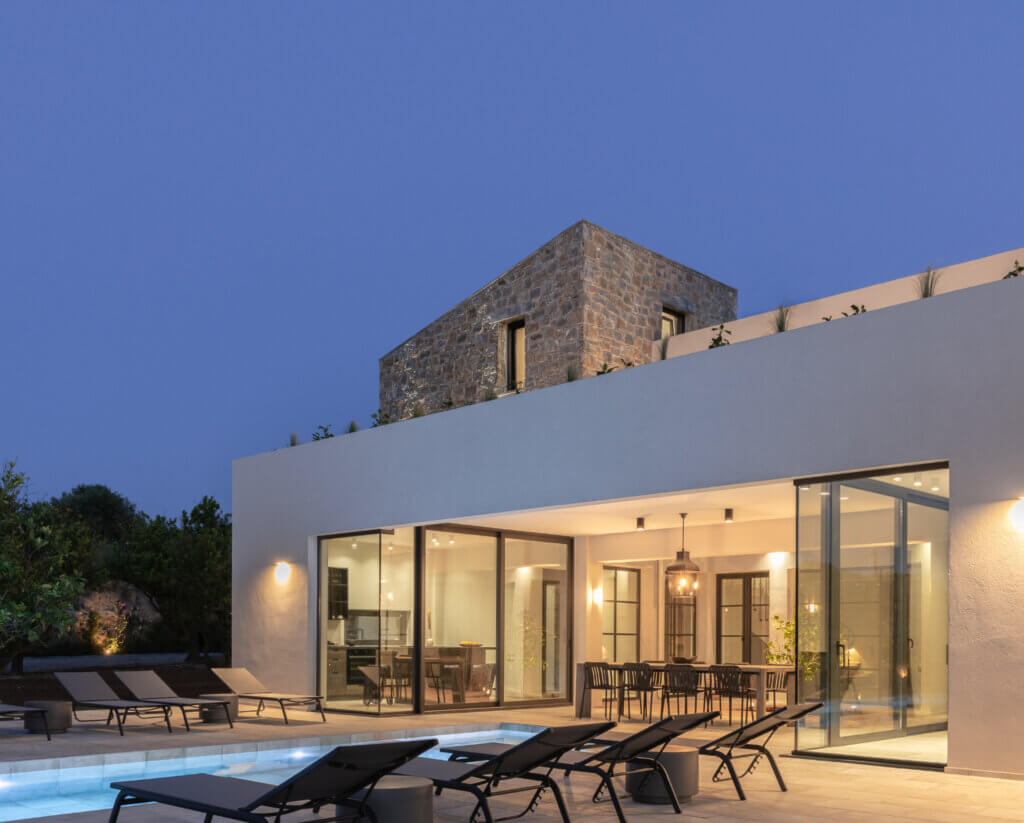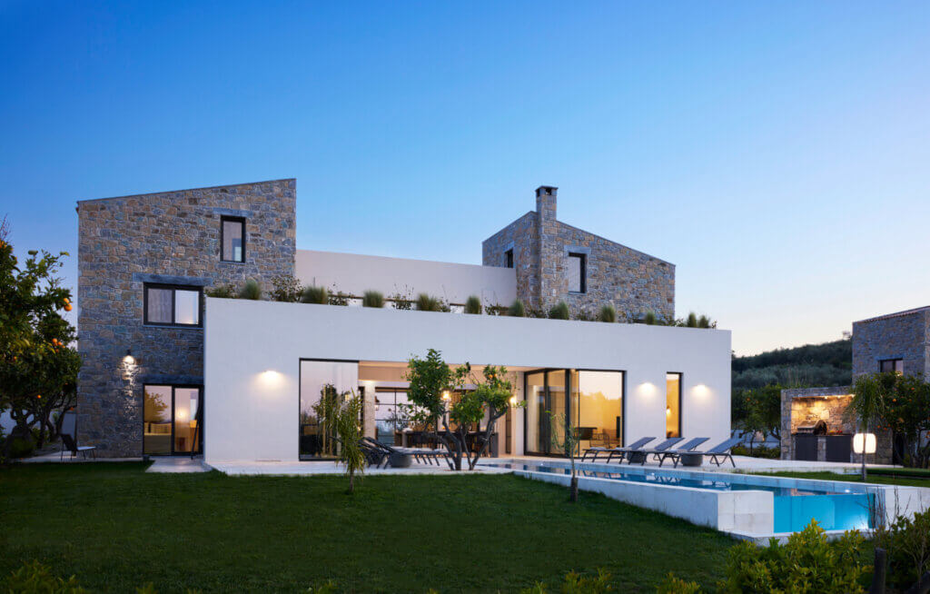 Citrus Grove Luxury Villas is a private complex of two identical, elegantly designed villas, located in Prinos near Rethymno, Crete. The villas sit within a gated estate, offering both privacy and a sense of connection. Therefore, the property suits families and groups who want to stay close while enjoying their own space.