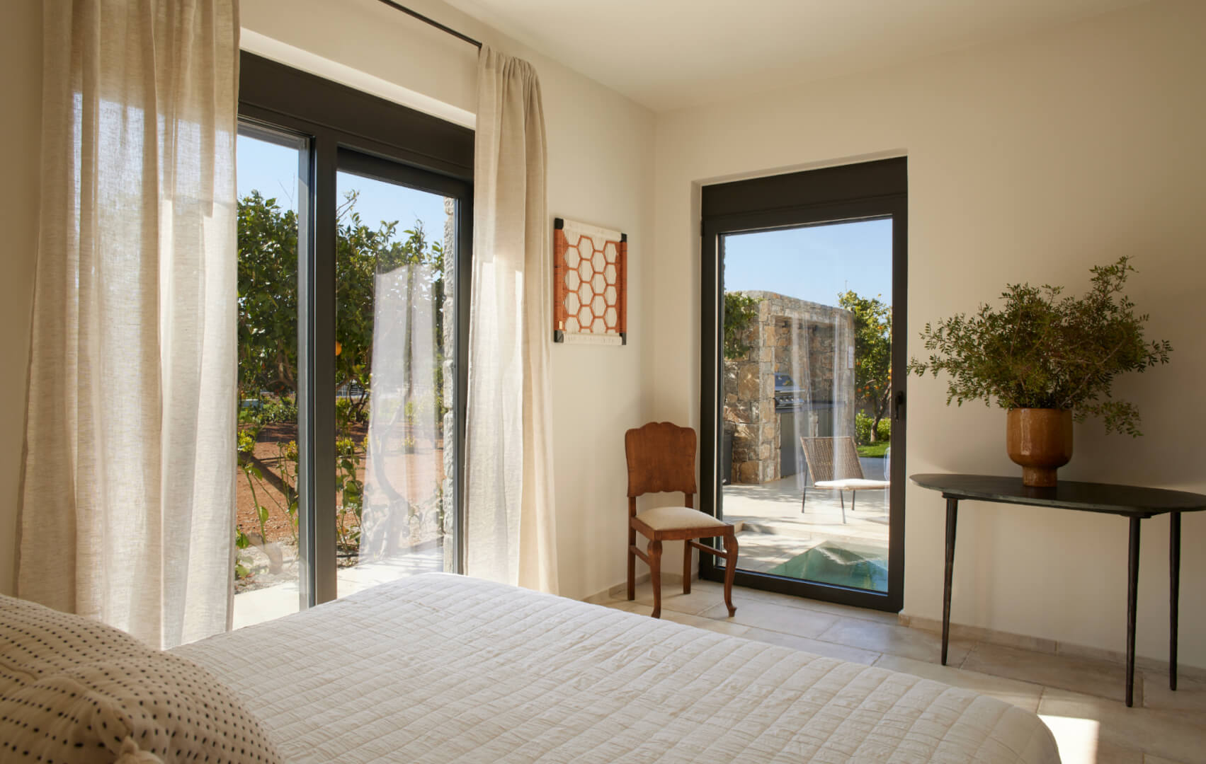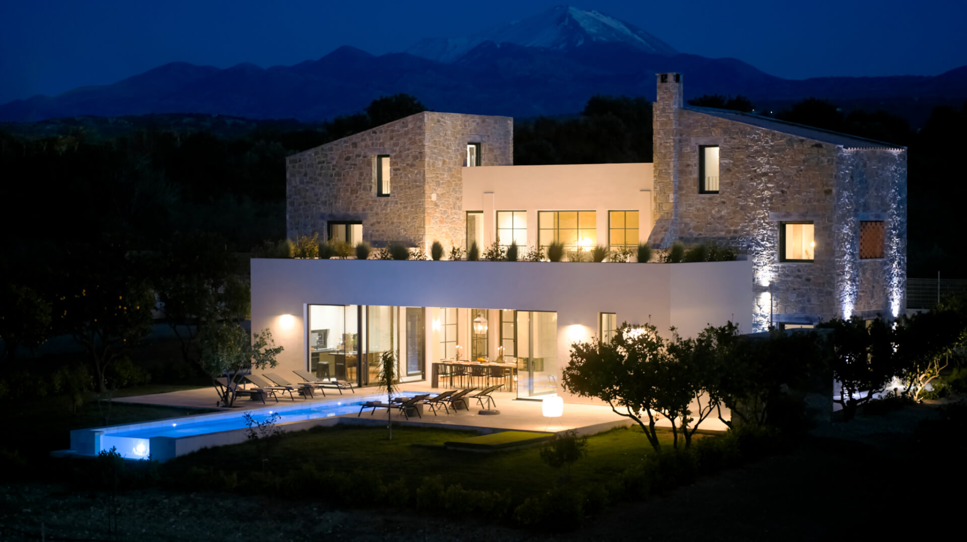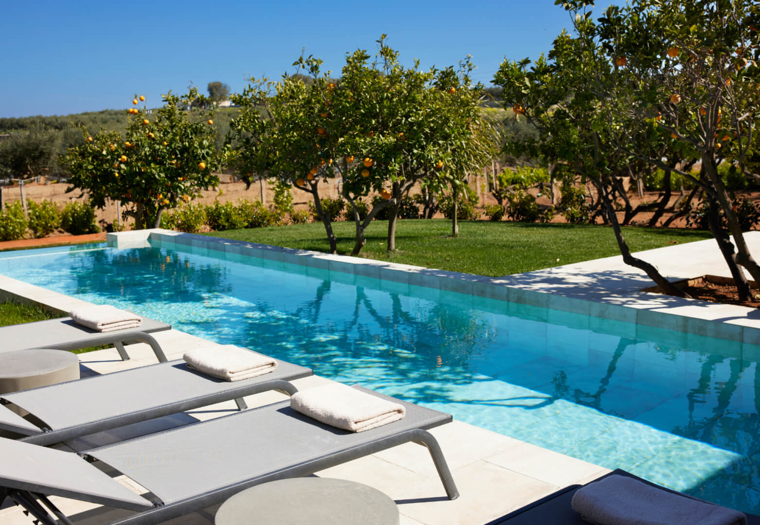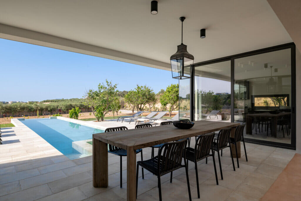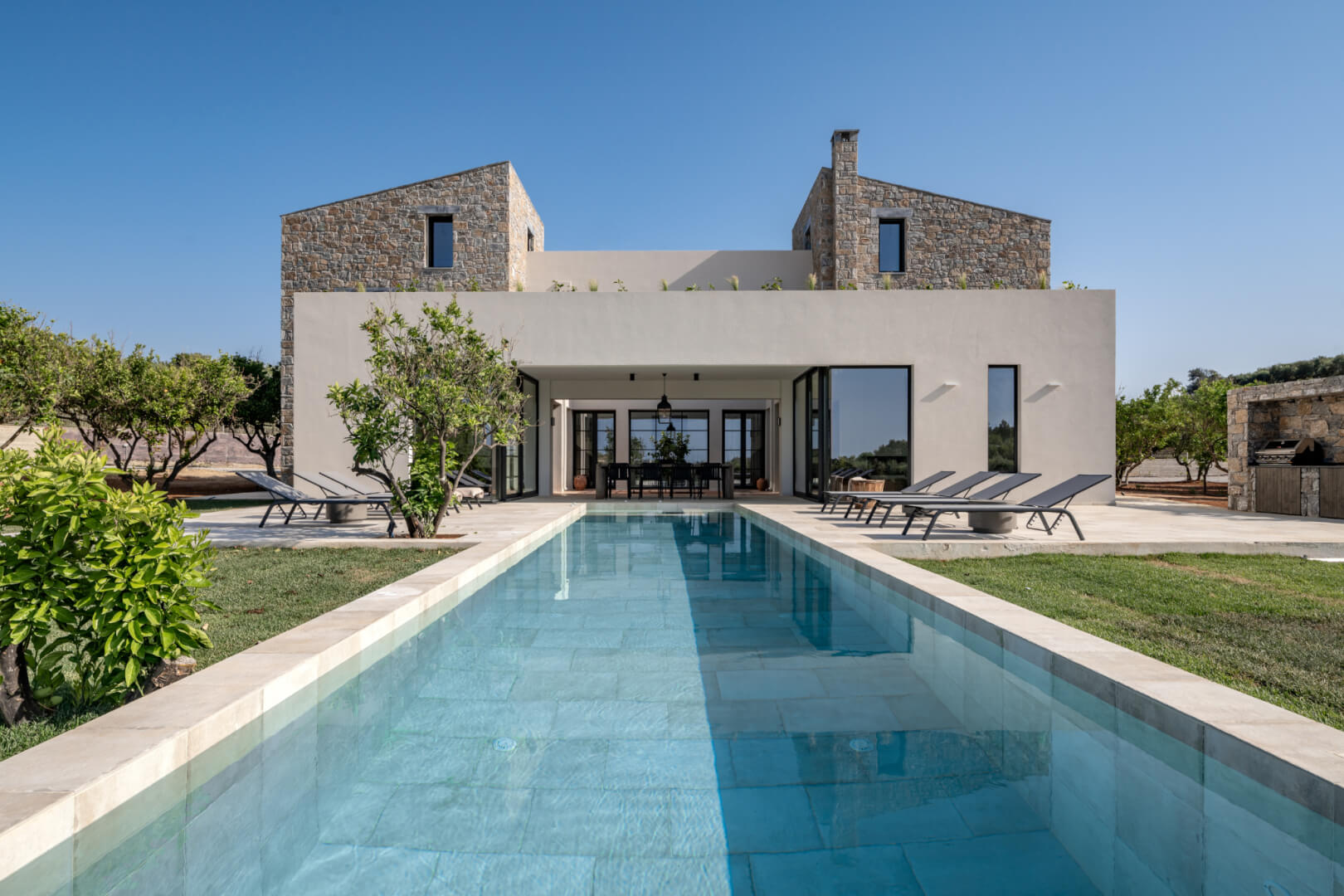 Citrus Grove Luxury Villas is a private complex of two identical, elegantly designed villas, located in Prinos near Rethymno, Crete. The villas sit within a gated estate, offering both privacy and a sense of connection. Therefore, the property suits families and groups who want to stay close while enjoying their own space.