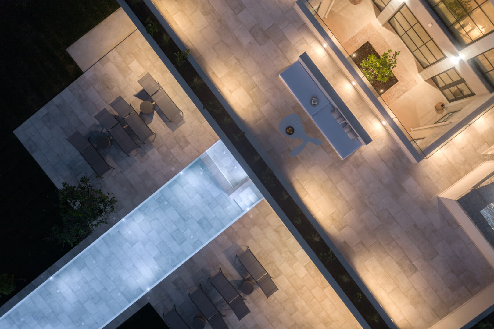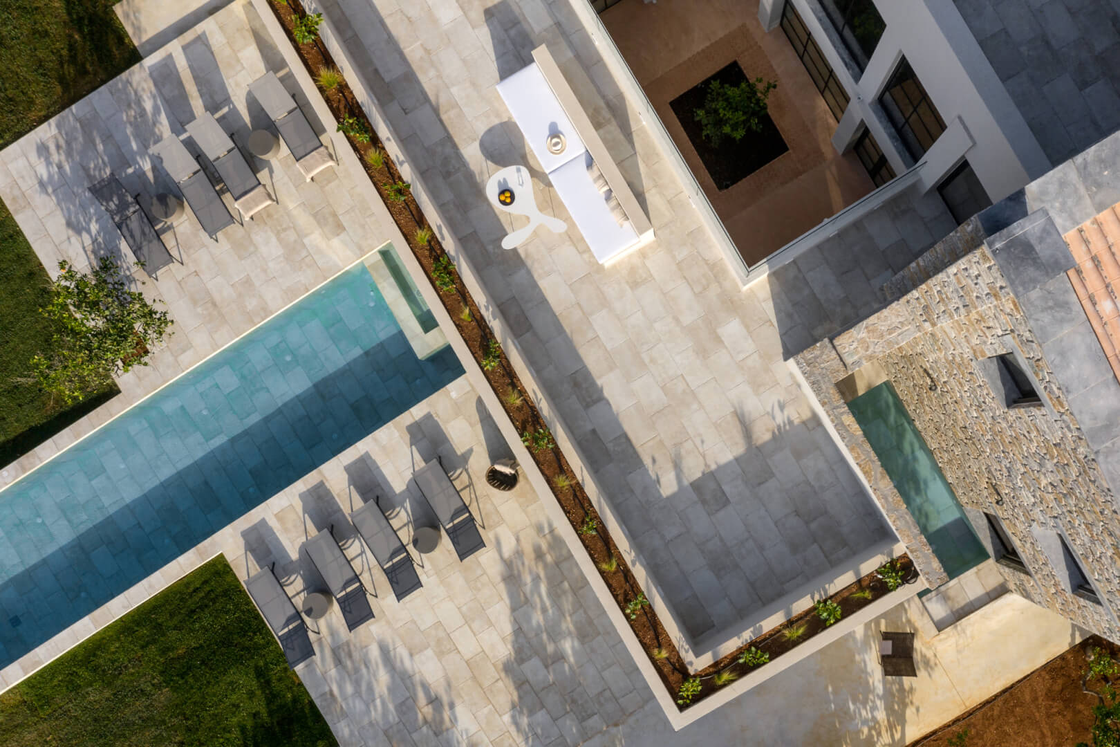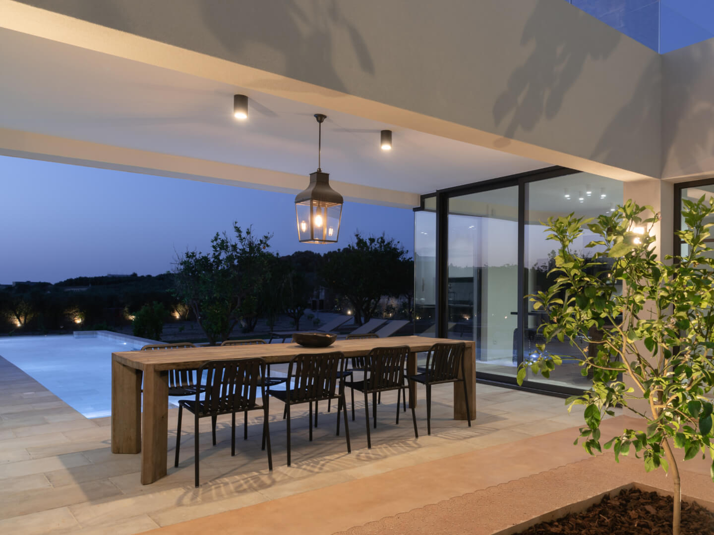 At the entrance, guests arrive at Lemon Tree Villa and Orange Tree Villa, placed for easy access and comfort. Each villa covers 210 sqm and combines modern style with practical design. As a result, guests enjoy a relaxed and welcoming atmosphere throughout their stay.
