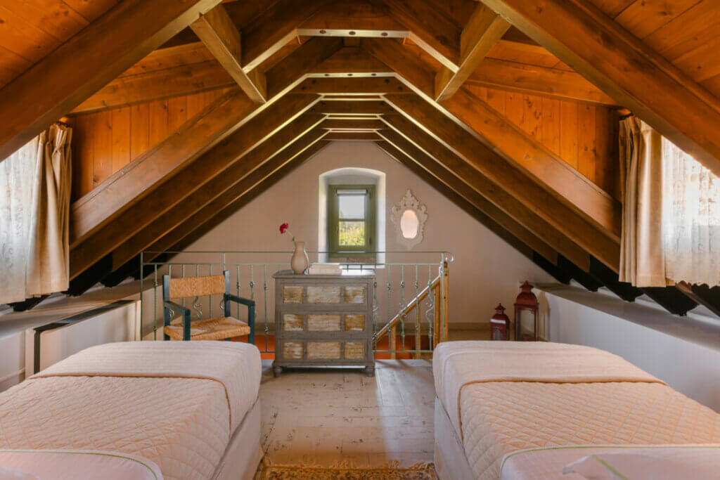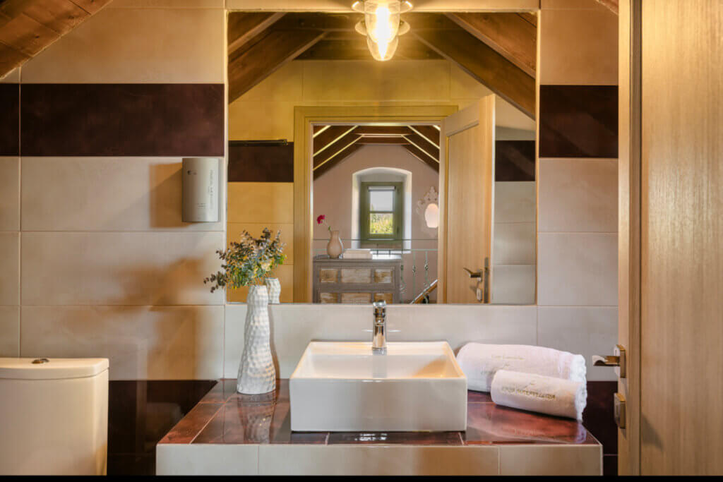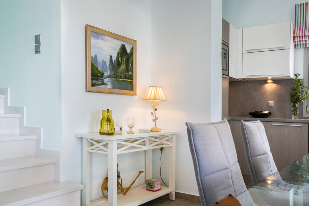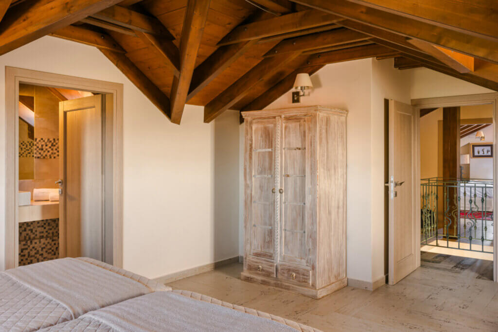 The complex includes four elegant villas—Orion, Seirios, Afrodite, and Pleiades. Each villa is approximately 110 m², built across two levels, and accommodates up to six guests (seven in Orion). They offer 2–3 comfortable bedrooms, cozy living areas, and sofa beds for extra space, making them ideal for families or small groups who value both togetherness and privacy.