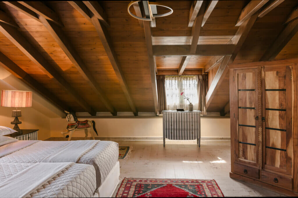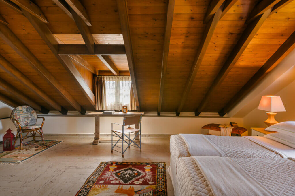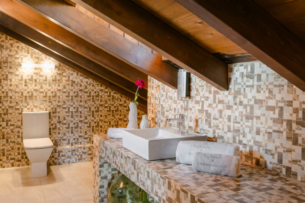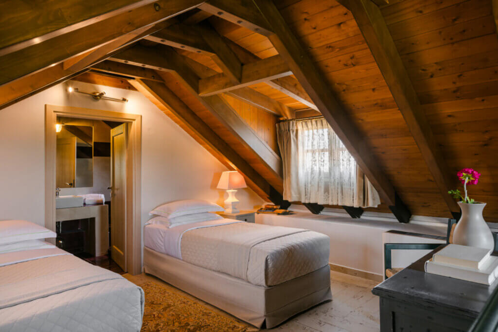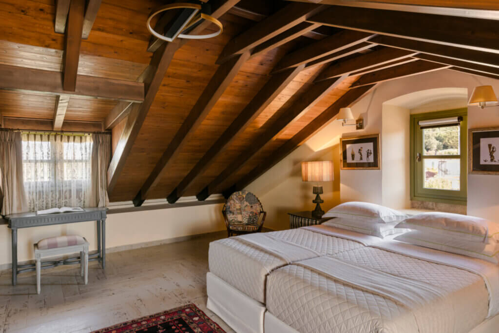 The complex includes four elegant villas—Orion, Seirios, Afrodite, and Pleiades. Each villa is approximately 110 m², built across two levels, and accommodates up to six guests (seven in Orion). They offer 2–3 comfortable bedrooms, cozy living areas, and sofa beds for extra space, making them ideal for families or small groups who value both togetherness and privacy.