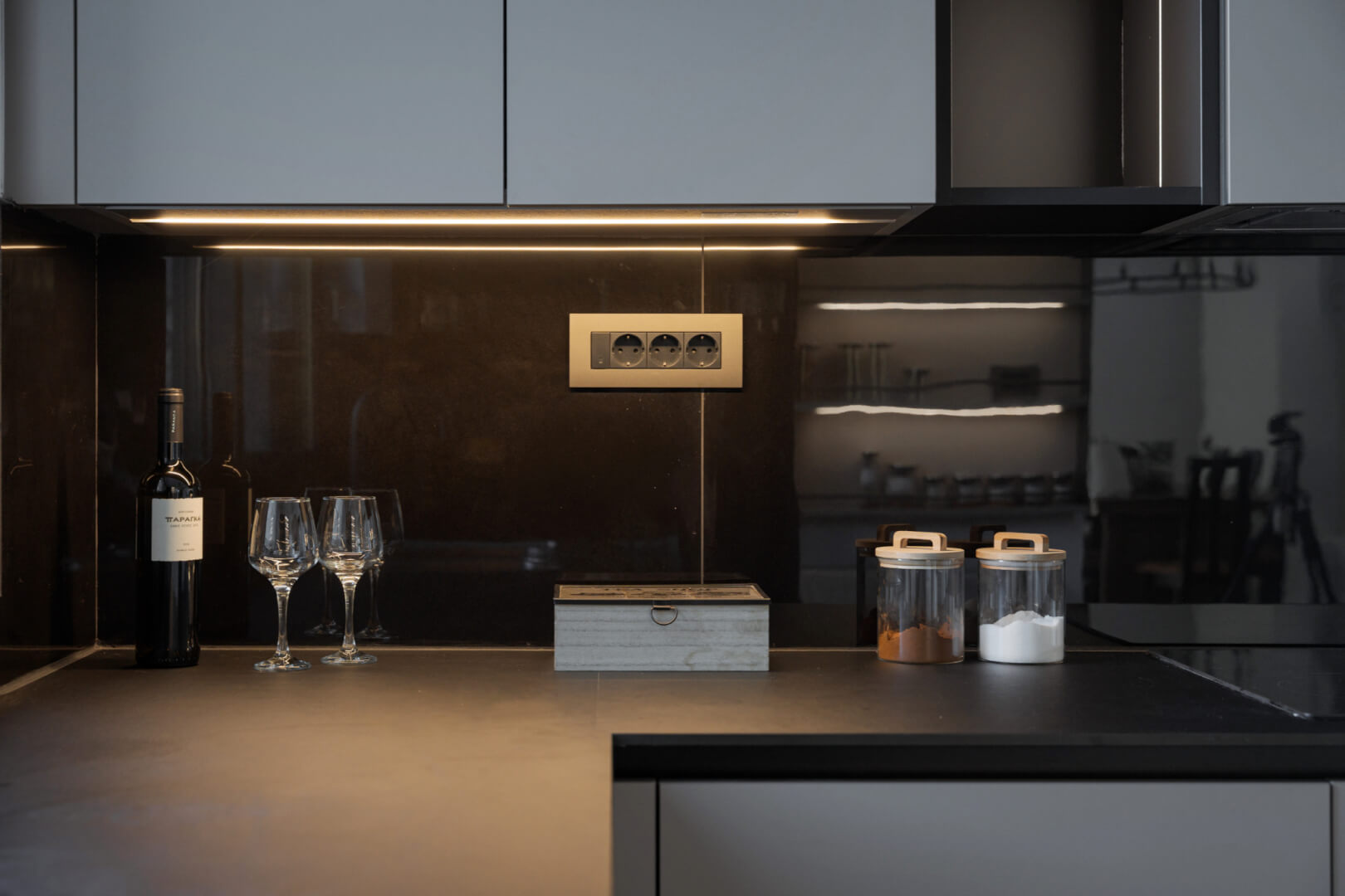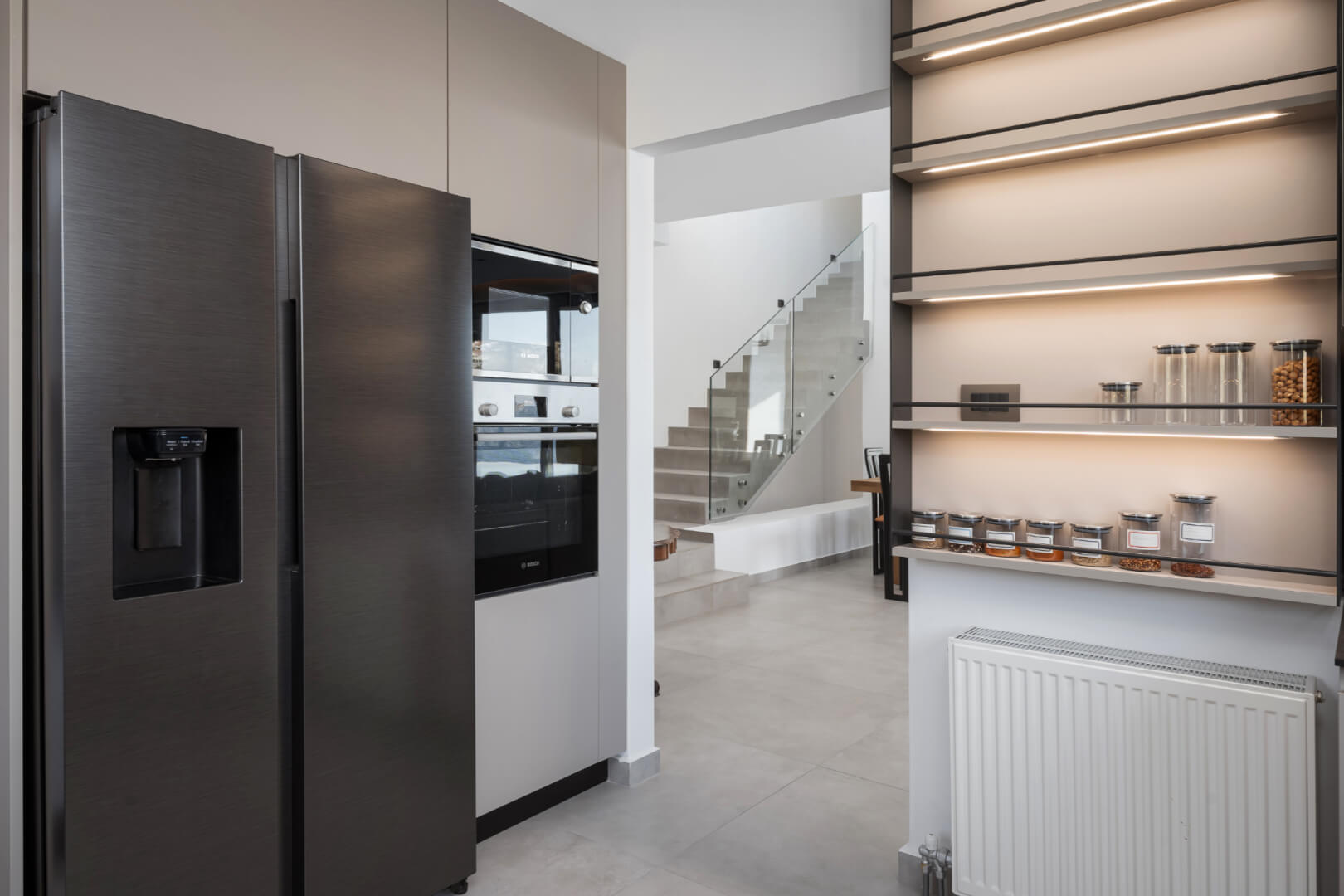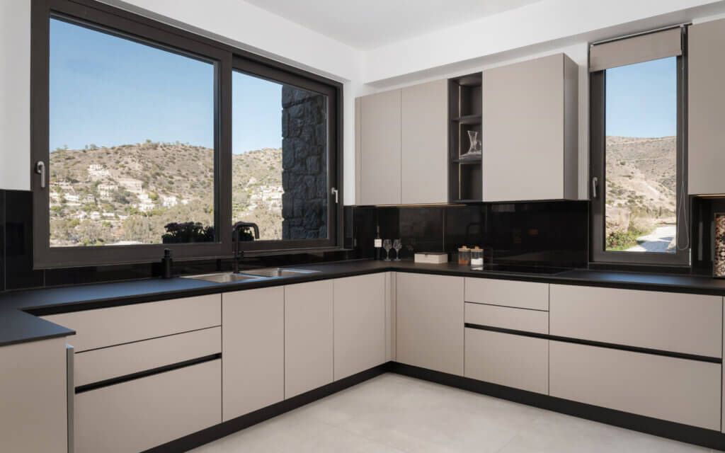 A fully equipped kitchen allows guests to prepare meals with ease, whether enjoying an intimate breakfast indoors or a sunset dinner on the terrace.