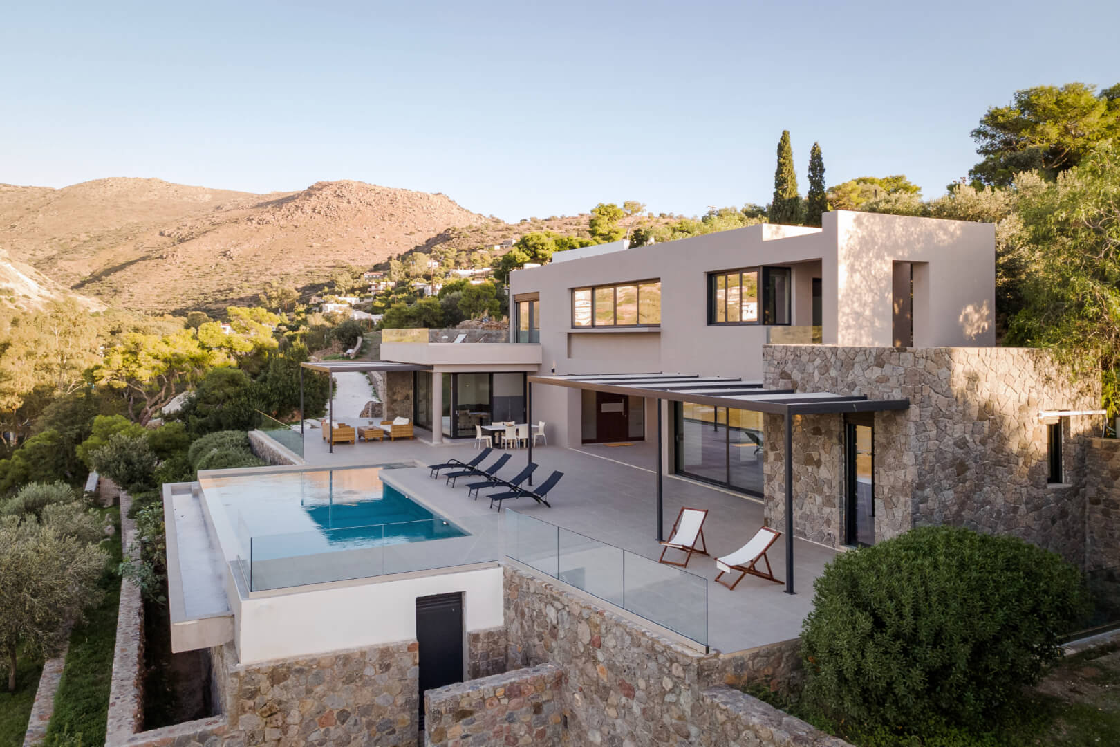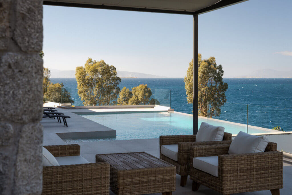 Villa Iris Aegina has a serene atmosphere, contemporary design, and seamless indoor–outdoor flow, the villa is the perfect retreat for guests seeking privacy, elegance, and authentic island living.