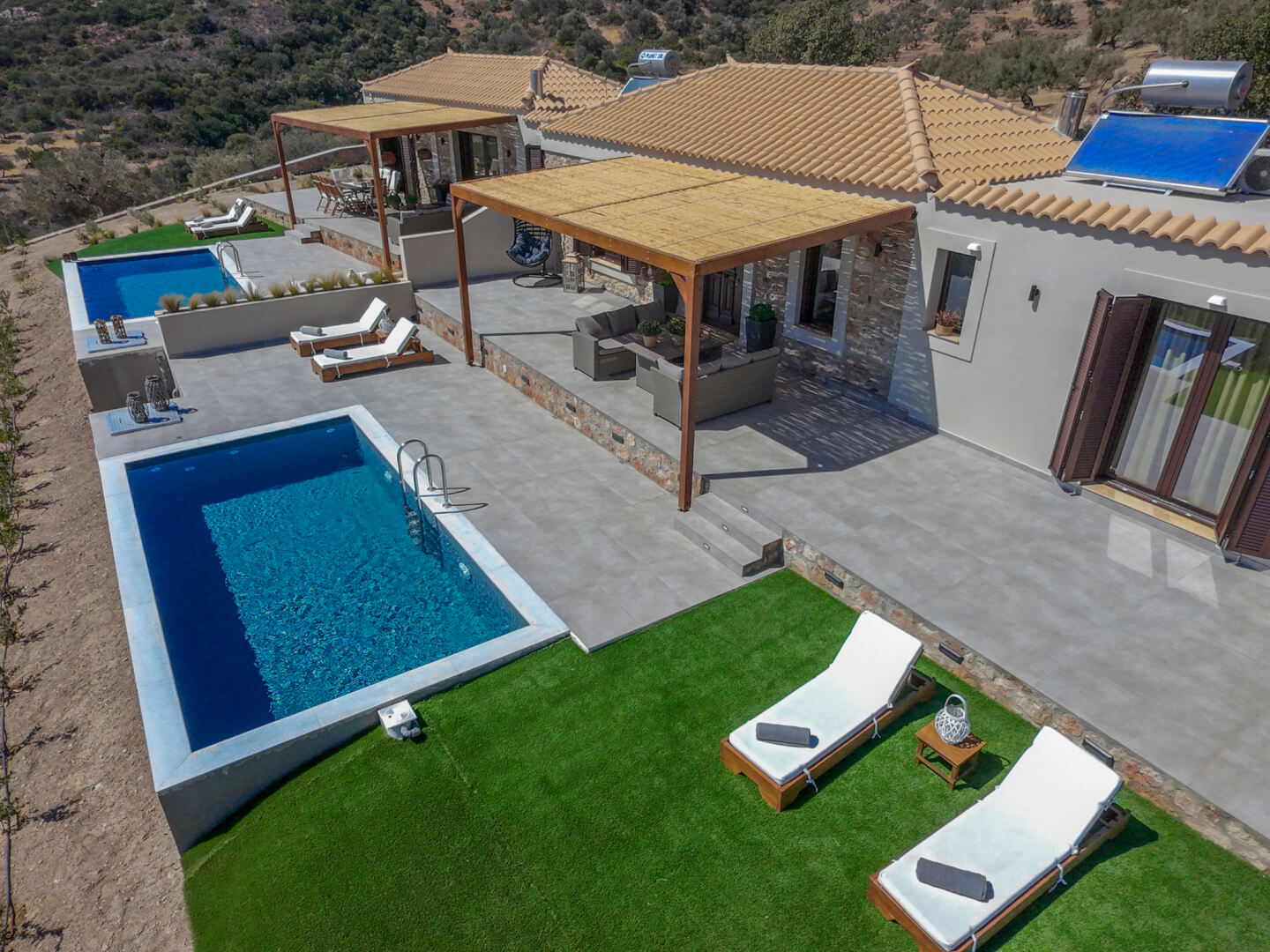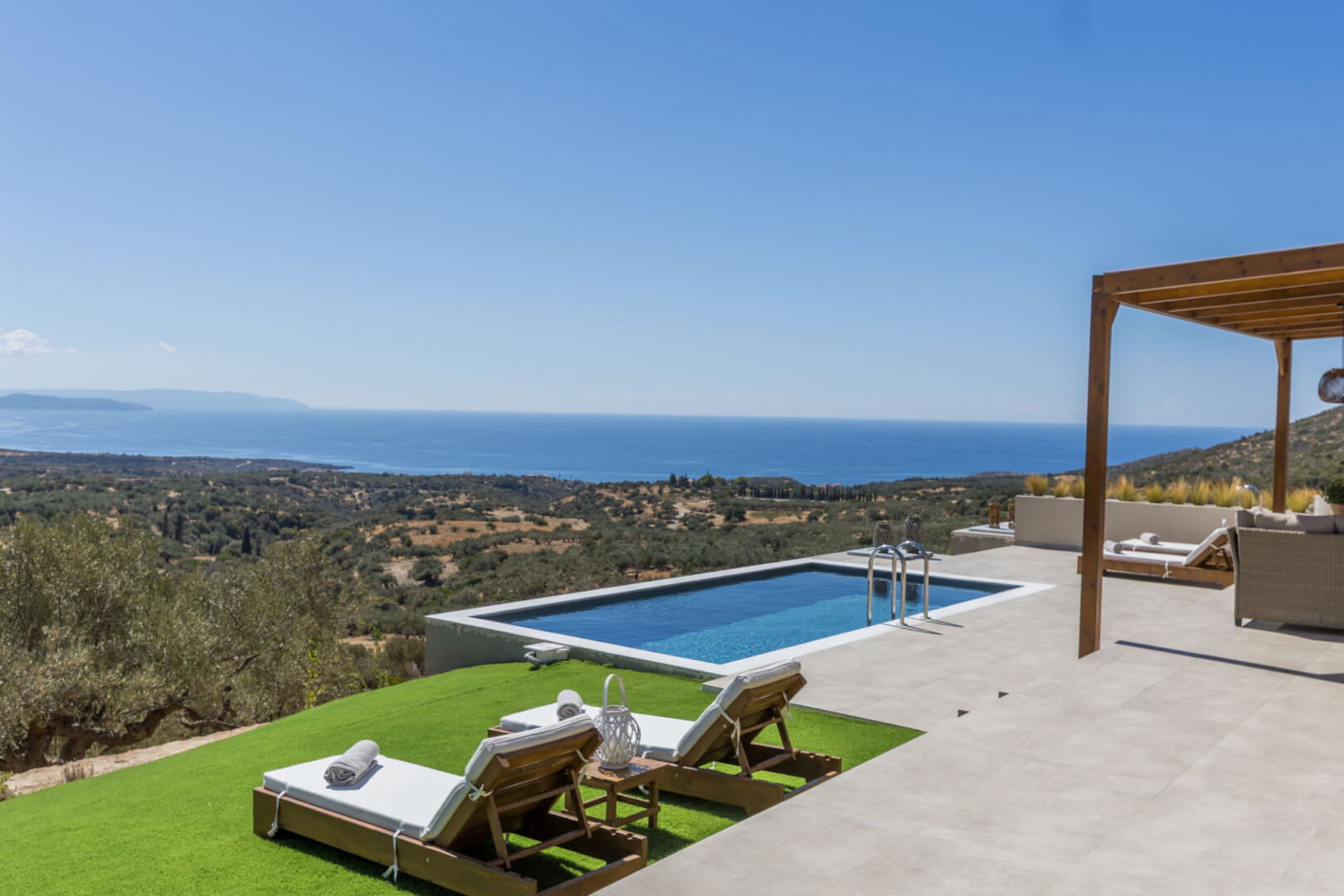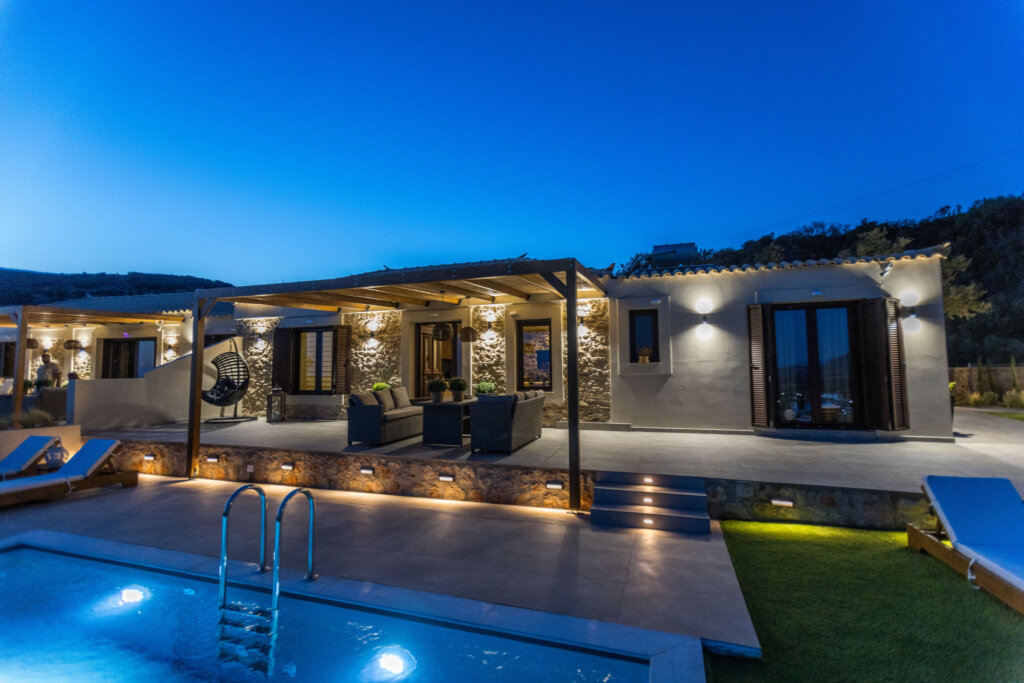 Thanks to its elevated position, the villa delivers privacy and calm from the very first moment. At the same time, the surrounding landscape enhances the sense of escape, making it an ideal choice for a relaxing stay in southern Greece.