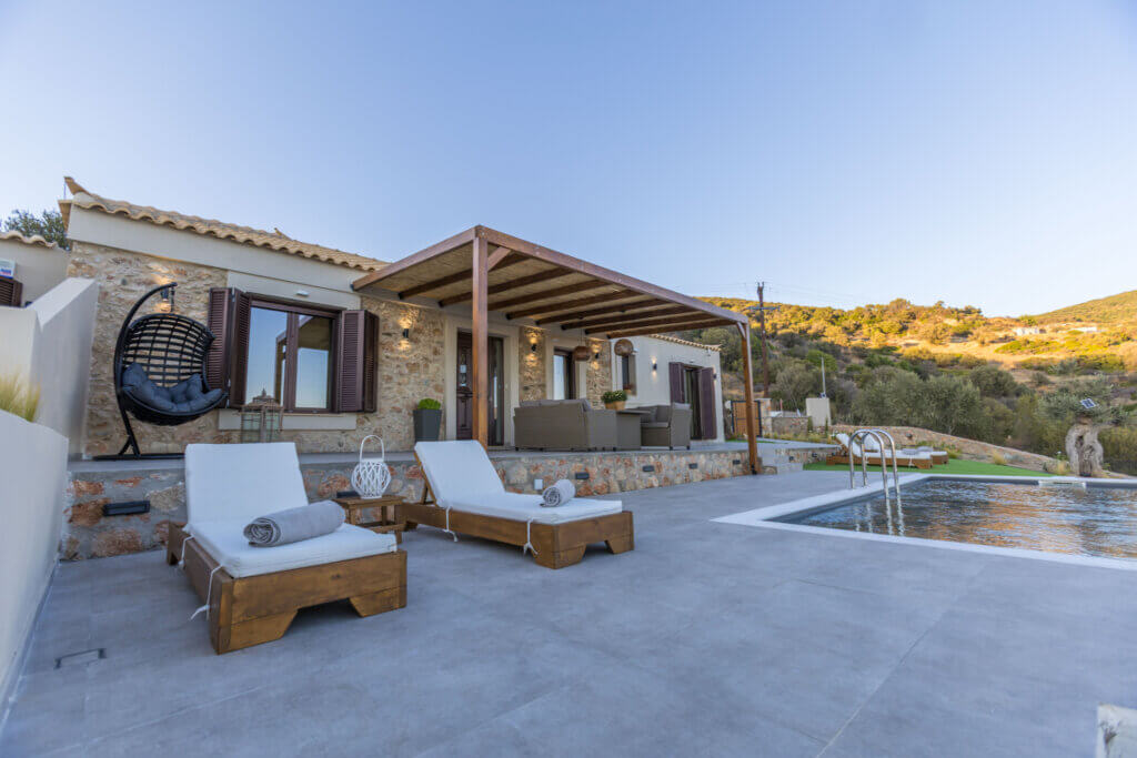 In summary, Elithea Villa One combines modern amenities with a serene hillside location and generous outdoor spaces. It is ideal for families, couples, or small groups seeking a sea-view villa with a private pool in Peloponnese, offering comfort, privacy, and beautiful natural surroundings.