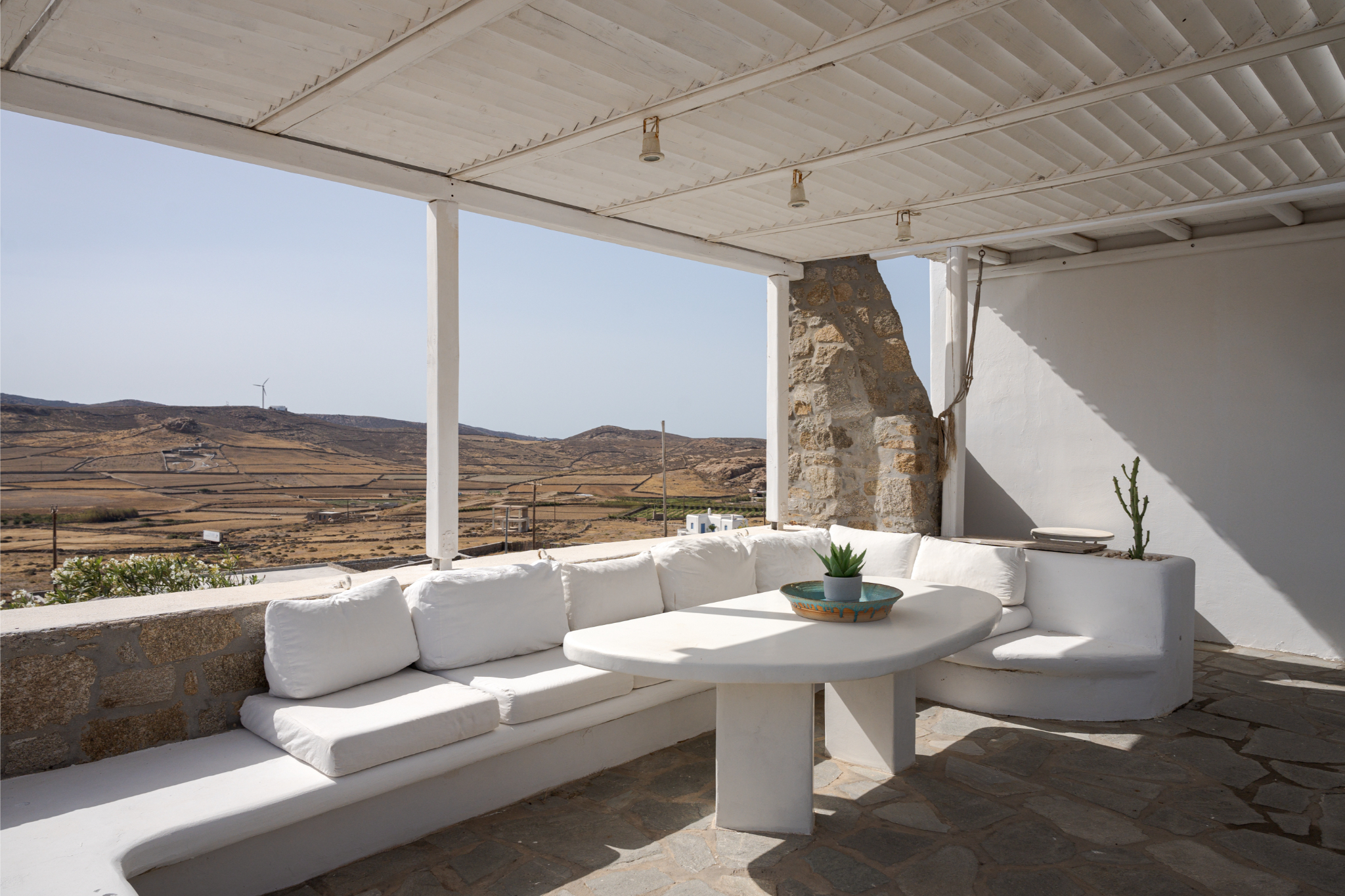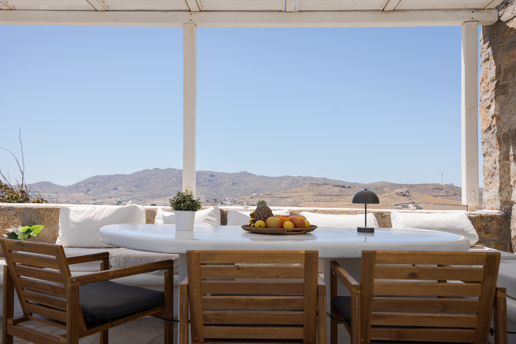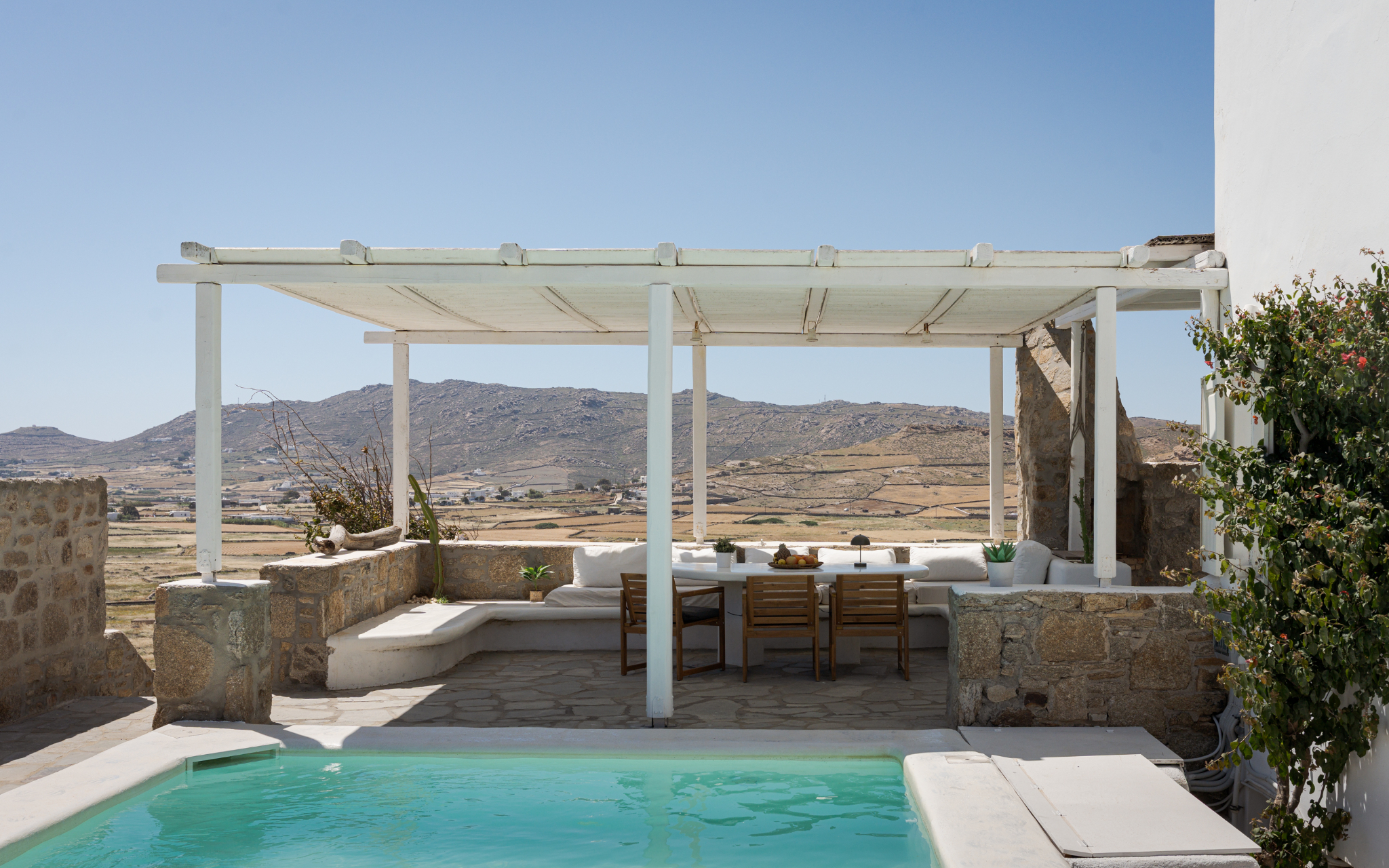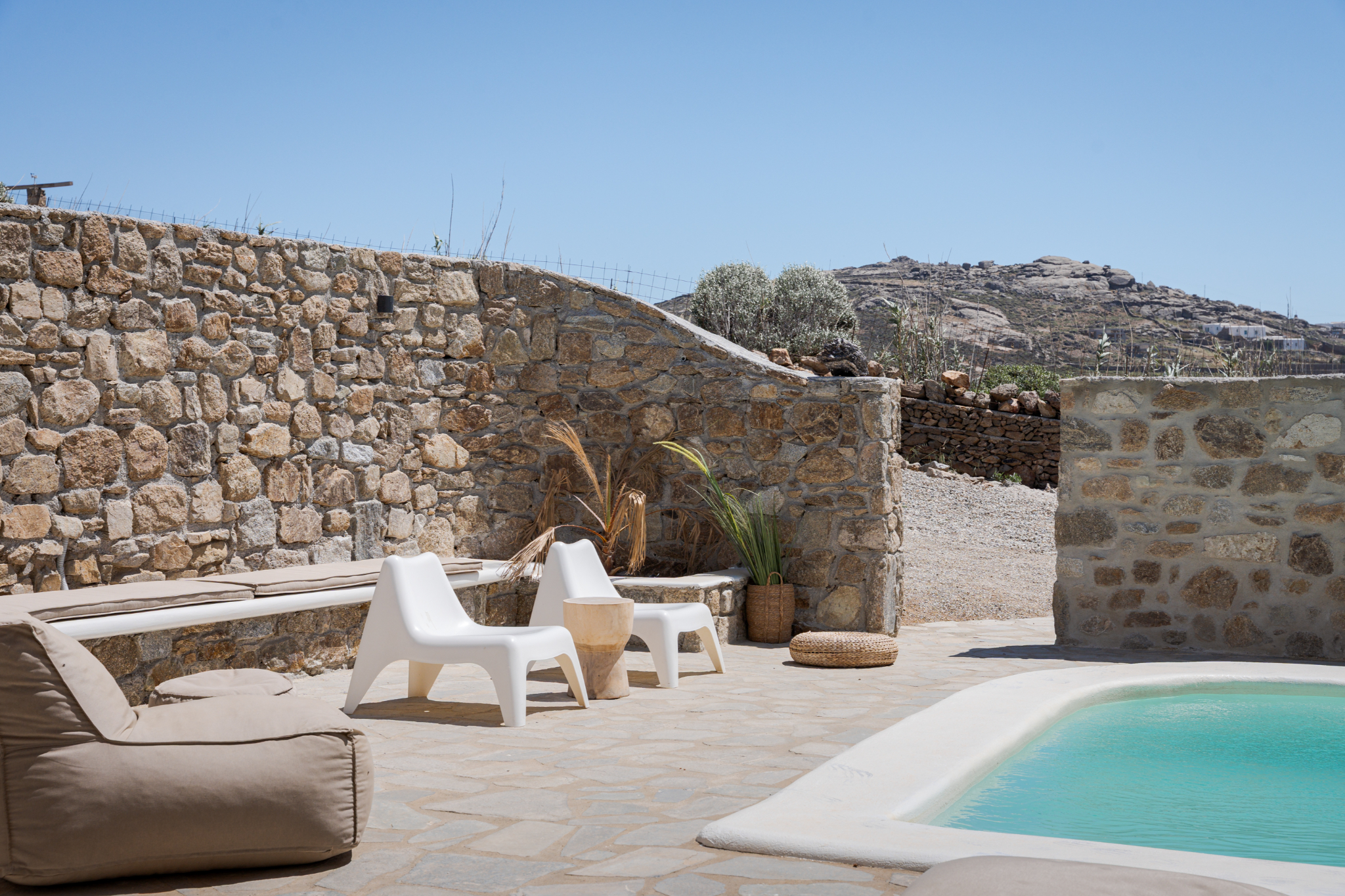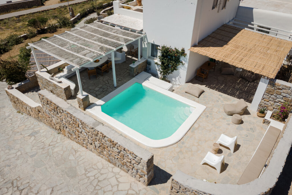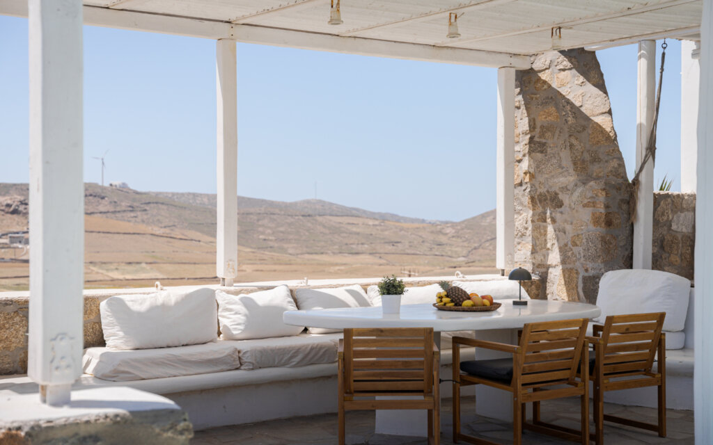 Guests can bask in the tranquility of the mountain views from various vantage points within the villa, creating a peaceful and picturesque atmosphere. Whether lounging by the pool, dining on the terrace, or enjoying the spacious indoor areas, Lea Villa 1 Mykonos promises an unforgettable and relaxing vacation experience on the enchanting island of Mykonos. This villa is perfect for families or groups seeking a comfortable and luxurious retreat with the charm and elegance of Mediterranean living.