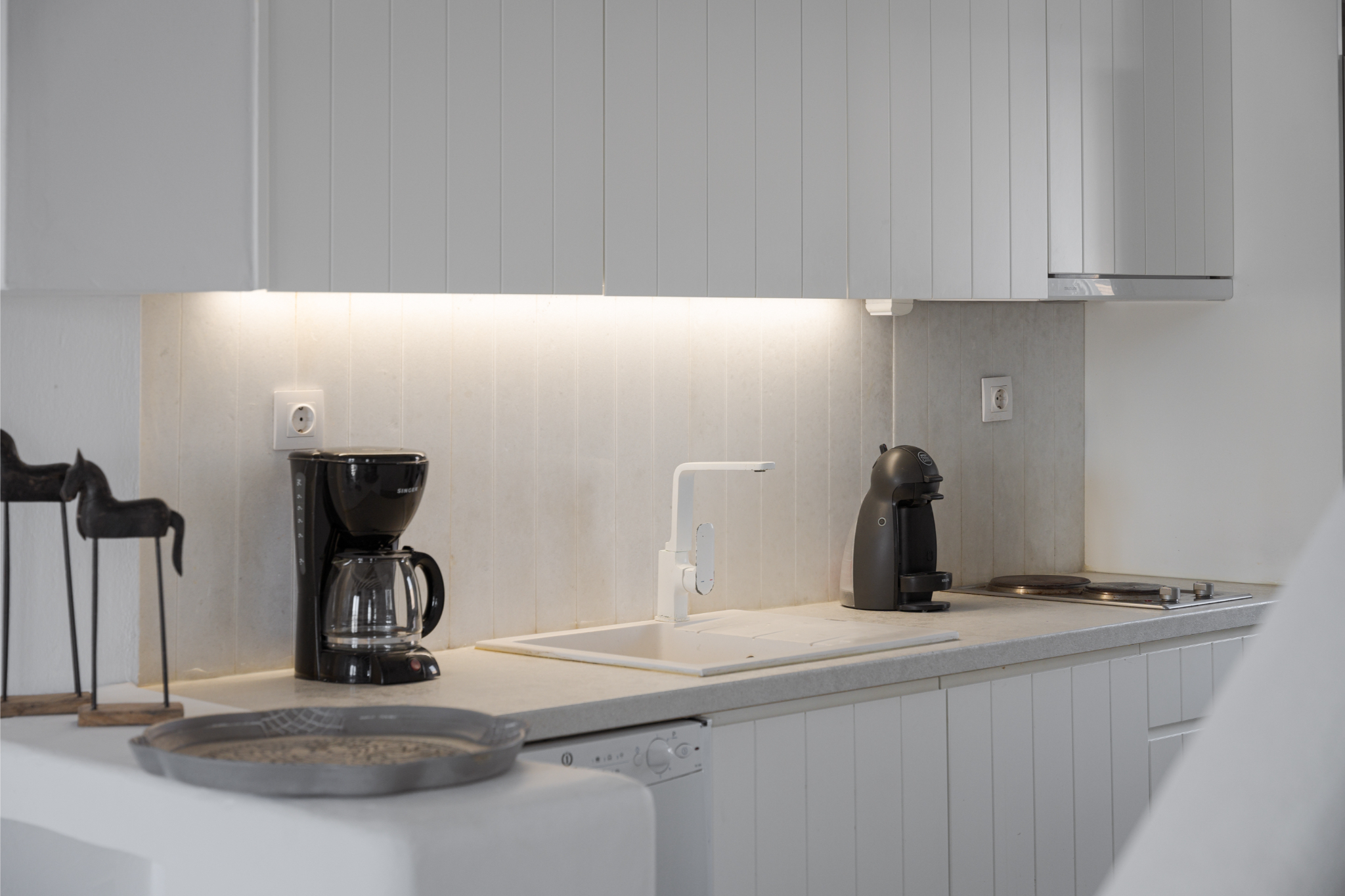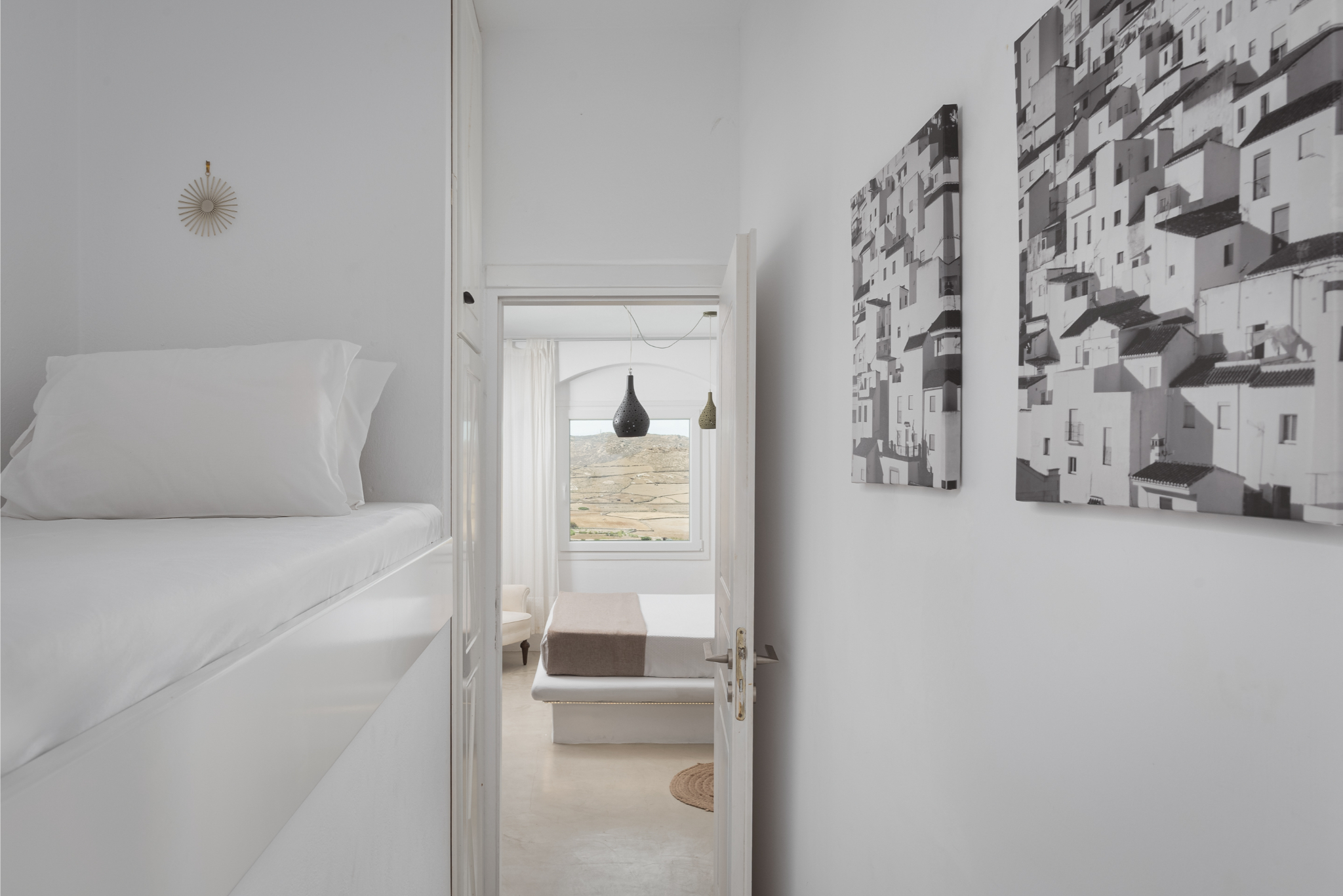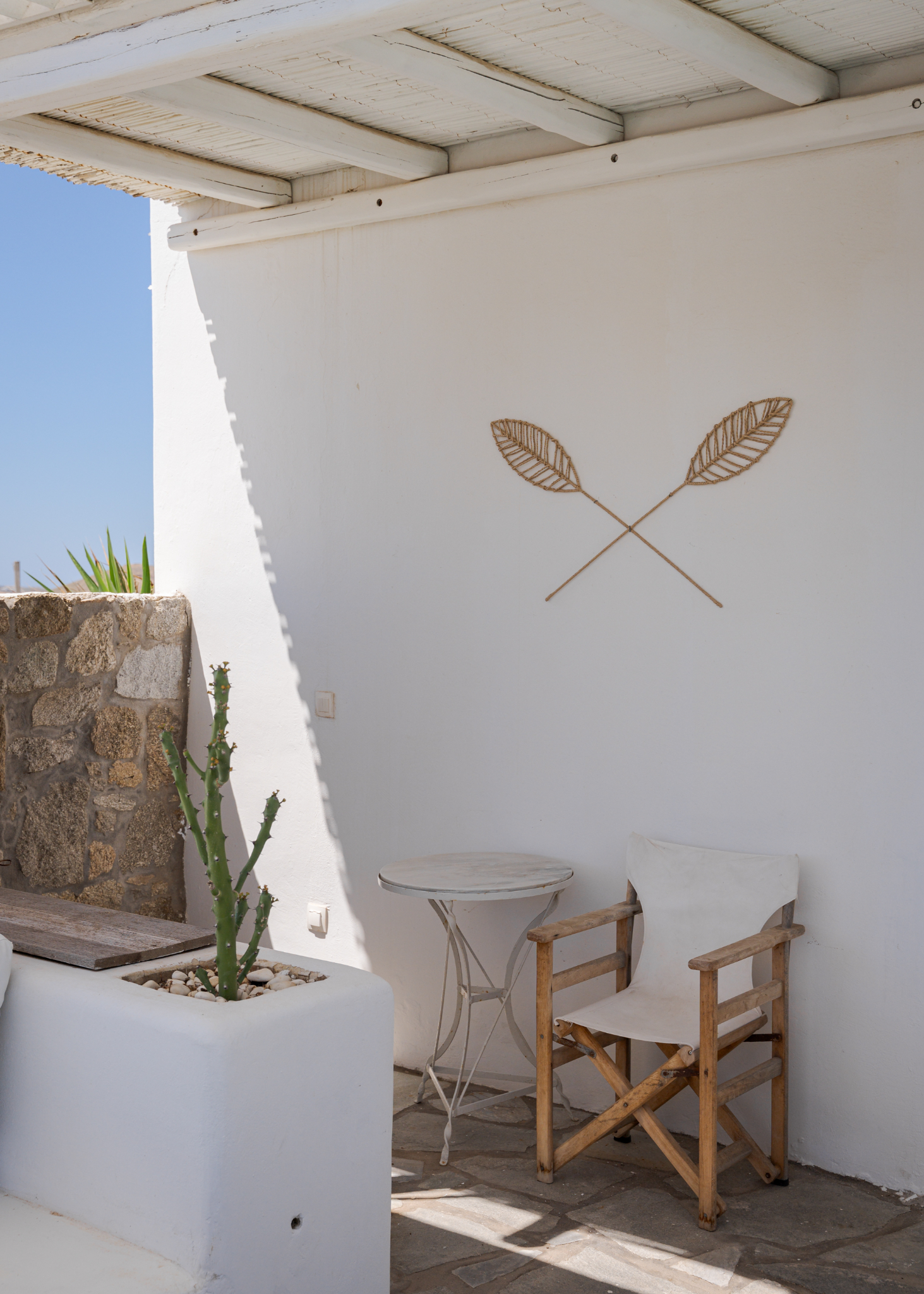 The interior of Lea Villa 1 Mykonos showcases Mediterranean architecture and generous spaces. The villa includes a spacious living room, ideal for relaxation and socializing, and a fully equipped kitchen perfect for preparing delicious meals. The 3 well-appointed bedrooms are designed for comfort, with 2 featuring queen-size beds and one equipped with two twin beds. Additionally, there is an option to accommodate an extra child in a cozy loft bed. The villa boasts 3 modern bathrooms, 2 of which are ensuite and all featuring full showers.
