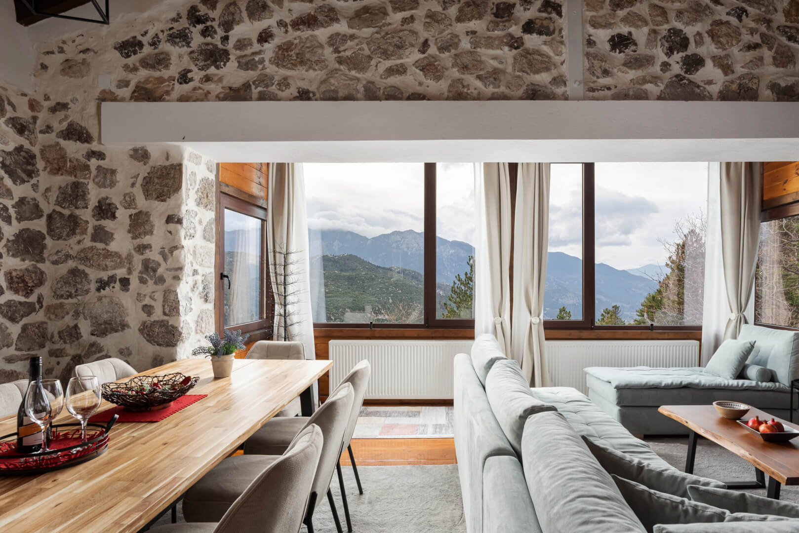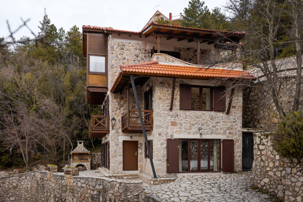 Immerse yourself in the rustic charm of the Parnassus Woodstone Chalet N2, situated in the scenic Ano Polydrosos area of Mount Parnassus, just 11 km away from the ski center of Parnassus. This captivating three-story chalet invites you to experience the warmth of woodstone aesthetics, creating a cozy and welcoming atmosphere for your mountain retreat.